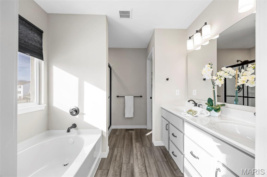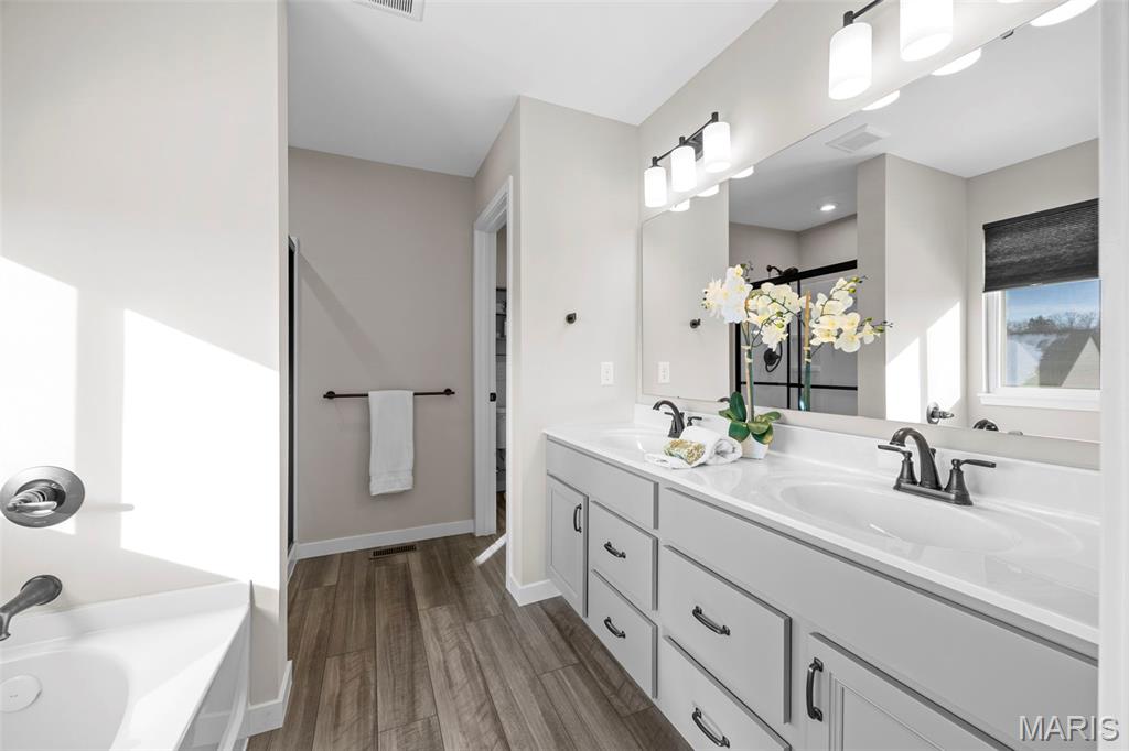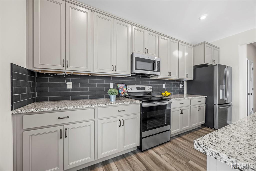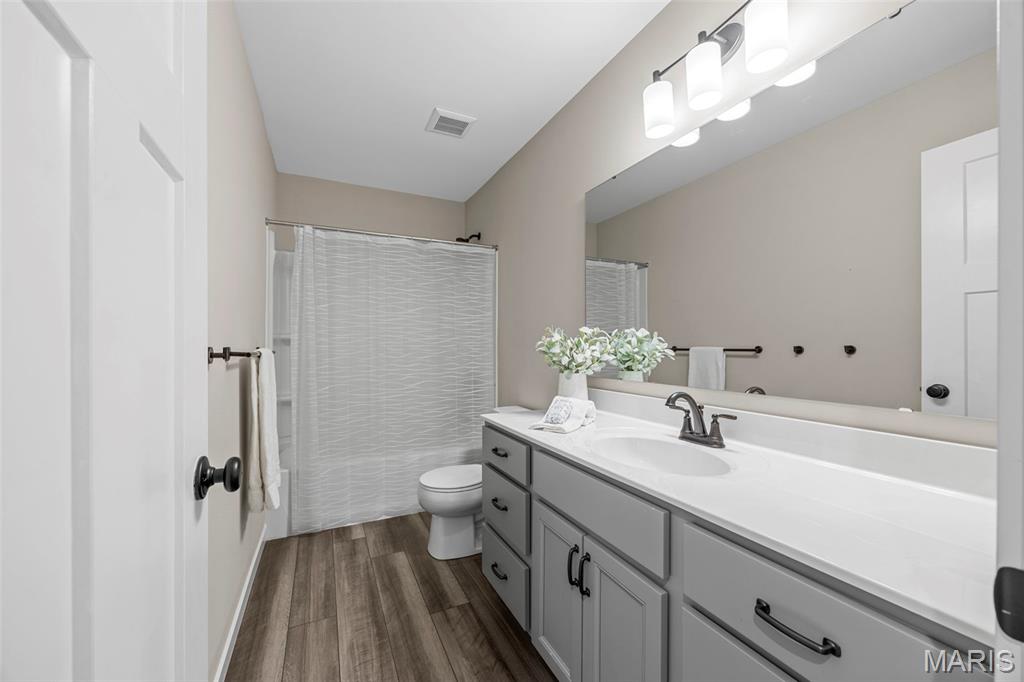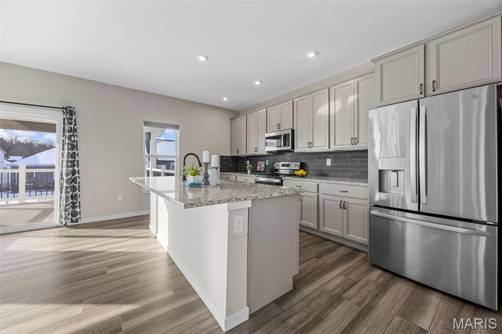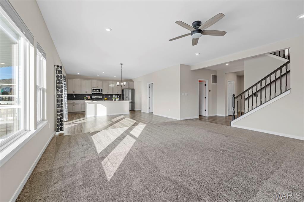 Modern Comfort Meets Prime Wentzville Living! Welcome to this beautifully maintained two-story home in the heart of Wentzville, built in 2022 and designed for today’s lifestyle. Featuring 4 bedrooms, 3.5 baths, and a newly finished walk-out lower level, this home combines modern finishes, thoughtful upgrades, and a perfect location near top-rated Wentzville schools, shopping, dining, and community parks. The gourmet kitchen is a true centerpiece, showcasing 42” slate cabinets, granite countertops, undermount sink, stainless steel appliances (refrigerator included), and a walk-in pantry. Enjoy casual meals in the breakfast area, or step out through the sliding glass door to a maintenance-free 15' x 16' covered deck—perfect for morning coffee or sunset views. An inviting great room features built-in bookshelves, an electric fireplace, and open flow to the kitchen for easy entertaining. The main level also offers 9-foot ceilings, a private office with French doors, mudroom cubbies, and a finished, insulated garage. Upstairs, you’ll find four spacious bedrooms, each with a walk-in closet. The primary suite delivers luxury with double adult-height vanities, a soaking tub, and a separate shower. An upper-level laundry room with cabinetry and a utility sink adds extra convenience. The finished walk-out lower level includes a den, fifth sleeping area, and full bath, ideal for guests or extended family. Outside, enjoy the fully fenced backyard, expanded patio, and nearby walking trails leading to the community playground. Live easy, live beautifully—this home offers modern comfort, prime location, and a move-in-ready lifestyle.