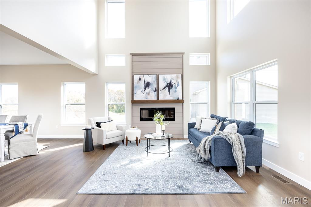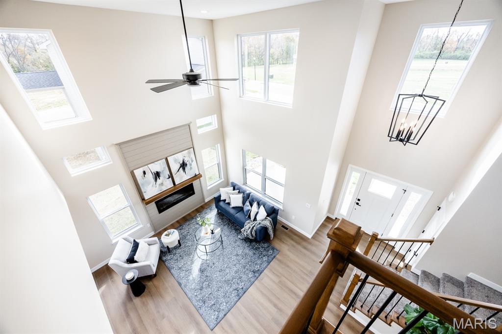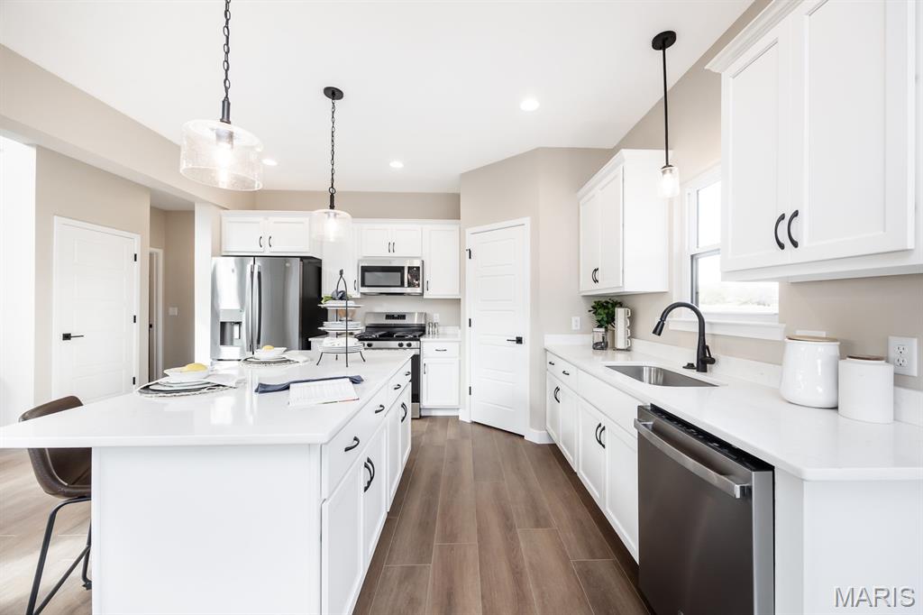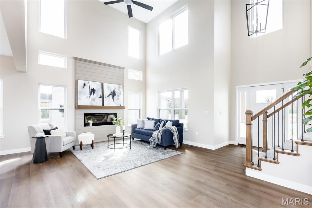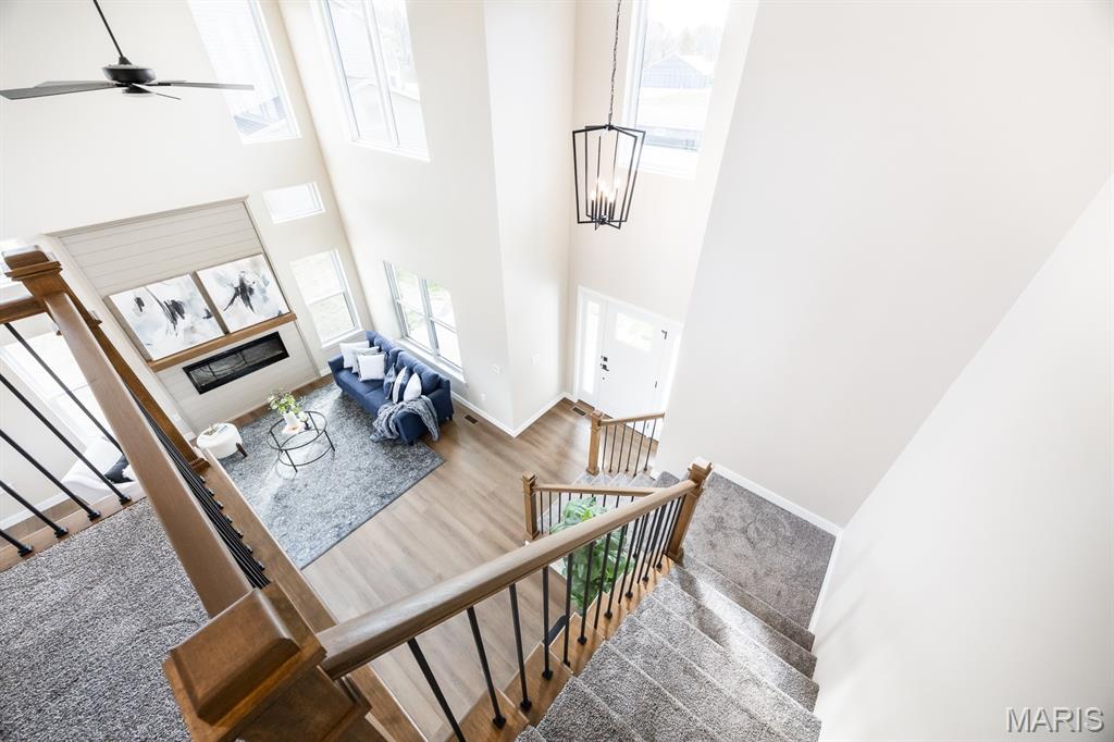 The Fitzpatrick by CNR Homes offers over 2,200 sq. ft. of thoughtfully designed living space, complete with a 3-car garage and a beautifully finished 9' walk-out basement for added versatility. The main level features 9' ceilings and an impressive primary suite with a spa-inspired bath and oversized walk-in closet. The open-concept kitchen shines with granite countertops, a spacious island, and a walk-in pantry—perfect for everyday living and entertaining. The great room showcases nearly 20' ceilings, creating a stunning open feel enhanced by the loft’s elegant wrought-iron railing overlooking below. Each bedroom includes its own walk-in closet, and outdoor living is easy on the 14' x 14' covered composite deck. Luxury, volume, and style all come together beautifully in this remarkable home by CNR Homes.