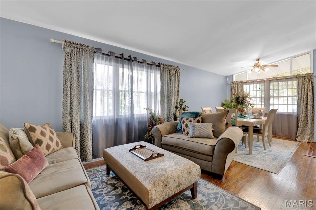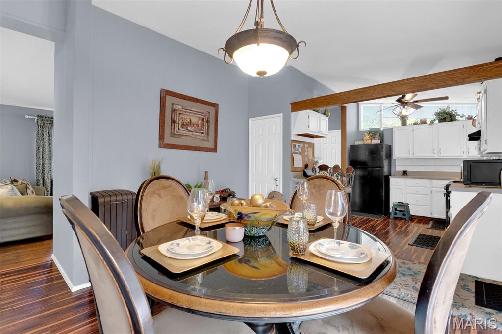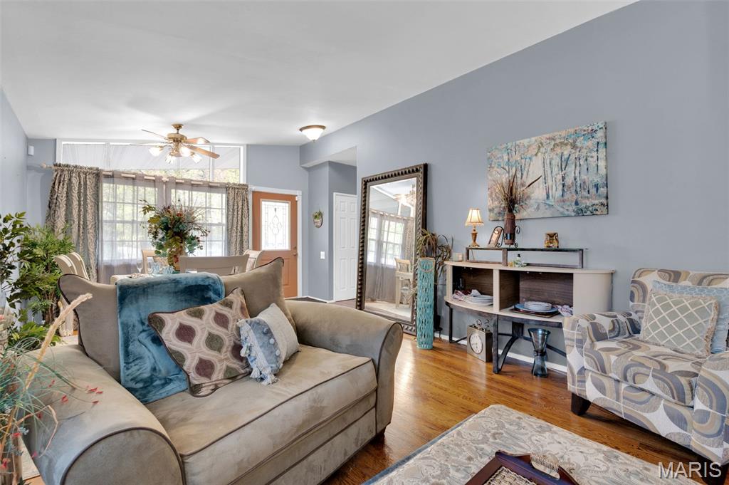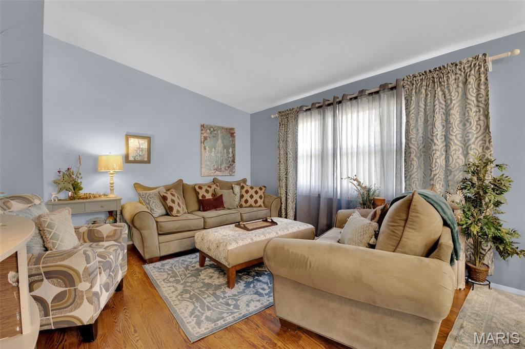 Discover the perfect blend of style, comfort, and function in this beautifully updated home! Gleaming hardwood floors greet you as you step inside, while beautiful laminate plank flooring flows seamlessly throughout the rest of the main level. The vaulted ceilings create an open, airy feel, filling the space with natural light and warmth. The eat-in kitchen is a dream for any home cook, complete with a breakfast bar for casual dining, a roomy pantry, and plenty of cabinet space. You'll also rest easy with the convenience of a full Master Bedroom Ensuite! The partially finished lower level offers even more flexibility with a "bonus room" ideal for a home office, gym, or playroom! You'll also find convenience with a separate, dedicated laundry & storage area. Enjoy your morning coffee or unwind in the evening on the enclosed covered side patio area just off the covered carport, which can be your own private retreat! Perfectly located near schools, parks, and shopping, this home delivers both convenience and comfort. Seller will provide a passed Florissant Municipal Inspection so all you need to do is MOVE RIGHT IN! Welcome Home.