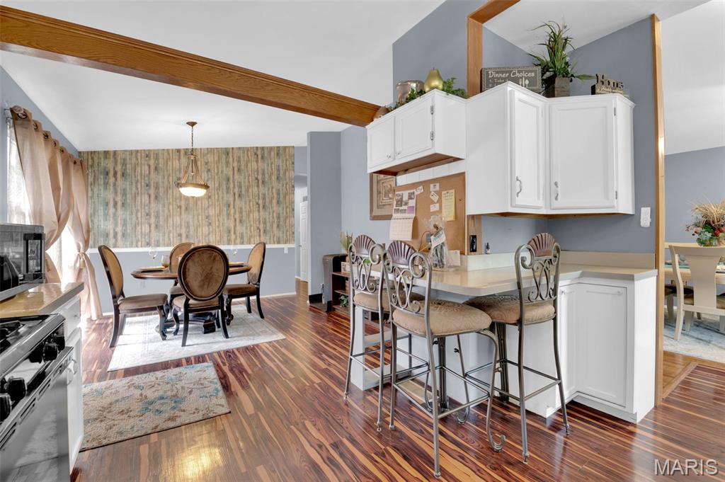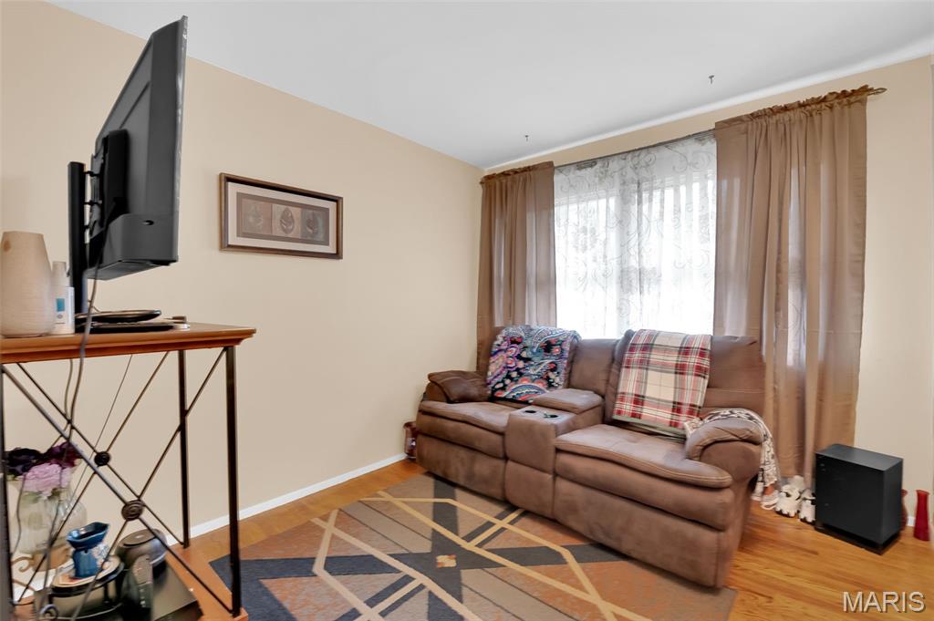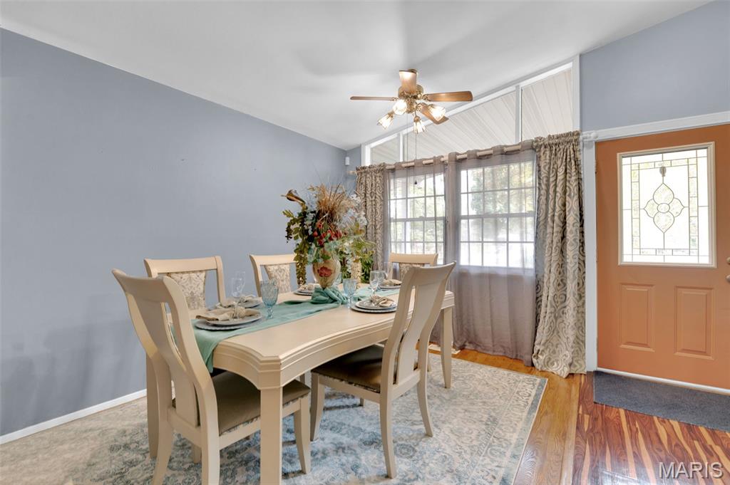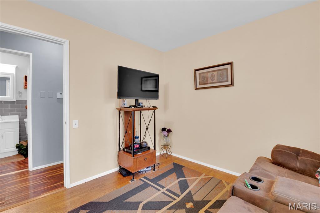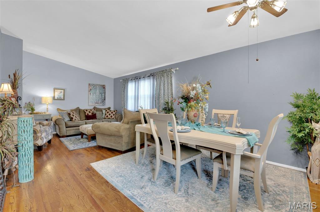 Discover the perfect blend of style, comfort, and function in this beautifully updated home! Gleaming hardwood floors greet you as you step inside, while beautiful laminate plank flooring flows seamlessly throughout the rest of the main level. The vaulted ceilings create an open, airy feel, filling the space with natural light and warmth. The eat-in kitchen is a dream for any home cook, complete with a breakfast bar for casual dining, a roomy pantry, and plenty of cabinet space. You'll also rest easy with the convenience of a full Master Bedroom Ensuite! The partially finished lower level offers even more flexibility with a "bonus room" ideal for a home office, gym, or playroom! You'll also find convenience with a separate, dedicated laundry & storage area. Enjoy your morning coffee or unwind in the evening on the enclosed covered side patio area just off the covered carport, which can be your own private retreat! Perfectly located near schools, parks, and shopping, this home delivers both convenience and comfort. Seller will provide a passed Florissant Municipal Inspection so all you need to do is MOVE RIGHT IN! Welcome Home.