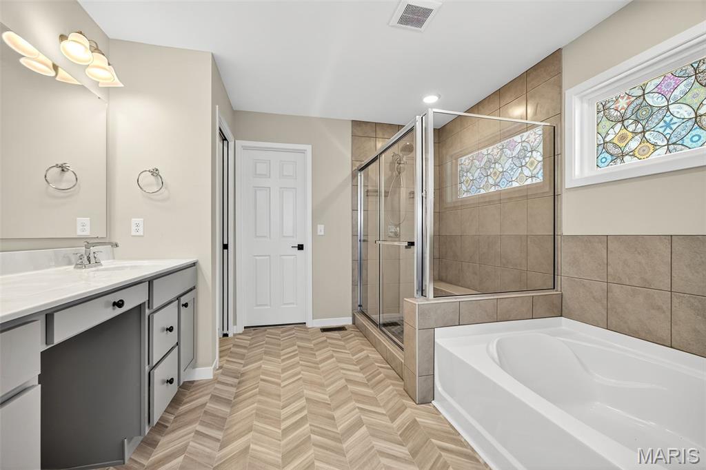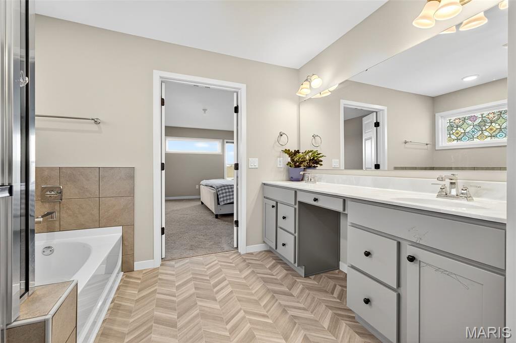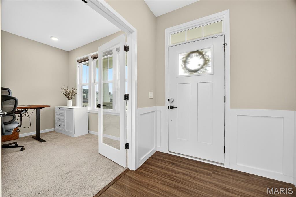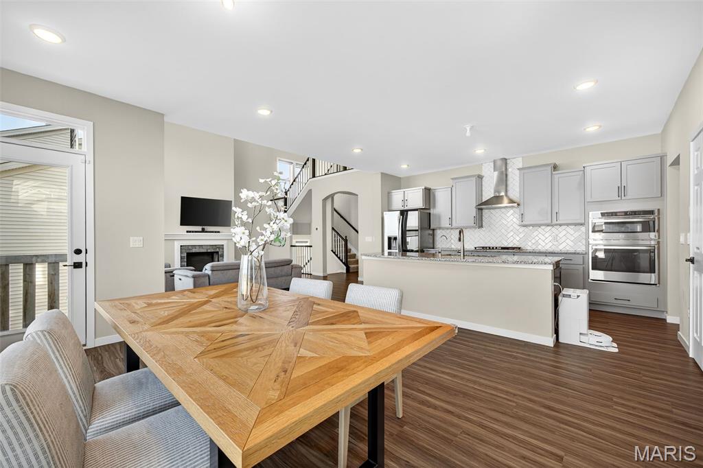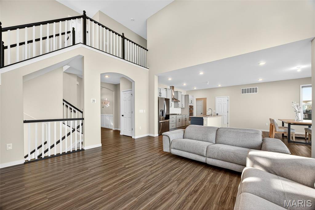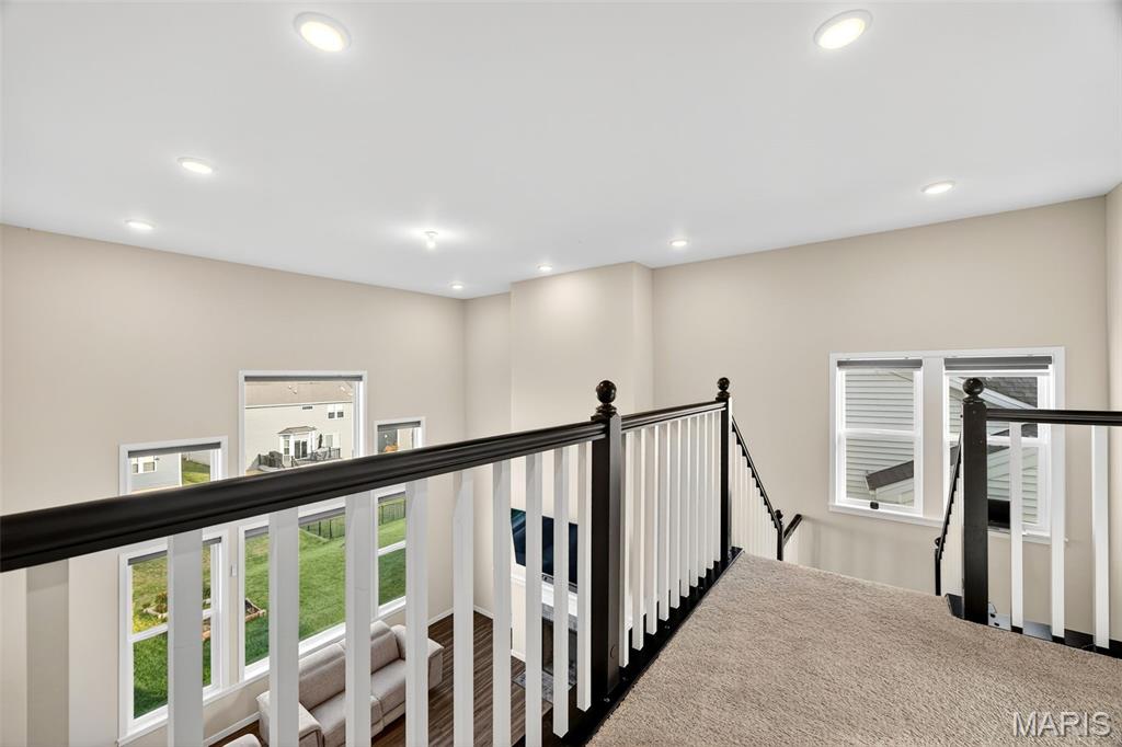 This beautiful 1.5-story home is packed with charm, style, and space. The moment you walk in, the grand open staircase and soaring living room ceilings take your breath away. The open main level is perfect for entertaining, flowing effortlessly into the chef’s kitchen with a gorgeous backsplash, granite countertops, and tons of windows filling the space with natural light. Enjoy the rare luxury of two master bedrooms, plus a bright office for work or creativity. With 9-ft ceilings, a 9-ft pour walkout basement with roughed-in plumbing, and a spacious 3-car garage, this home truly has it all. Get ready to be excited—this one is stunning!