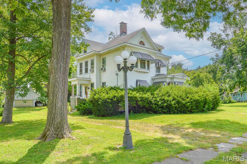 Price listed is Starting Bid Only. Bidding starts closing 10/29/2025 @ 6 p.m. This beautifully preserved two-story home in Marine, IL offers timeless charm and exceptional craftsmanship throughout its 4-bedroom, 2-bathroom layout. Situated on an oversized 0.90± acre double lot, the property welcomes you with a bright foyer where natural light highlights rich hardwood floors and ornate wainscoting, creating a warm and inviting atmosphere. The formal dining room features large bay windows, ideal for hosting memorable gatherings, while the cozy family room connects to a more formal living space through impressive six-panel pocket doors. The living room, anchored by a decorative fireplace with a stone hearth and a custom wooden pillared mantle, adding elegance and character. The full kitchen provides generous cabinet space, a standalone pantry, and all major appliances. A well-appointed three-quarter bathroom, tucked into one corner of the kitchen, while a doorway on the opposite side leads to a back staircase that winds up to the second-floor hallway. Upstairs, you will find four bedrooms and a full bathroom. Two of the bedrooms are oversized with ample closet space and large windows. Another bedroom offers views of the expansive yard through bay windows, and the fourth features built-in shelving with access to the unfinished attic via a small staircase. The full, unfinished basement houses the home's utilities and washer/dryer hookups, with walk-up access to the yard through large steel cellar doors. Outside, the double lot includes open lawns and mature shade trees, offering space to expand, garden, or play. A detached two-car garage sits at the rear corner of the property, accessible via a gravel driveway with additional alley access. Located within the Triad School District and just minutes from IL-4 and I-70, this home combines classic beauty with modern convenience for easy commuting and comfortable living. Property will sell under auction terms and be sold AS- IS, WHERE-IS. Seller, will not make any repairs as a result of any building, occupancy, or environmental inspections. Buyer will be required to sign an Auction Purchase & Sale Agreement if final bid is accepted by Sellers.