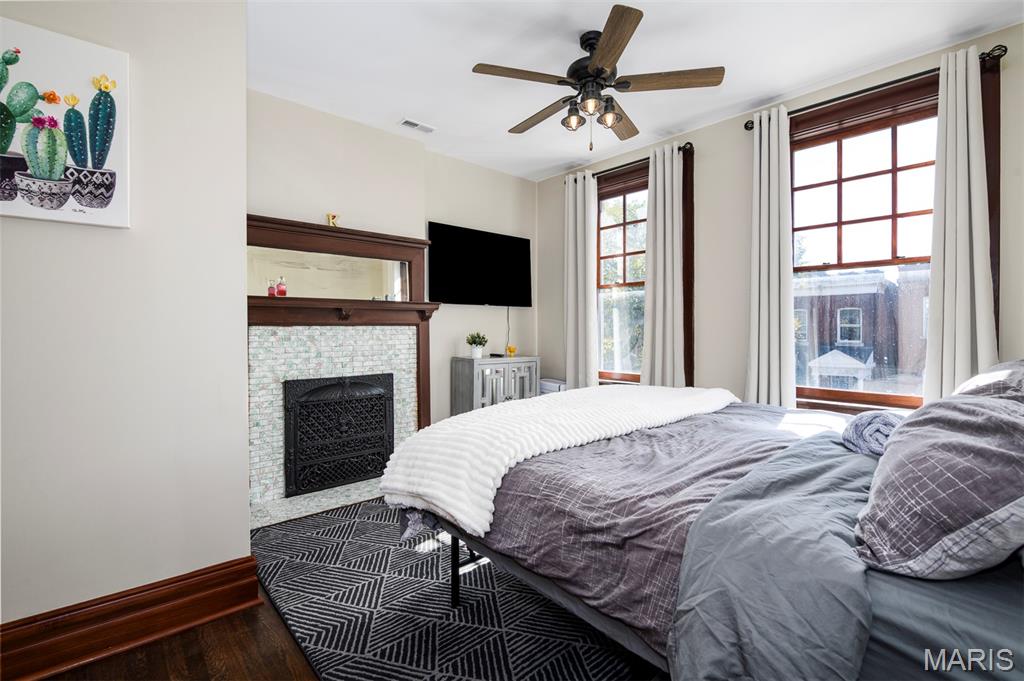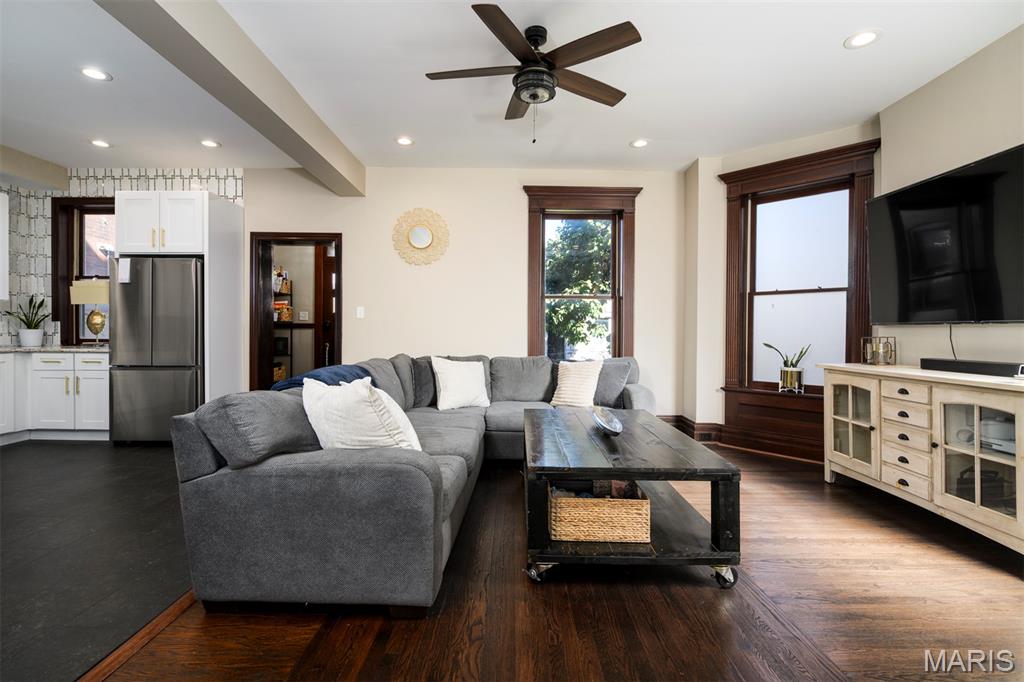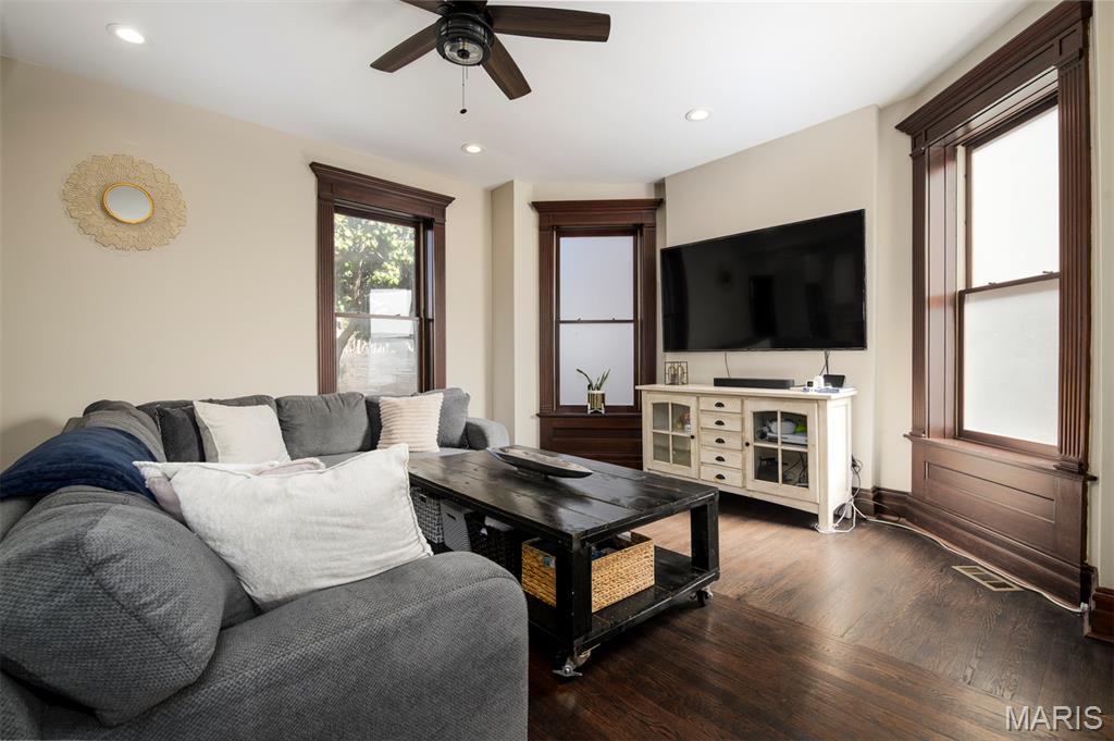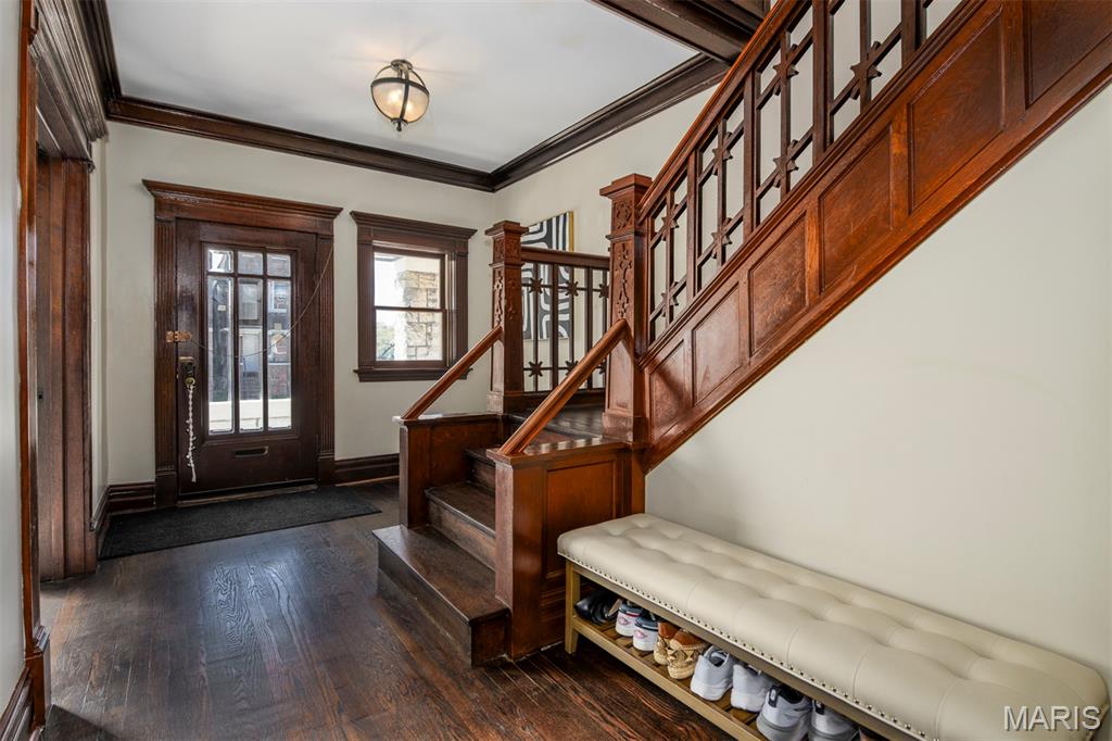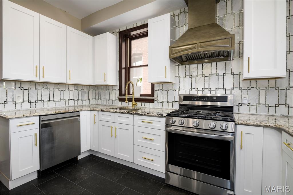 Historic charm meets modern living in this beautifully and thoughtfully renovated 2-story stone front brick home located in the highly desirable Grove neighborhood. This 3-bedroom, 2.5-bathroom single-family home perfectly blends historic charm with modern convenience, offering the best of both worlds. Step inside and be greeted by an original, hand-crafted staircase and timeless architectural details including pocket doors, hardwood floors, original millwork and unpainted wood trim that speak to the home's rich history. Fully rehabbed just three years ago, no detail was overlooked. From the new roof, electrical, plumbing, windows, zoned HVAC and more, you'll have peace of mind and efficiency for years to come. The spacious, open-concept main floor features a modern kitchen outfitted with granite countertops, stainless steel appliances, a gas range and custom cabinetry. The kitchen flows seamlessly into the living area, making it ideal for entertaining. The light filled formal dining room boasts an original stone fireplace, offering a warm and inviting atmosphere. A stylish half bath completes the main level. Upstairs, you’ll find a generous owner’s suite with attached office, two additional bedrooms and another full bathroom that's perfect for families or guests. Enjoy your private, fenced backyard complete with a 2-car brick garage, ideal for off-street parking or storage. Nestled in The Grove, one of St. Louis' most vibrant neighborhoods, you’ll be just steps from top-rated restaurants, nightlife and local businesses. With Forest Park, BJC Medical Center, Washington University and quick highway access only minutes away, this location truly can’t be beat.