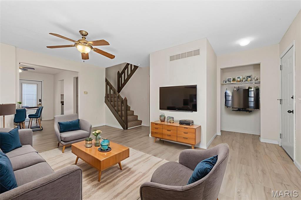 Looking for the perfect end unit two story townhouse in a prime location just minutes from I-70? This 2 bedroom 1.5 bath is move-in-ready with freshly painted walls, new luxury vinyl flooring, new carpet throughout, recently installed alumicon, and closet doors to be installed before closing. Enjoy the fenced in patio that has access to parking lot in the rear. The partially finish basement offers a rec room and has plenty of storage area. Enjoy everything the Lake St. Louis community has to offer. Amenities including pool, clubhouse, playgrounds, access to the lake, and so much more! Monthly HOA to cover snow removal, sewer, trash, water, local pool, clubhouse, and common ground.