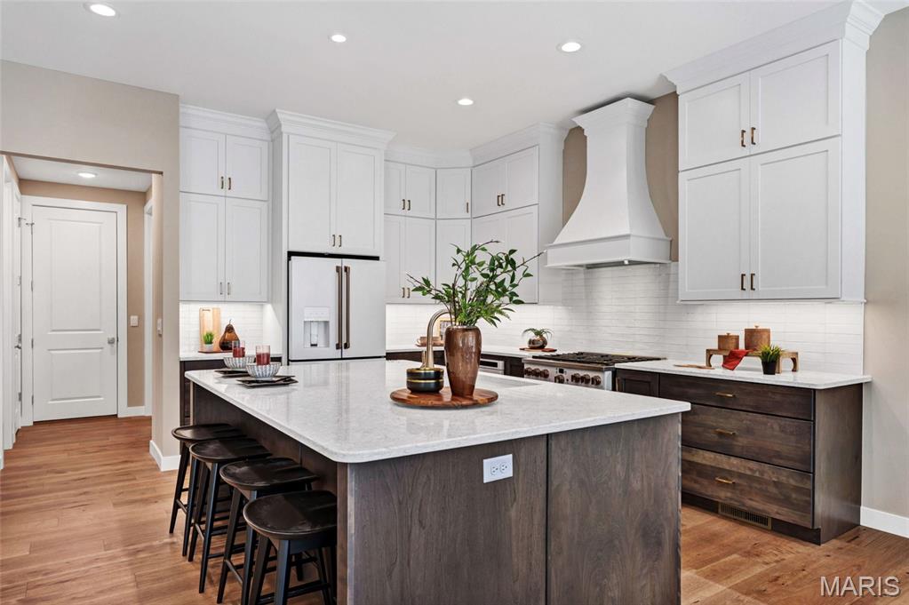 Limited-Time Offer – Now Offered at $1,019,926 (Save $40,000). Experience luxury, low-maintenance villa living in this move-in ready Sedona plan at Gates Manor in Sunset Hills, offering over 2,600 finished square feet of thoughtfully designed space. This designer-inspired home showcases an open layout with 10’ ceilings, hardwood flooring, and refined finishes throughout. The gourmet kitchen features quartz countertops, a Cafe line stainless appliance package with 36” dual-fuel range, and a large island that opens to the great room with a stone gas fireplace. The private owner’s suite includes a spa-style bath with quartz dual vanities, frameless shower with rain head, and custom closets. The finished lower level extends the living space with a recreation room, bedroom, and full bath. A composite deck, smart irrigation system, cased windows, and gold-accent lighting complete this sophisticated home. Enjoy elegant, low-maintenance living in a premier Sunset Hills location.