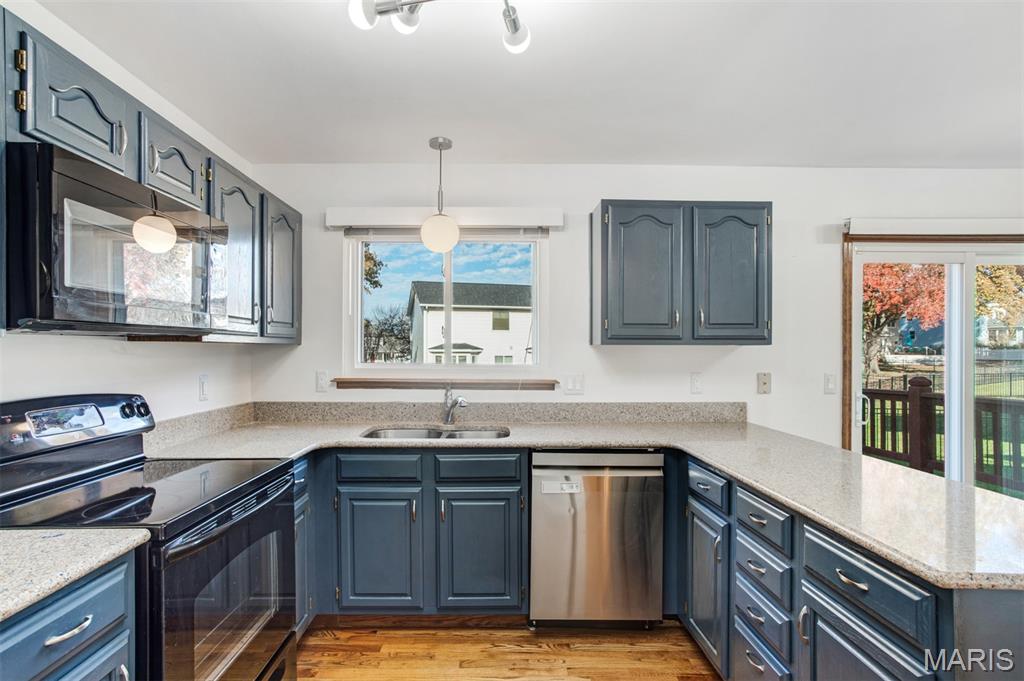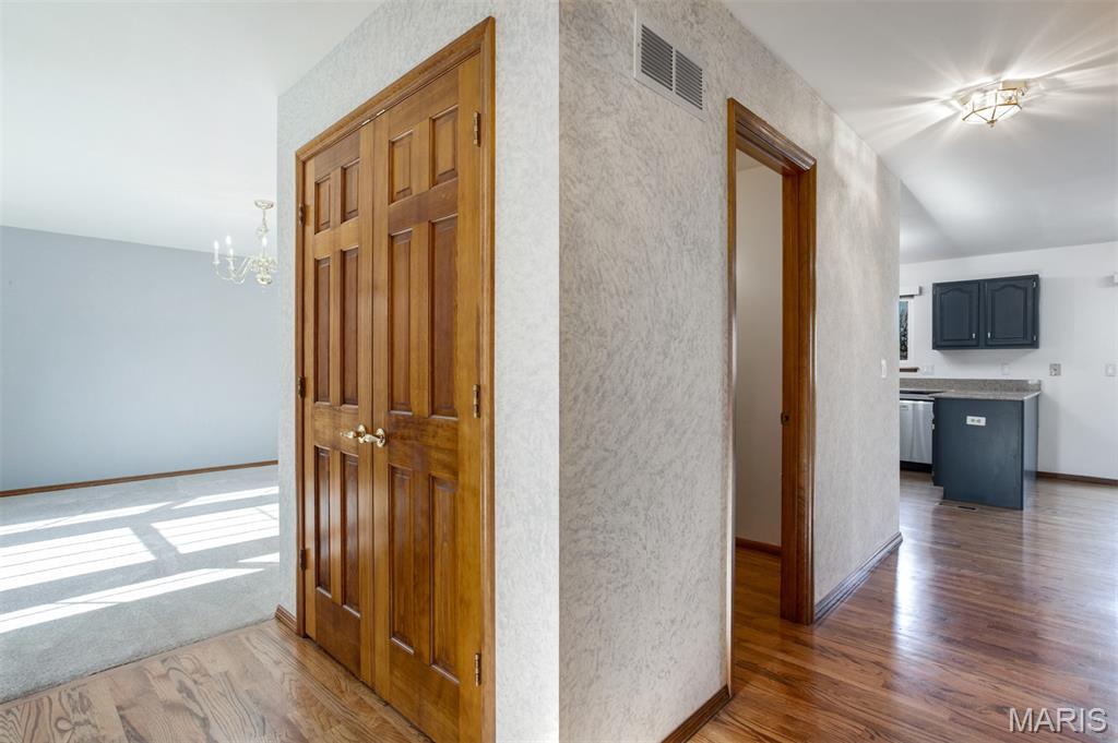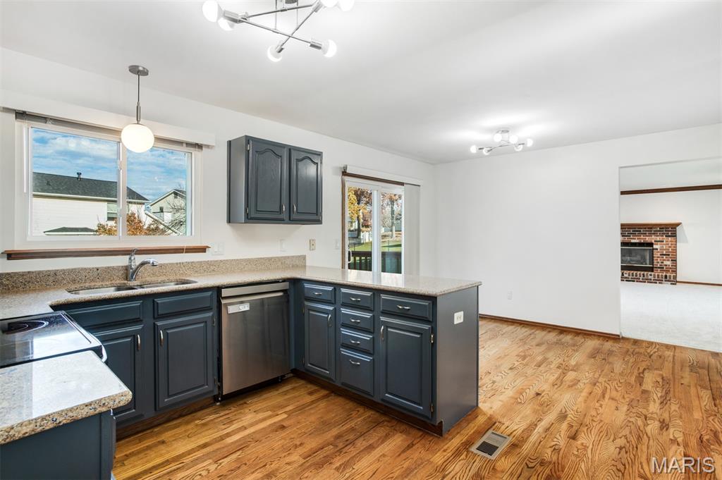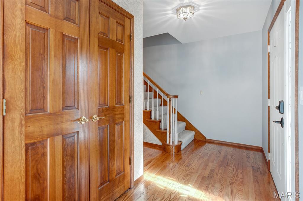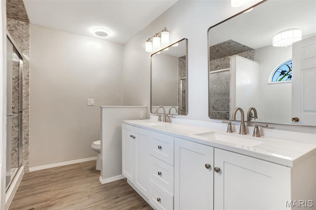 Welcome to this exceptional home nestled in a highly desirable South County location! Offering 2 luxurious primary suites, 3 bedrooms, and 2 full baths, this residence is thoughtfully designed to accommodate a variety of living arrangements. The main floor features a bright and inviting living room, a formal dining room perfect for entertaining, and a comfortable family room with gas fireplace. Convenient main floor laundry makes everyday chores a breeze. Enjoy peace of mind with a new roof installed in 2025 and an energy-efficient air conditioner and furnace, both just 4 years old. The home's brick and stone front lends impressive curb appeal, while durable vinyl siding ensures lasting beauty and easy maintenance. Step outside to the spacious, level yard—ideal for gatherings, play, or simply relaxing on the deck. The unfinished lower level offers endless possibilities for storage, recreation, or future expansion. Inside, the kitchen shines with freshly painted cabinets and gorgeous hardwood flooring that continues through the breakfast area and entry foyer. Enjoy modern comforts with an updated primary bath and a newly renovated shower in the second bath. The main floor also boasts a convenient powder room for guests. Major appliances, including the refrigerator and washer/dryer, are included—making this beautiful home truly move-in ready. Don’t miss your chance to own this fantastic property with abundant space, gorgeous updates, and outstanding location. New carpet installed throughout 11/14/25. Home is move in ready for a quick close before the end of the year! Schedule your showing today!