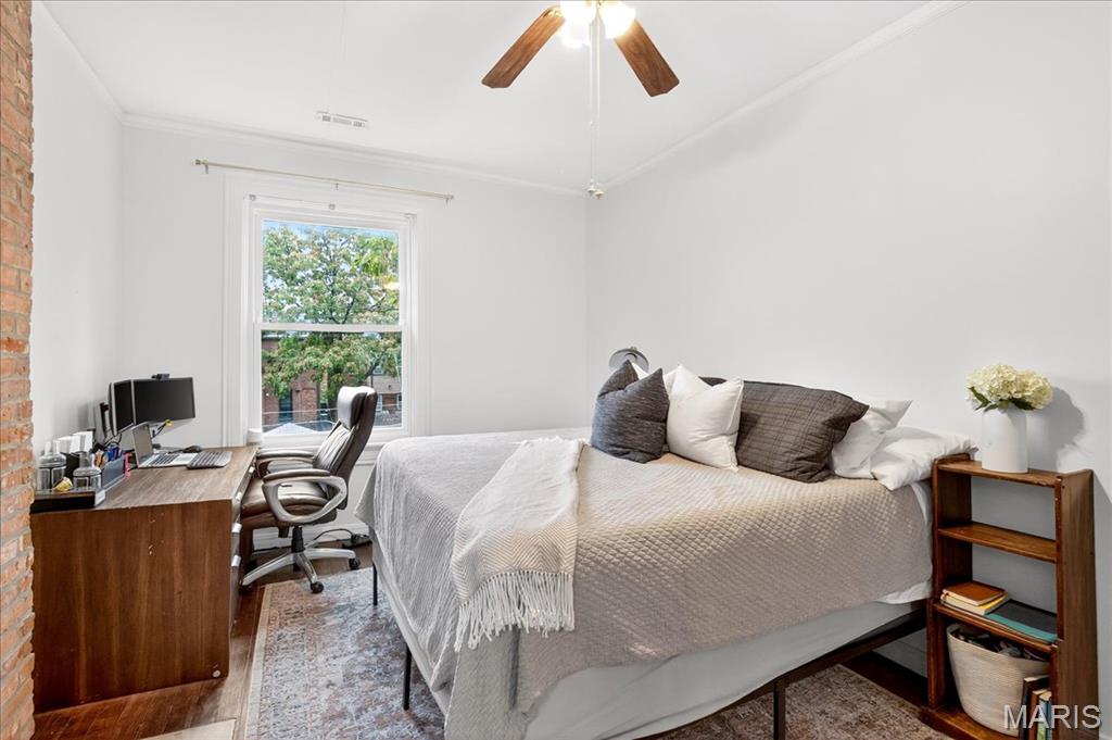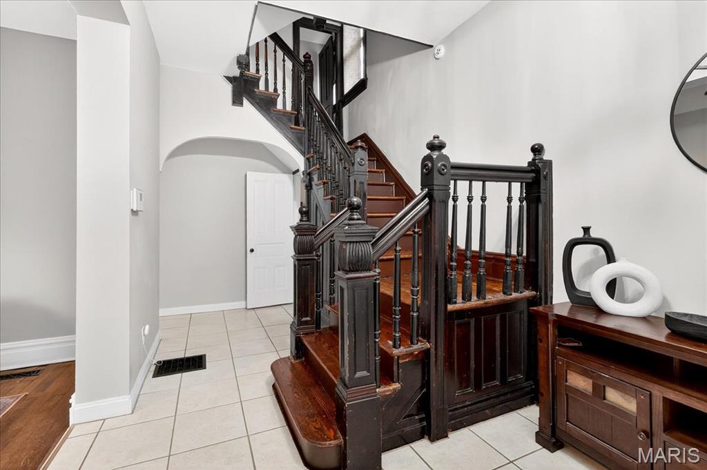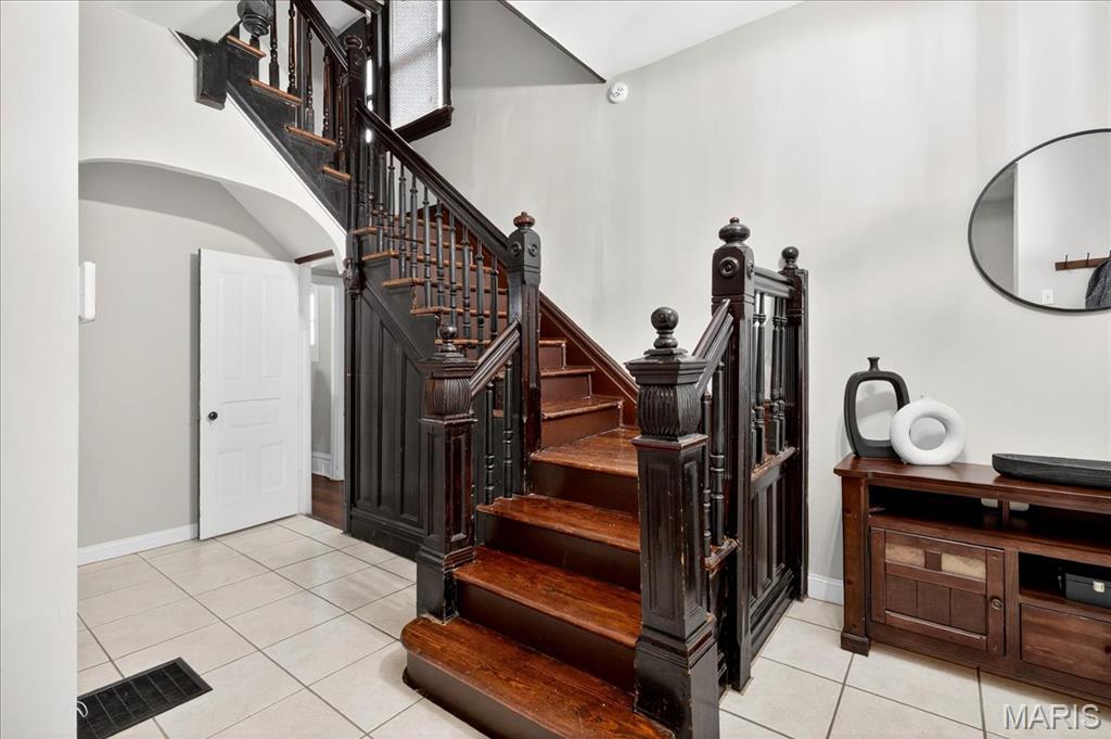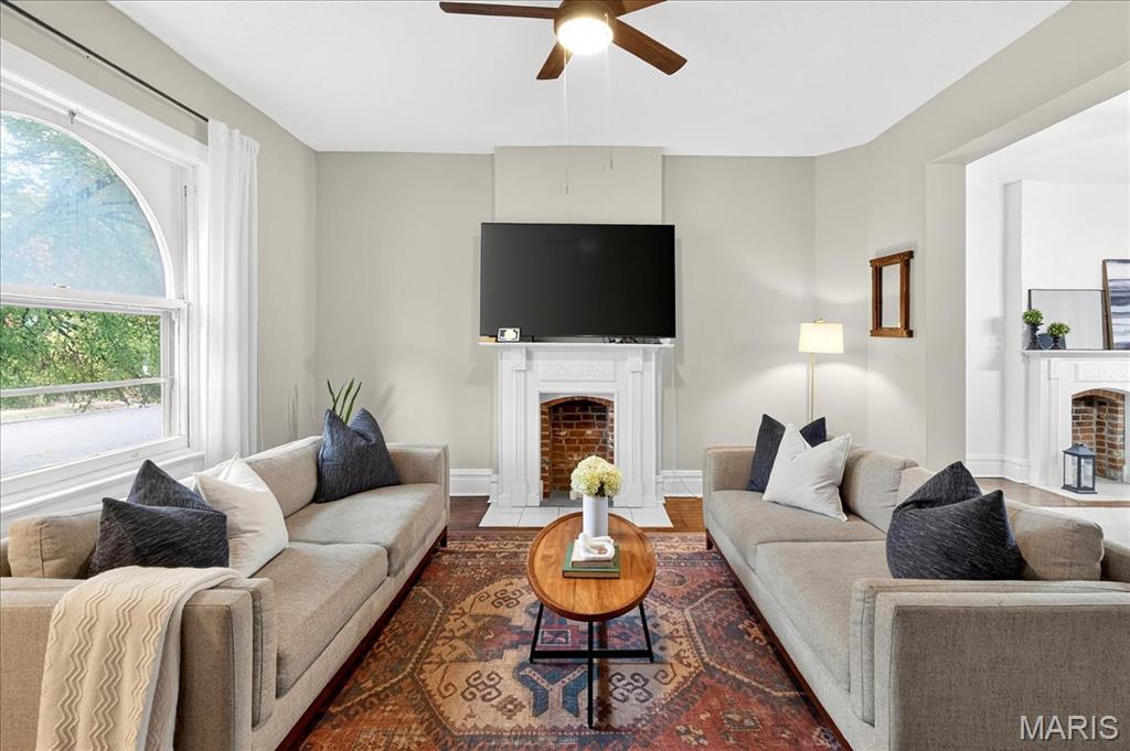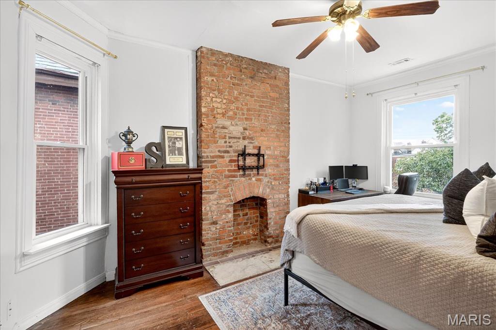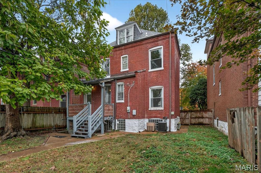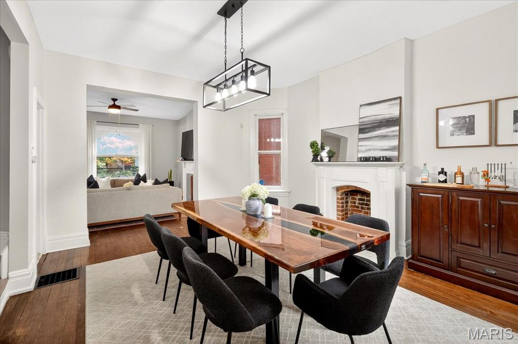 Welcome to this elegant Historic Residence in Fox Park. This beautifully preserved 4+ bedroom home, ideally situated within walking distance of Fox Park and nearby businesses, offers generous living space and timeless architectural charm. With soaring ceilings and classic finishes this home retains its original character while seamlessly integrating modern comforts. Inside, you'll find original wood flooring, two graceful switchback staircases leading to the second and third floors, and four decorative fireplaces that add warmth and sophistication. The gourmet kitchen features granite countertops, stainless steel appliances, and pantry. A full bathroom is conveniently located on the main level. Upstairs you will find 3 bedrooms with a versatile dressing room with custom closet organizers that can easily be converted back into a bedroom. The expansive third floor is fully finished with abundant natural light, and flexible space suitable for entertaining, a home office, and bedroom. Additional amenities include a zoned HVAC system for efficient climate control, a detached two-car garage with an extra parking pad, and a separate storage building for added convenience. This distinguished home blends historic elegance with modern functionality—perfect for those seeking space, style, and a prime location.