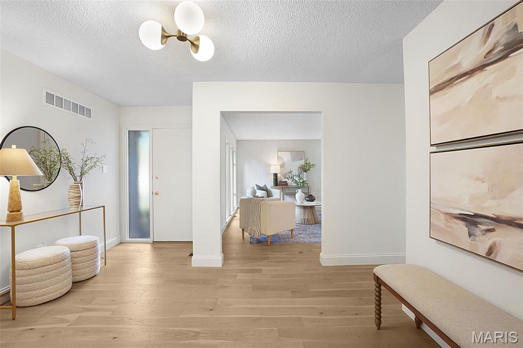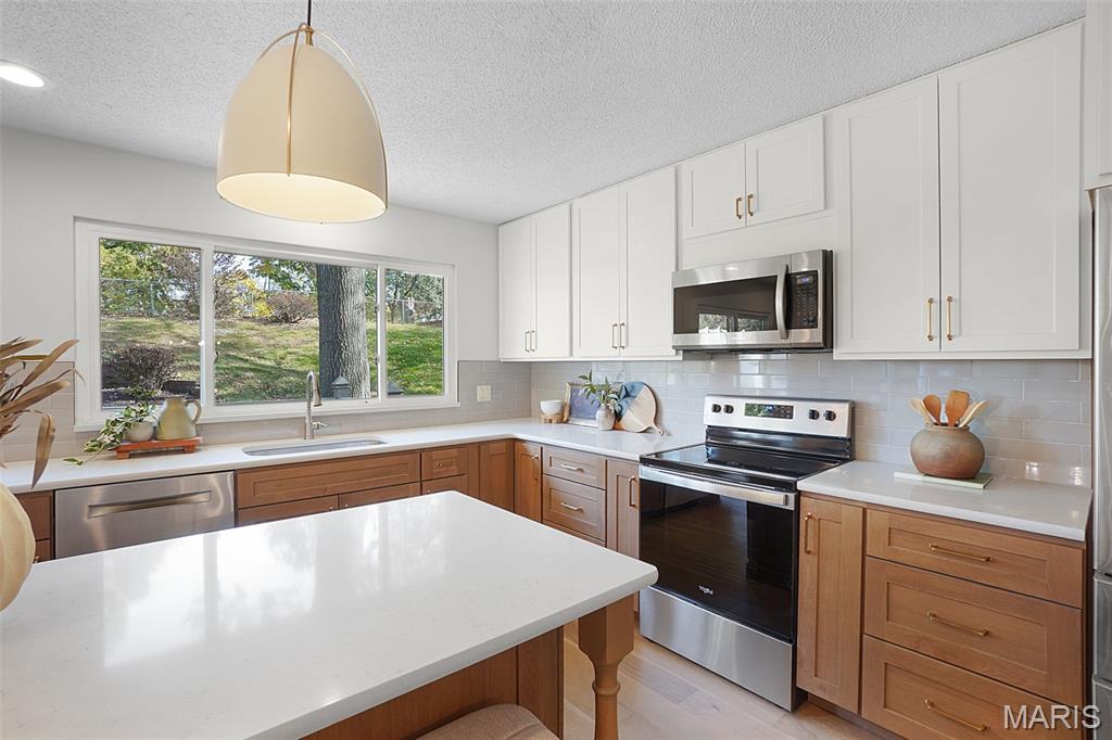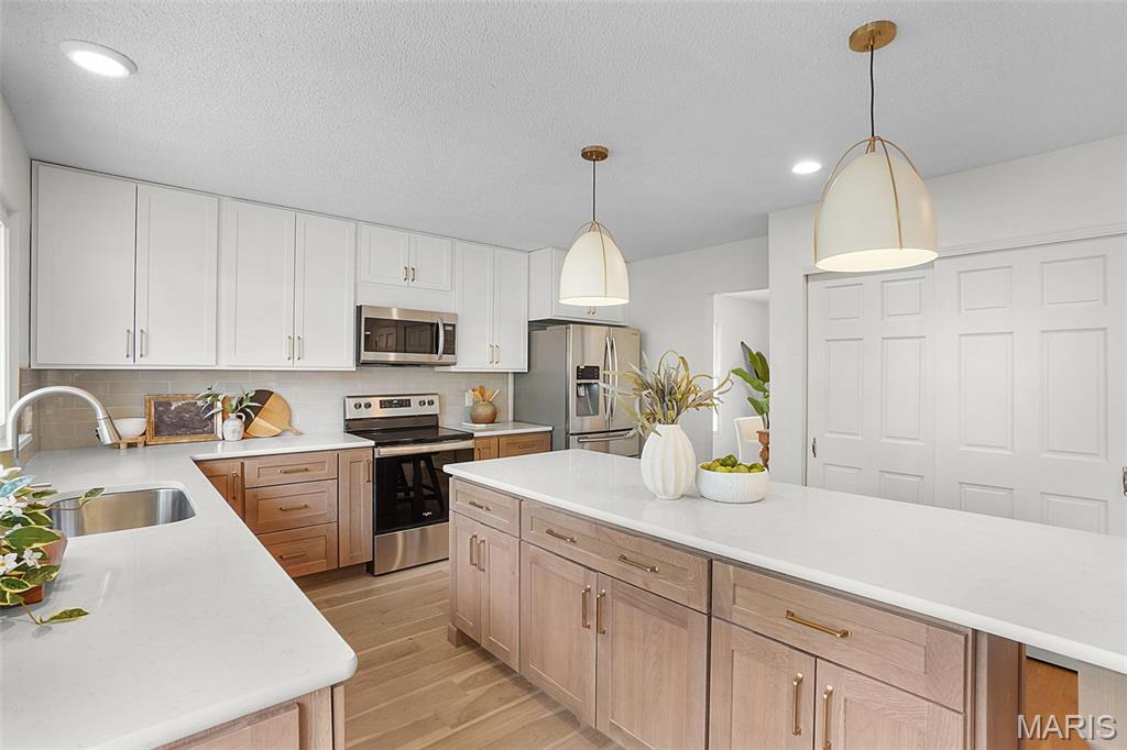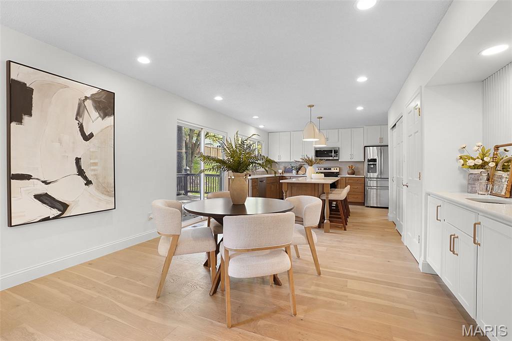 This stunning 4-bedroom, 2.5-bath ranch recently renovated by K-Build has been completely transformed with modern design, luxurious finishes, and an open, flowing layout perfect for today’s lifestyle. Step inside to find bright, airy living spaces featuring warm hardwood floors, designer lighting, and custom millwork. The gourmet kitchen is the heart of the home, showcasing quartz countertops, a large island with seating, stainless steel appliances, and two-tone cabinetry that blends sophistication with function. Multiple living areas offer flexibility for entertaining or relaxing, highlighted by a cozy fireplace and abundant natural light throughout. The spacious primary suite features a spa-like bath and generous closet space, while additional bedrooms provide comfort for family or guests. The unfinished basement gives the next homeowner an endless possibility to finish and double the size of the home! Enjoy outdoor living on the private deck overlooking a tree-lined yard—all within the award-winning Rockwood School District. Every detail has been thoughtfully crafted by K-Build to deliver timeless style, comfort, and quality in one remarkable home.