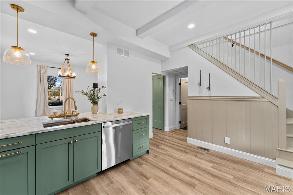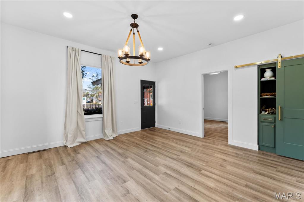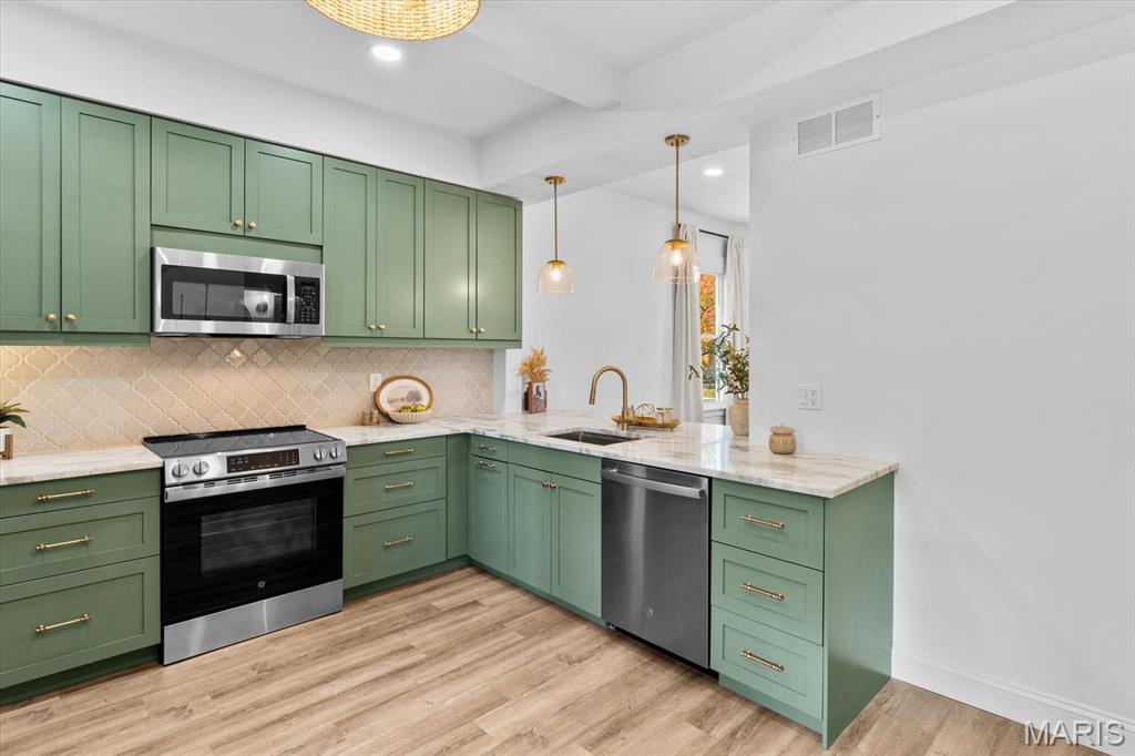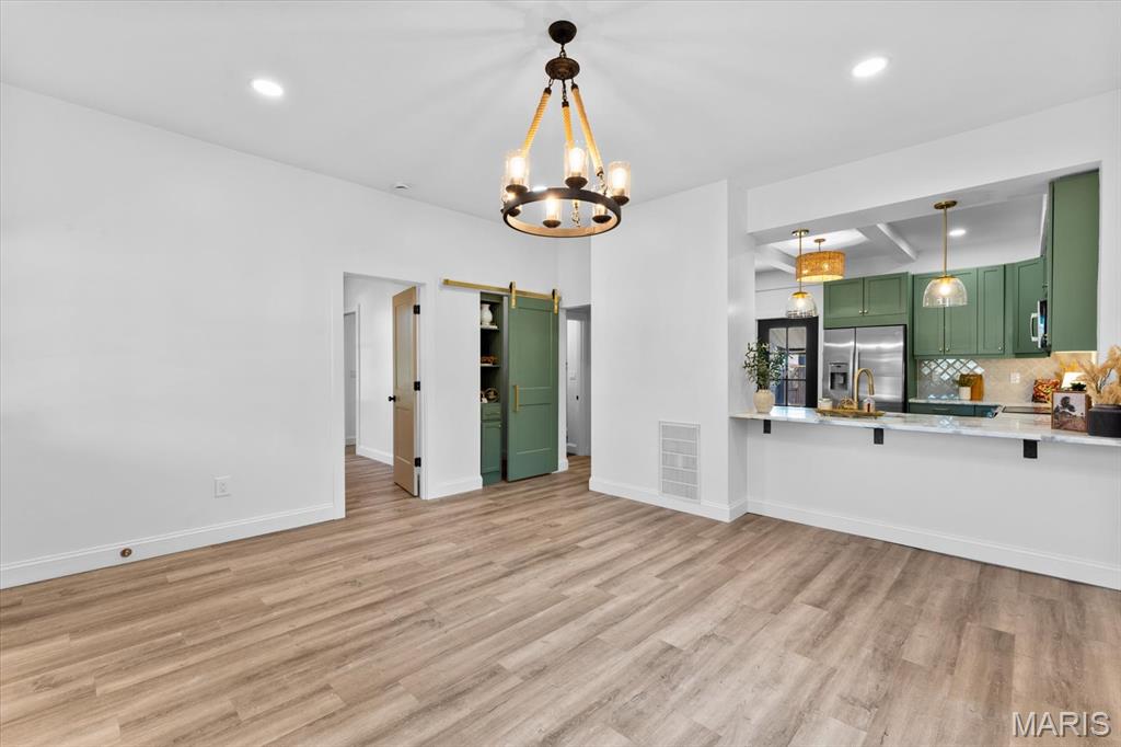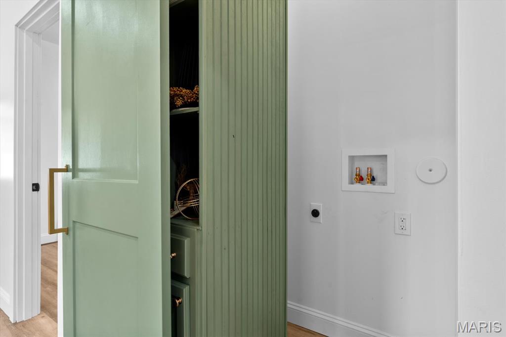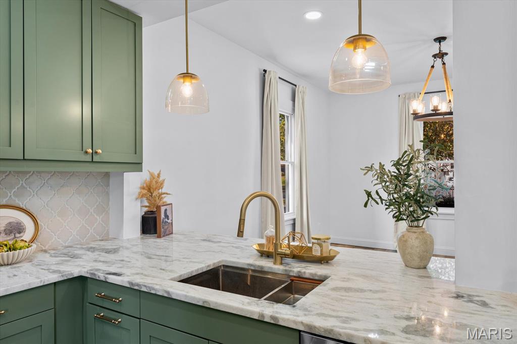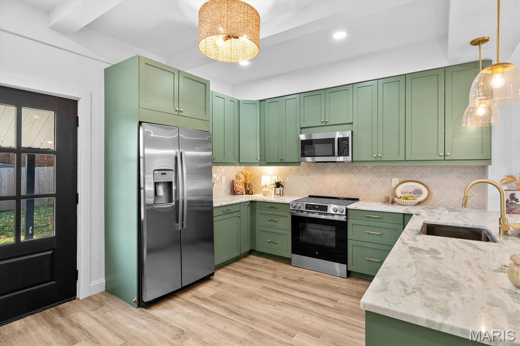 This stunning residence has undergone a full-scale, luxury renovation with no detail overlooked. The main level features new flooring and fresh paint throughout the light-filled living room, seamlessly connecting to an elegant, fully upgraded kitchen. The kitchen showcases on-trend custom-painted cabinetry, stainless steel appliances, a chic tile backsplash, brass hardware and fixtures, and modern lighting. A stylish barn-style sliding door leads to the main-floor laundry for added convenience. The main level primary suite offers a true retreat, complete with a custom pass-through closet and a beautifully appointed ensuite bath featuring a glass-enclosed walk-in shower and dual vanity sinks. A fully remodeled guest bath is also located on the main level for added comfort. Upstairs, you'll find two well-appointed guest bedrooms, perfect for family or visitors. Outside, a covered patio provides an ideal space for entertaining and overlooks the fenced backyard with storage shed. This home blends historic charm with modern luxury—an exceptional opportunity to live in one of O’Fallon’s most desirable locations.