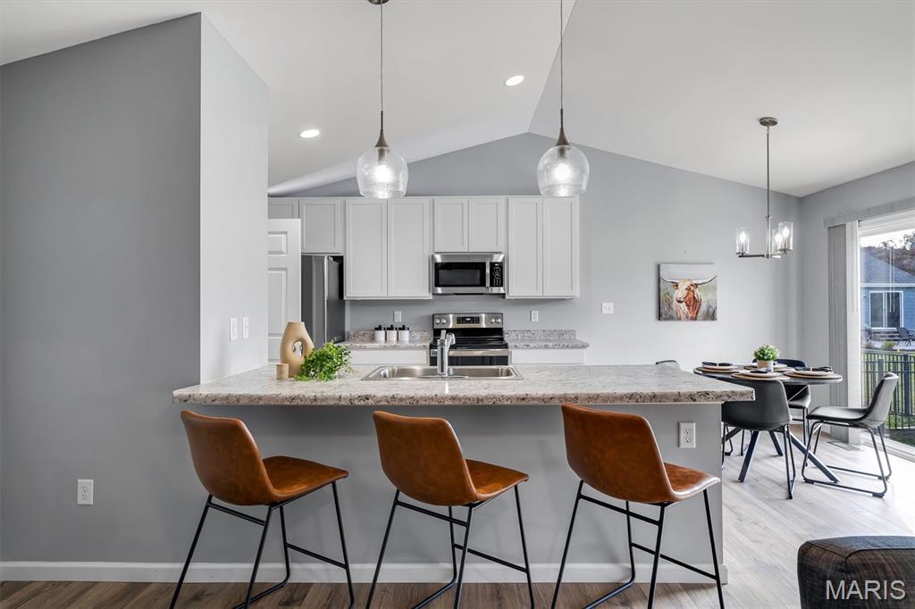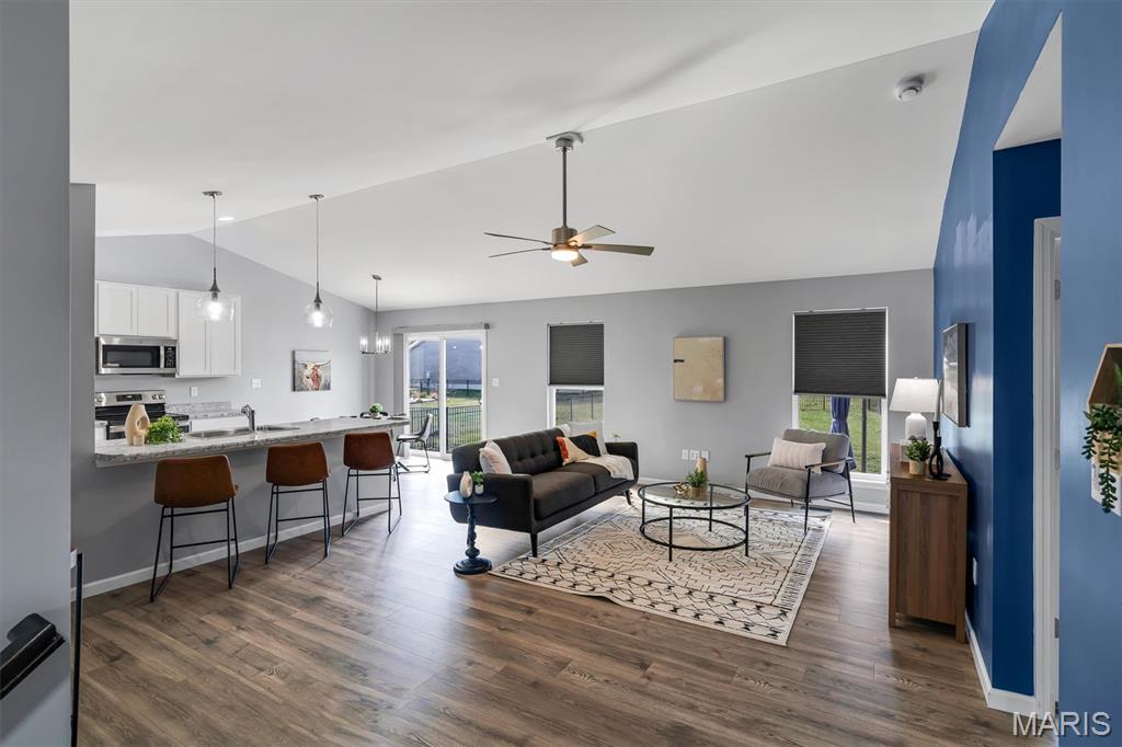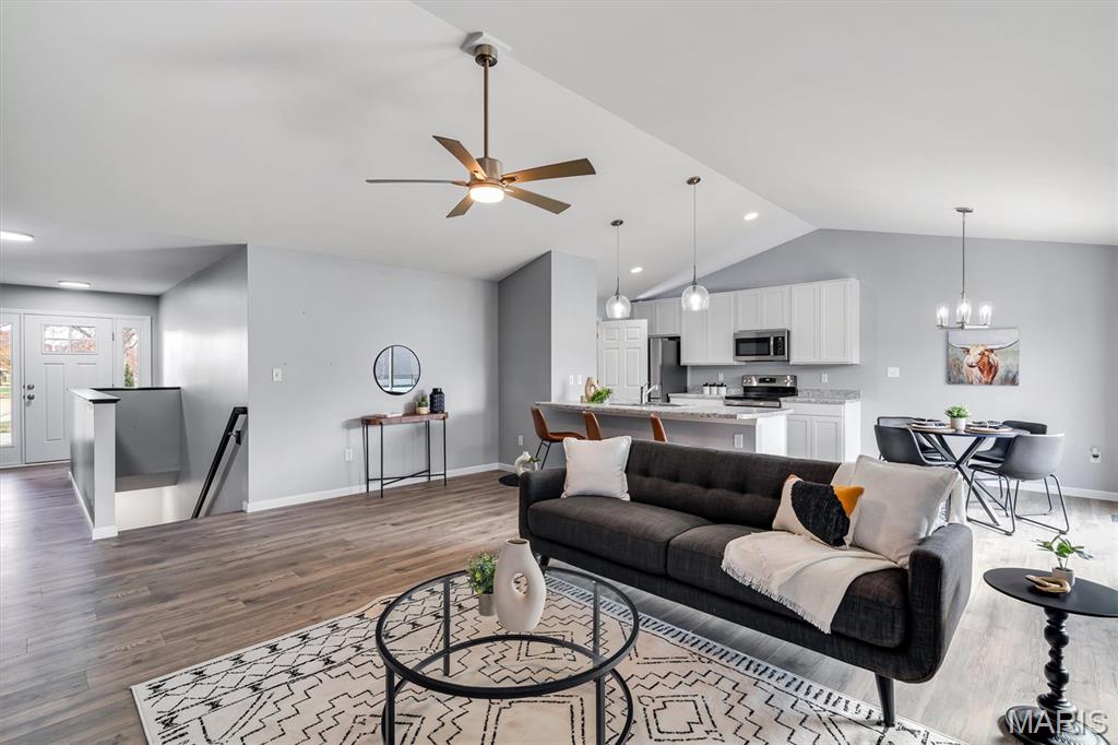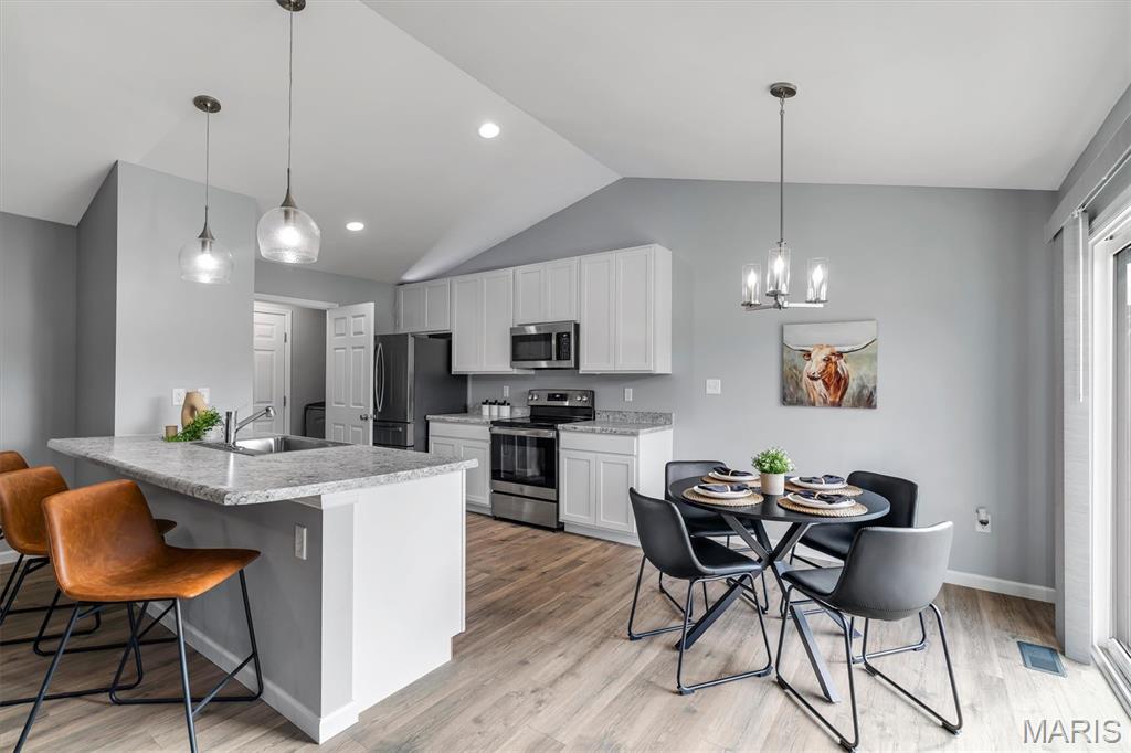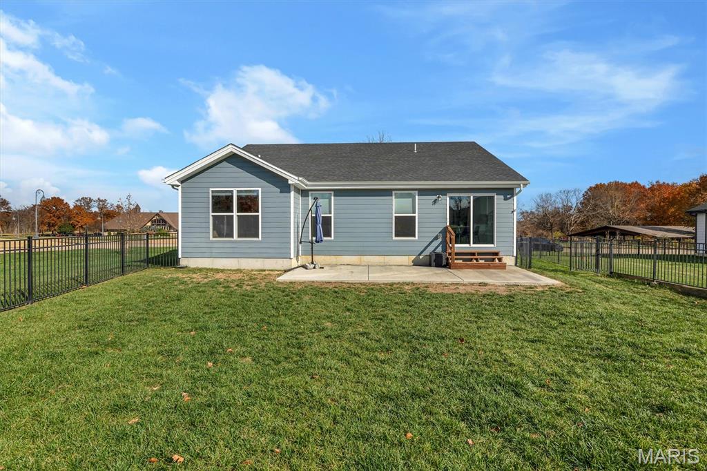 Step into this nearly new 4 bed and 3 bath ranch in Fox Run and enjoy the feeling of a brand new home without the long wait. Only two years old, this property sits in a growing subdivision where new homes are still going up, yet this one is ready now and packed with upgrades. The main level offers an open floor plan with vaulted ceilings that lift the living room and kitchen, creating a bright and spacious setting for daily life and gatherings. Three bedrooms sit on this level, including a primary suite that features a generous walk in closet and a private bathroom with a double vanity. The finished lower level adds the kind of space that makes a home stand out. A large bedroom with its own walk in closet sits alongside a full bathroom, making it ideal for guests or extended family. There is also a gym or flex space that can shift with your needs, plus a full living room with a wet bar that turns the basement into a true second hangout zone. It is perfect for movie nights, game days, or quiet weekends. A concrete patio and fenced backyard create an easy outdoor setup that is ready for grilling, pets, or play. The builder warranty transfers with the sale, giving buyers added confidence and reinforcing the almost new feel of this home. The home is set within the scenic Fox Run Golf Club community, giving buyers close access to the course as well as the clubhouse, dining options, and event space. It is an ideal spot for golfers or anyone who enjoys a social and active neighborhood setting. If you want the feel of new construction without the delay, this home delivers comfort, style, and convenience from day one.
