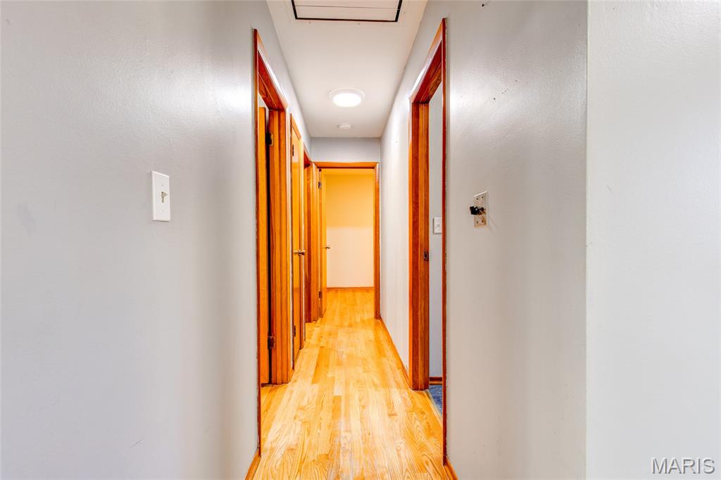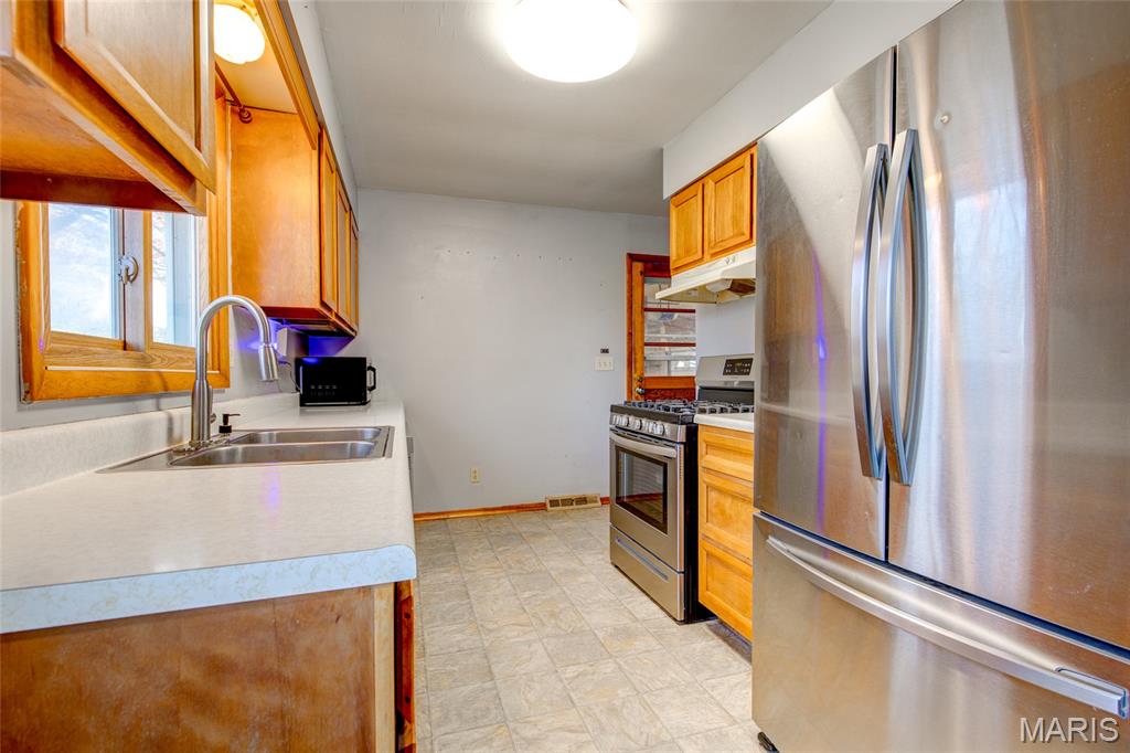 Beautiful 4 bedroom 2 bath home for sale on the outskirts of Bethalto, this ranch style home has so much to offer! Expansive driveway and oversized 2 Car attached garage gives sufficient space for hobbies, additional storage, or a workshop area. Inside there are 3 bedrooms all on main level with new light fixtures, a newly remodeled full bathroom with shower/tub combination and newly installed waterproof luxury vinyl tiled floors. The entire main level (besides bathroom and kitchen) has the original hardwood floors in great shape! Eat in kitchen has good countertop space and includes all of the nice stainless appliances with the sale. Living room has large picture windows, new light fixture and newly installed recessed lighting. Downstairs in the walk out basement is the 4th bedroom, large family room, full bathroom-all newly constructed from top to bottom. Including new vinyl plank floors running throughout the finished portion of the basement. There is also an unfinished utility/storage/laundry area located in the basement for additional storage space. French doors from basement walk out lead to a fenced in portion of the backyard with storage shed. This property does not stop there, raised garden beds, and another large field of open land are also included in this parcel. Totaling 1.34 Approx. acre. Views of wildlife are abundant all year long! Schedule a showing today to see this conveniently located property in Bethalto schools- that gives you the feeling of a country setting, and large private wooded lot on the outskirts of town, but still close to everything! Seller will complete city occupancy, otherwise property being sold AS-IS.