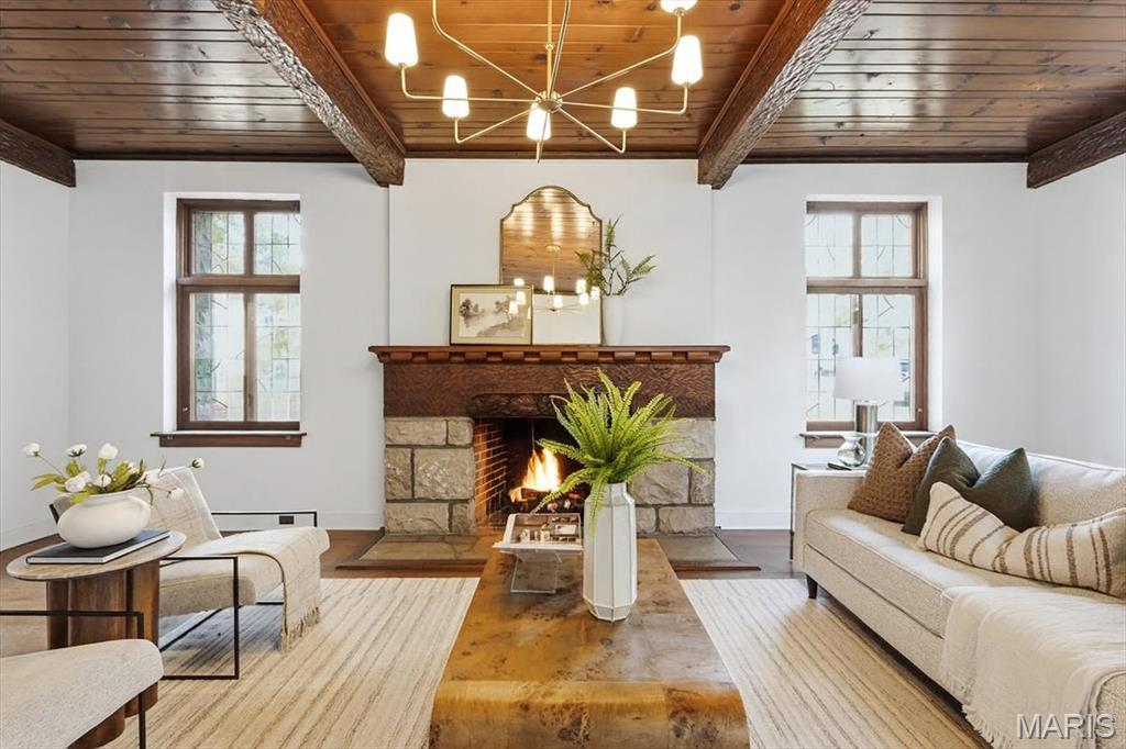 Welcome to a Masterfully Renovated Tudor Residence in Prestigious Clayton. Nestled within one of Clayton’s most sought-after enclaves, this distinguished historic Tudor has been meticulously restored to offer timeless elegance and refined living. A testament to superior craftsmanship, every detail of this home reflects pride and precision. The main level unveils a grand sunken living room—both rustic and formal in character—anchored by a magnificent hand-carved wood-burning fireplace and crowned with exposed wood beams. Adjacent, a luminous dining room opens gracefully onto a restored flagstone terrace, seamlessly connecting to the gourmet kitchen. Designed for the discerning chef, this culinary haven features premium KitchenAid appliances, quartz countertops and backsplash, a bespoke range hood, custom cabinetry, and glass-front displays. An additional sunken lounge enhances the home’s entertaining capacity, while a stately main-floor study offers a quiet retreat for work or reflection. Ascend to the second level, where the primary suite awaits—a sanctuary complete with a private dressing area, luxurious bath, and a custom walk-in wardrobe. Three additional bedrooms, two full baths, and a dedicated laundry space complete this floor with thoughtful functionality. The lower level extends the living experience with a warm and inviting recreation room, centered around a second wood-burning fireplace. Whether envisioned as a third lounge, a gentleman’s retreat, billiards room, tasting bar, or home theatre, the possibilities are endless. A finished laundry room and half bath further enhance this level’s convenience. Fresh landscaping, restored stone patio and design-forward modern 2 car carport complete this home.