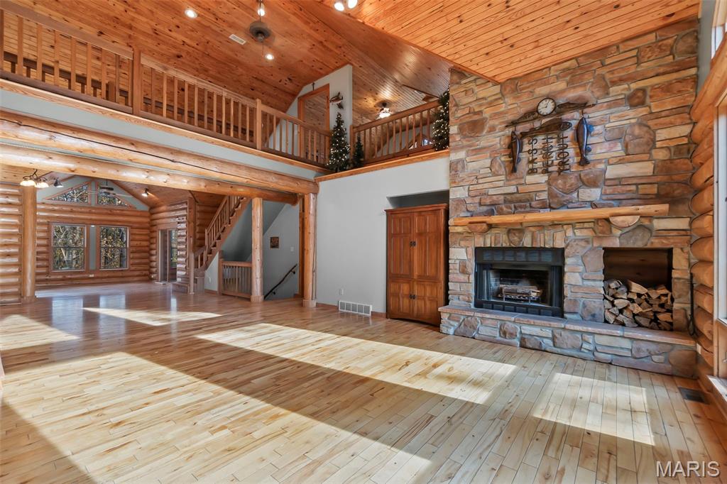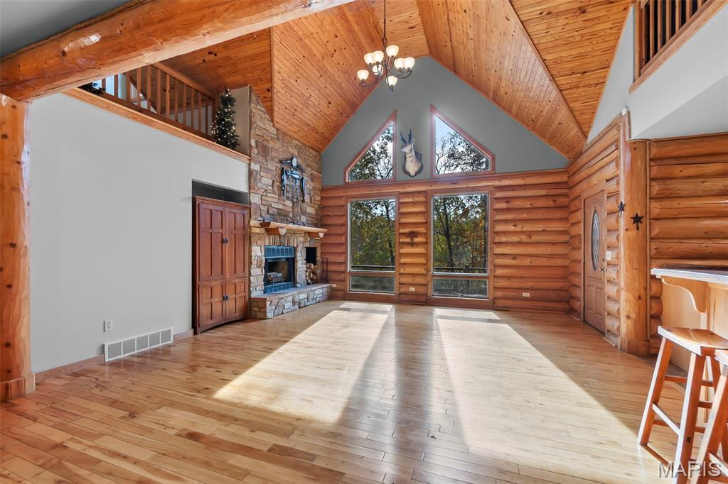 WELCOME TO BROKEN OAK – Where fine craftsmanship meets the solitude of nature * Nestled on just under 8 acres of private, wooded splendor * If you dream of waking each morning and retiring at night to a place of wonder, this splendid log home and setting beckons your destiny * And with water frontage to a 5 acre neighborhood LAKE, you’ll not only enjoy lake views, but you can fish and kayak, too ! * Brimming with custom features, the richness of wood and fine workmanship abounds – Average does not reside here * Every turn, every view soaks up something special * This rare 1.5 story gem boasts approx 3,700 SF of custom living space * The soaring, light-filled 2 story Great Room is highlighted with a majestic floor-to-ceiling stone fireplace, vaulted wood ceilings and gleaming wood flooring * Enjoy the main floor Primary Ensuite with access to an adjoining screened porch, where private morning coffee time or evening solitude time awaits * Entertaining & family living extends to the finished walkout lower level with 2 Bedrooms, Full Bath, Family Room, Rec Room, Wet Bar Room & Wine-Making/Wine Storage Room * The second story features two large loft rooms… ideal for home office, crafts, exercise & more * Outdoor entertaining & nature watching are enhanced with covered porches, screened porches, expansive decks, planked walking paths & covered pavilion – bringing the outdoors to your doorstep * New Roof 2024 * Dual Heating & Cooling * Alternative outdoor woodburning furnace * Generac All House Generator * Want room to build a future shop or outdoor building?... There’s room for that, too * Call for a private tour today and claim your destiny.