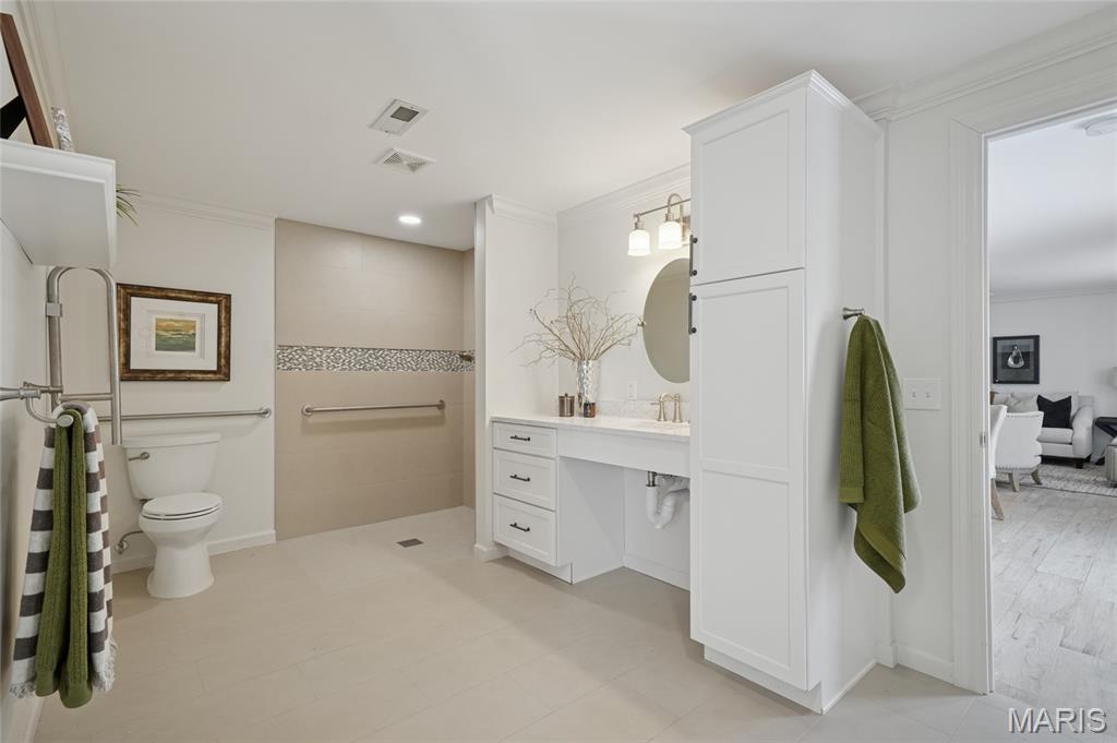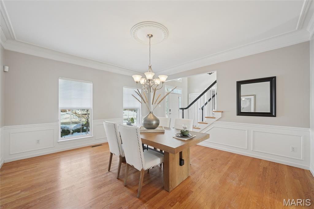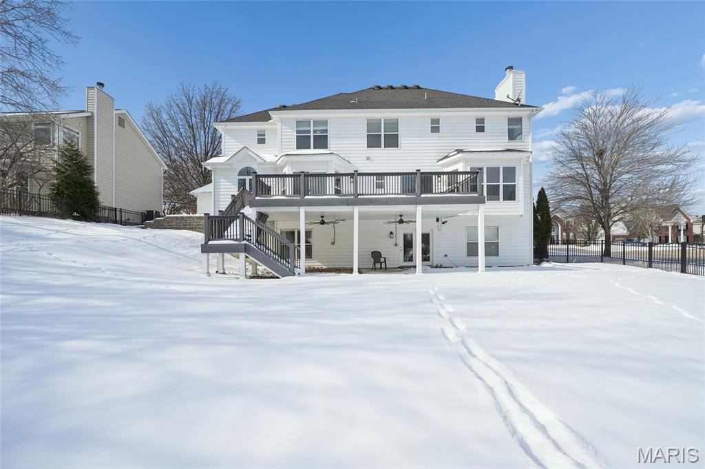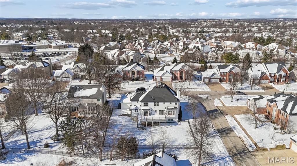 Beautifully appointed and meticulously maintained, this 5-bedroom, 4.5-bath two story home with a 3 car garage is ideally situated on a quiet, fenced cul de sac lot. With approximately 4,600 square feet of living space, the residence features elevator entry off the living room providing seamless access to the ADA compliant, finished walk out lower level. The main floor showcases hardwood flooring, elegant crown molding, and 9' ceilings. An impressive two-story entry opens to the formal living and dining rooms. The inviting family room offers a five-window bay, walk behind wet bar, WB fireplace and access to a deck overlooking the large, fenced backyard. The gourmet kitchen and breakfast room include a center island, custom cabinetry, granite countertops, stainless steel appliances, two walk in pantries, a built in desk, butler’s pantry, and a bay with a door to the composite deck. A rear staircase off of the kitchen leads to the second floor. The luxurious primary suite features a coffered ceiling, generous walk-in closet, and spa like bath. Four additional bedrooms complete the upper level—one with a private en suite bath and two connected by a Jack and Jill bath. The walk out lower level offers a fully ADA-accessible apartment, which could also be a beautiful in-law or guest suite including a fifth bedroom, kitchenette, washer and dryer, accessible bath, and a spacious walk-in closet with elevator access to the main level. The lower-level family room opens to a covered patio for additional outdoor living. Located close to parks, shopping, dining and award-winning Rockwood schools! Kitchen and lower level refrigerators, as well as the main and lower level washers and dryers, are included.