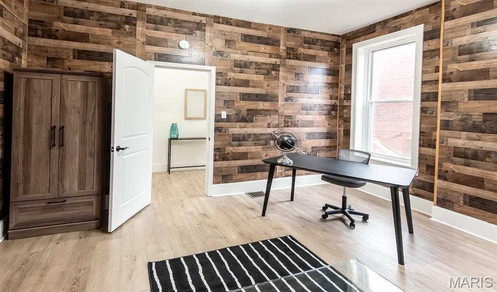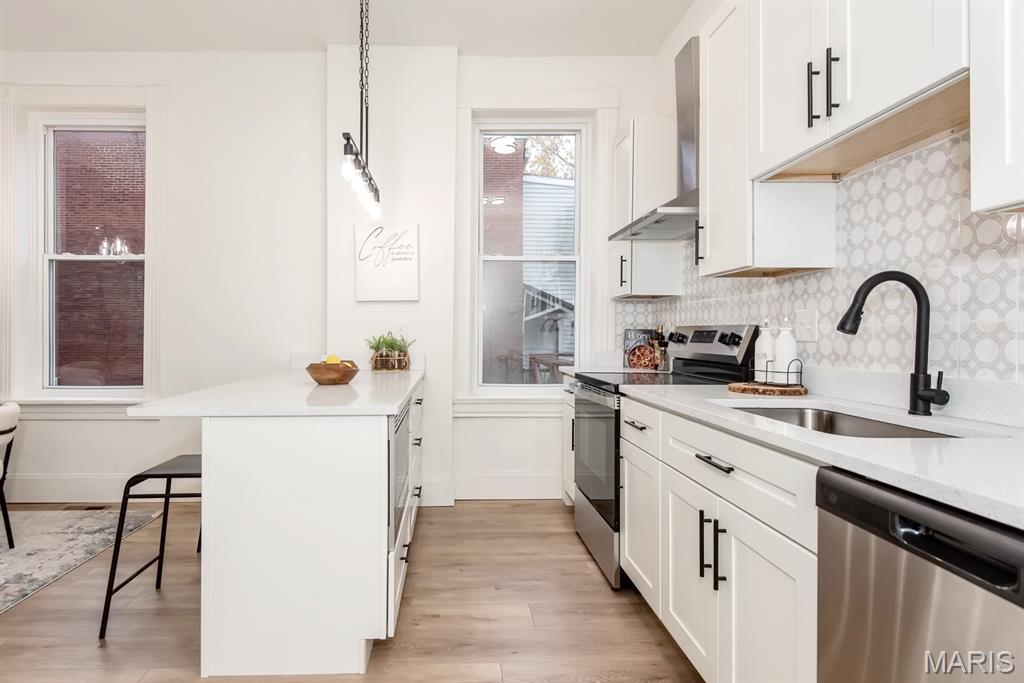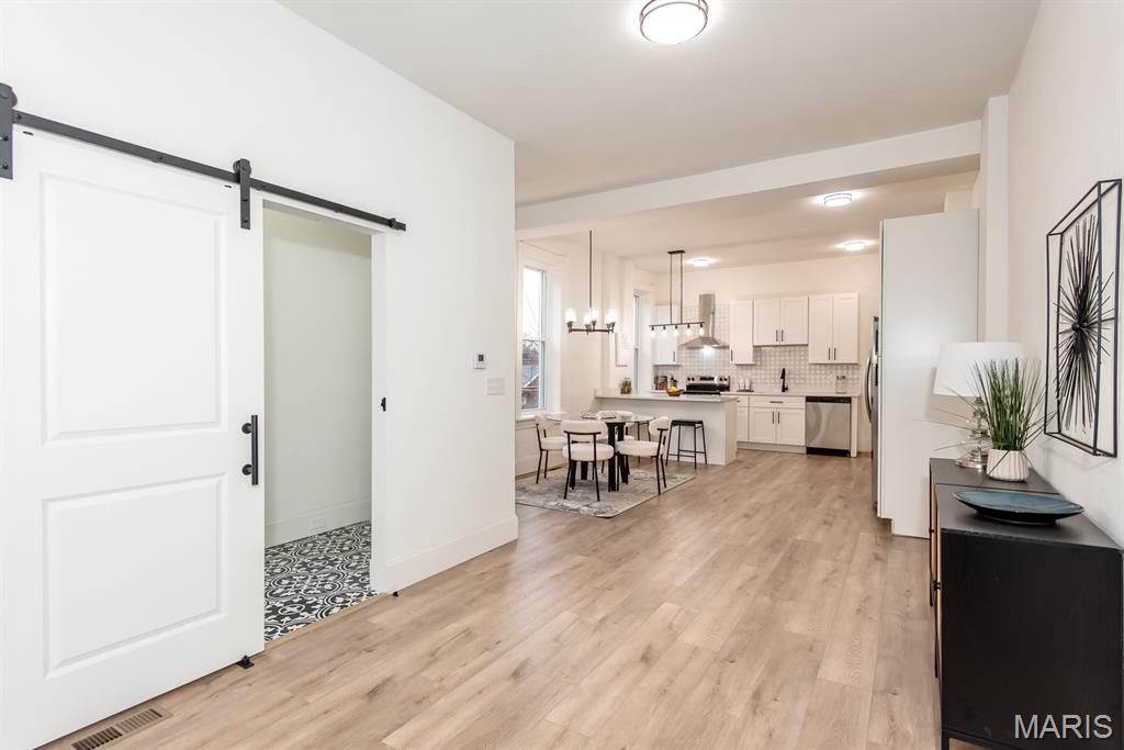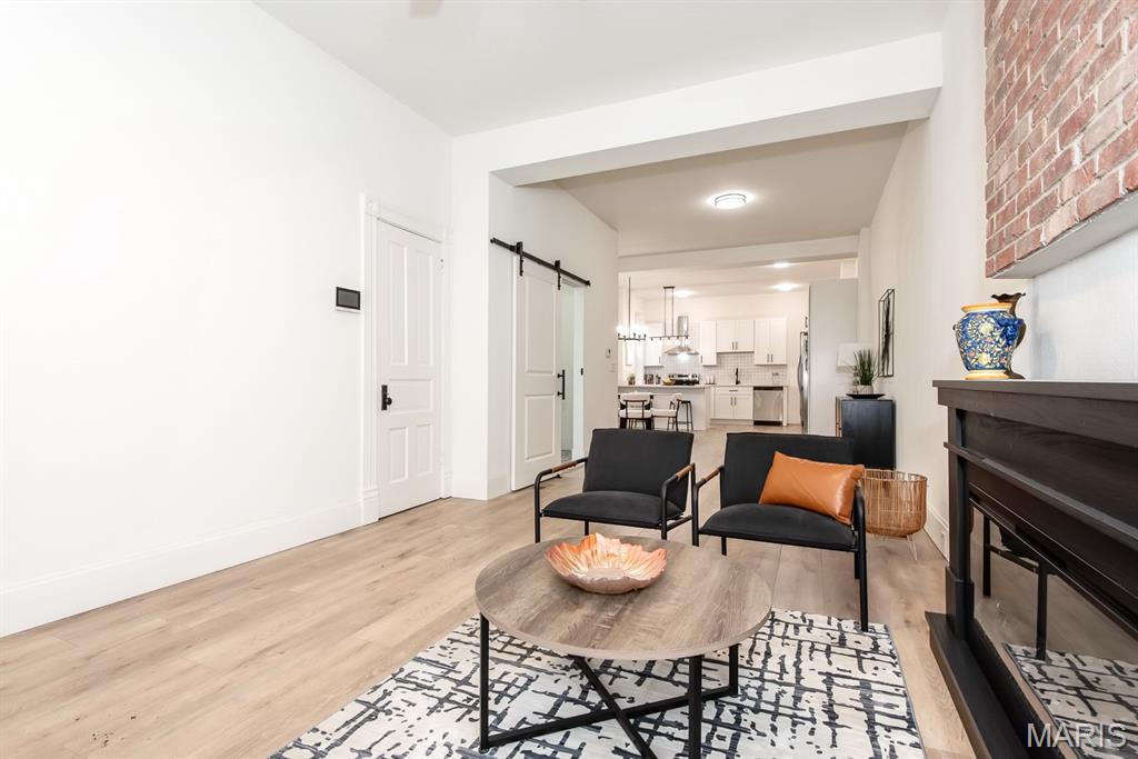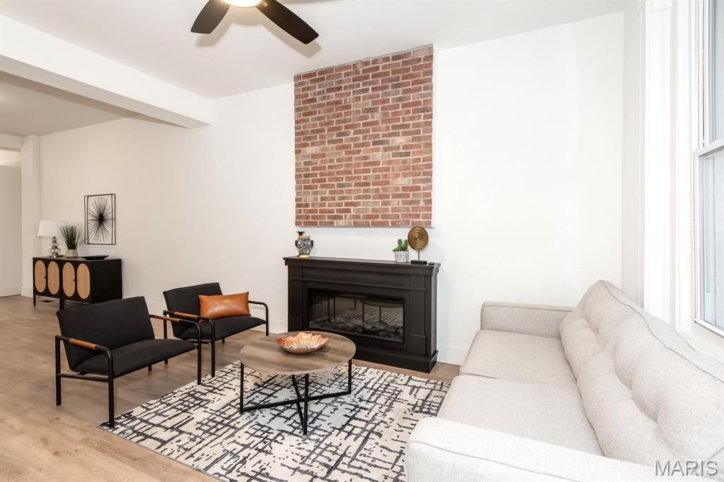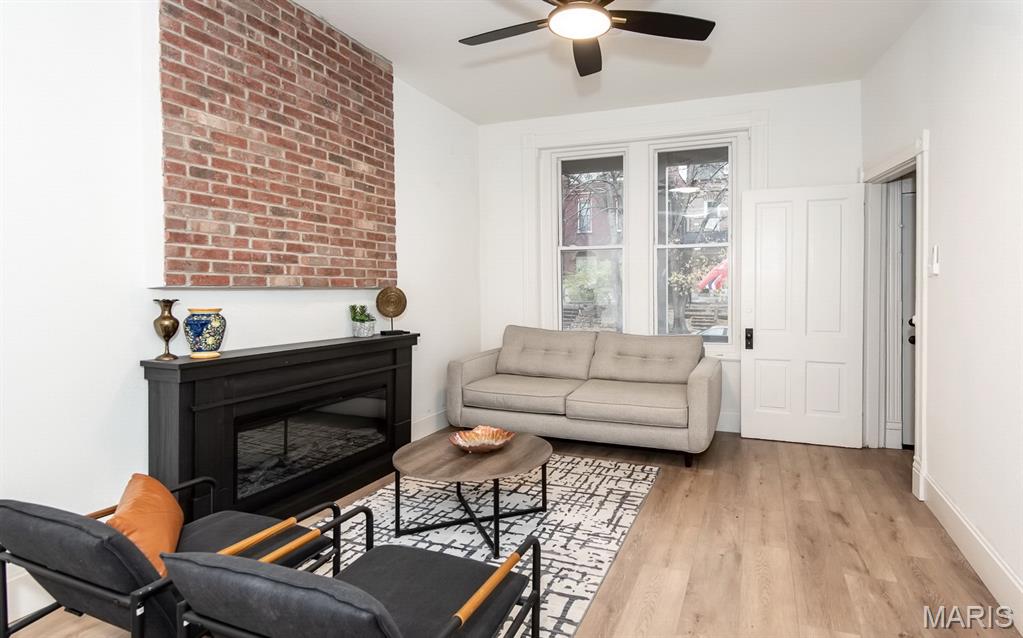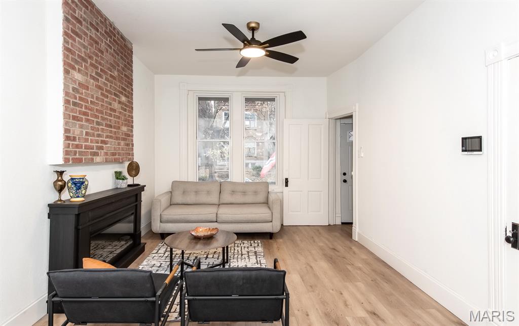 PRICE ADJUSTMENT & OPEN SUNDAY 1-3PM! What a STUNNING all brick home on a huge double lot with lots of living space AND a two car-oversized garage with extra storage! Fall in love with the beautiful, modern interior upgrades. Covered front porch invites welcomes you to the inside. Tall ceilings, natural sunlight and openness as you enter the living room with a fireplace. Convenient main floor laundry & half bath! Spacious dining area leading to the gorgeous kitchen with all new stainless steel appliances, built-in microwave, large kitchen island and white shaker cabinets. Oh, and did we mention it also features a main floor bedroom ?! Attention to the detail in every room. Luxury vinyl plank flooring throughout most of the main level. Wait until you see the upstairs! Large bedrooms, two BEAUTIFUL full baths and plenty of closet space as well as a loft area/ office space/ additional sleeping room/ walk-through bedroom. Two staircases! What a backyard oasis - this spacious double lot is a dream for every gardener, entertainer, your pets & friends - enjoy BBQ's, firepit sessions, morning coffee, unwinding from a busy day or... how about adding a pool or hot tub? Endless opportunities! Big back deck rounds up the outdoor space. Lower level has a walk-up and is currently set up as storage area but could be turned into office space, gym/ workout or even a movie room. Private parking your garage with additional on street parking available. Situated in the vibrant Gravois Park close to Benton Park West, within walking distance to Cherokee St & Benton Park and all other South City attractions including coffee shops, bakeries, restaurants, entertainment, parks & bars. Move-in Ready for you - including a passed occupancy & Home Warranty! Come see it TODAY