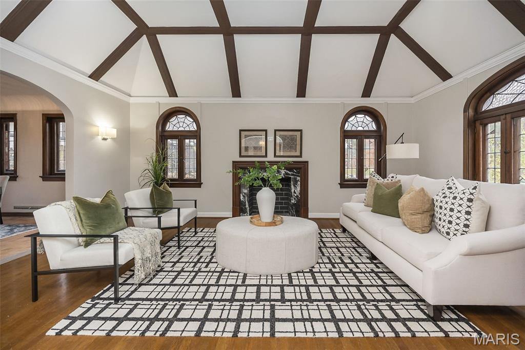 Seasons Greeting! Circa-1938, This residence is situated in one of the area’s most established historic neighborhoods. The surroundings are defined by mature, tree-lined streets, consistent stone and brick architectural work, and slate tile roofs that reinforce the district’s character. This home boasts original leaded-glass windows, stone and brick detailing, and preserved hardwood floors maintain the home’s period authenticity. Generously scaled for its era, offering multiple living areas, well-proportioned bedrooms, and strong overall livability. This residence combines intact 1938 craftsmanship with targeted modern updates. You'll fall in love with the remodeled kitchen offering granite countertops, custom 42' cabinetry and new stainless steel energy efficient appliances. Enjoy the private attached two car garage and backyard oasis as you drive up and around your new driveway. With interest rates recently lowered, and holiday parties around the corner. Now is the perfect time to make the place home. Schedule your appointment today!