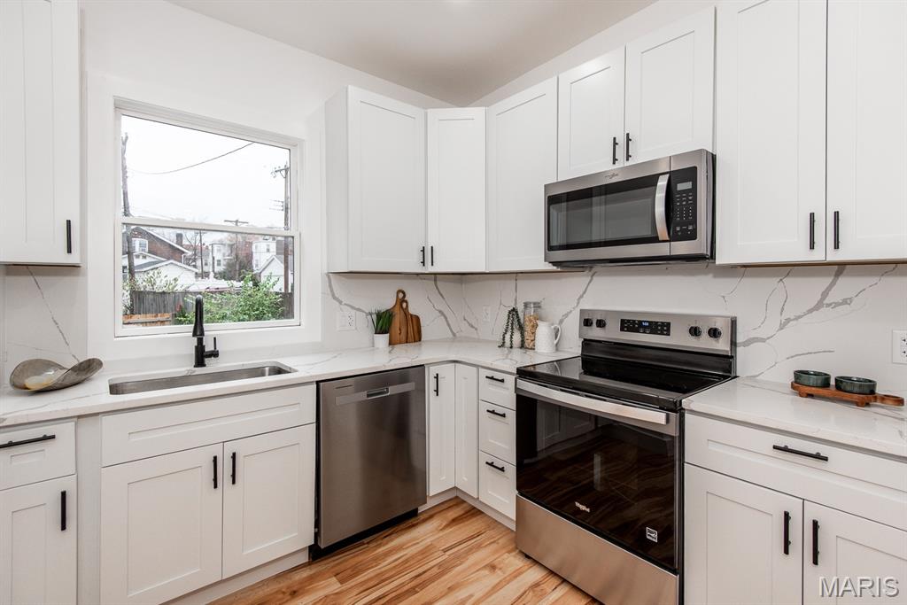 Beautifully renovated 3-Bed, 2-Bath Home with Modern Amenities in Princeton Heights! This updated home features a first floor with luxuray vinyl wood flooring throughout, living room/dining room combo, main floor bedroom, full bathroom and a stylish kitchen with 42” cabinets, stainless steel appliances, granite countertops, and backsplash. Upstairs there are 2 more bedrooms and a modern bathroom with updated lighting, tile and vanity. Enjoy the fenced backyard with patio and 2-car parking pad. All major updates—appliances, roof, electric, plumbing, siding, HVAC and more—are less than a year old! A must-see!