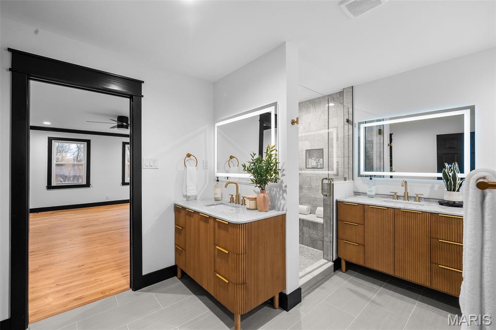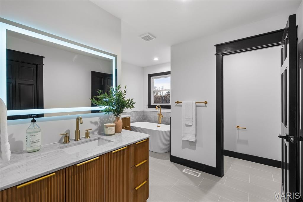Back on market at no fault of seller: Spectacular Frontenac renovation in Ladue (Conway) School district. This stately 2-story home features 4 bedrooms and 3 full baths on the second floor. The primary suite has a large carrara marble surround shower, luxurious soaking tub, private water closet, two vanities, as well as a generous walk-in closet. There is an en-suite shower for the second bedroom with waterfall tiled walls. The final two bedrooms share a third bathroom. A second floor laundry room rounds out the floor. The main floor was designed to activate multiple areas, with a formal dining room, sitting room, and open floorplan through the kitchen and living room. The kitchen features Thermador appliances and quartz countertops siting on custom cabinetry. The walk-in pantry has custom shelving, cabinetry, and a sink/coffee station. The Kitchen's 11ft island with seating makes a perfect transition to the living room, which has a stately, slate-surround direct-vent gas fireplace. Just off of the living room is a heated 3-seasons room. Entering the home from the oversized 3-car garage, there is a mud room with custom hall trees and laundry station, as well as a powder room complete with a live-edge walnut custom vanity. Outside, the driveway has been completely refinished, a new paver patio has been installed, and an acre of flat ground is perfect for outdoor activities or adding a pool, which can easily be done. Early preview open houses Friday 5-7pm and Saturday 9-11am with photos coming shortly thereafter.