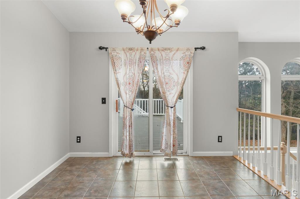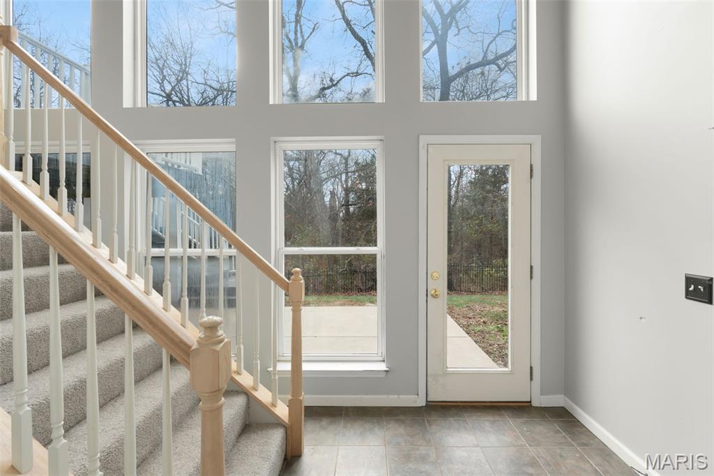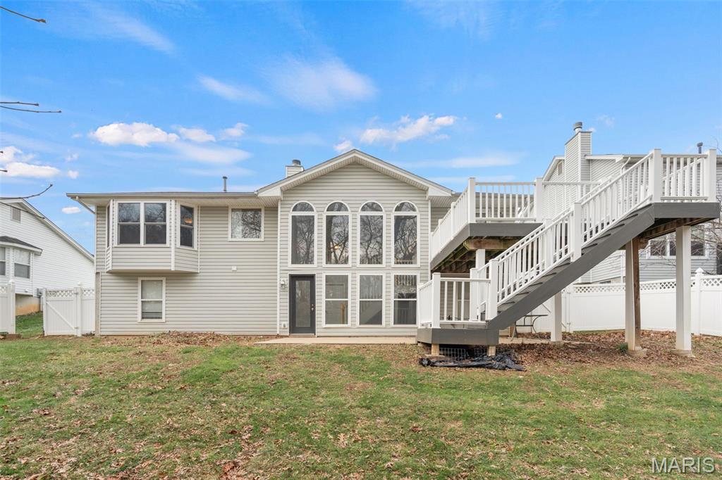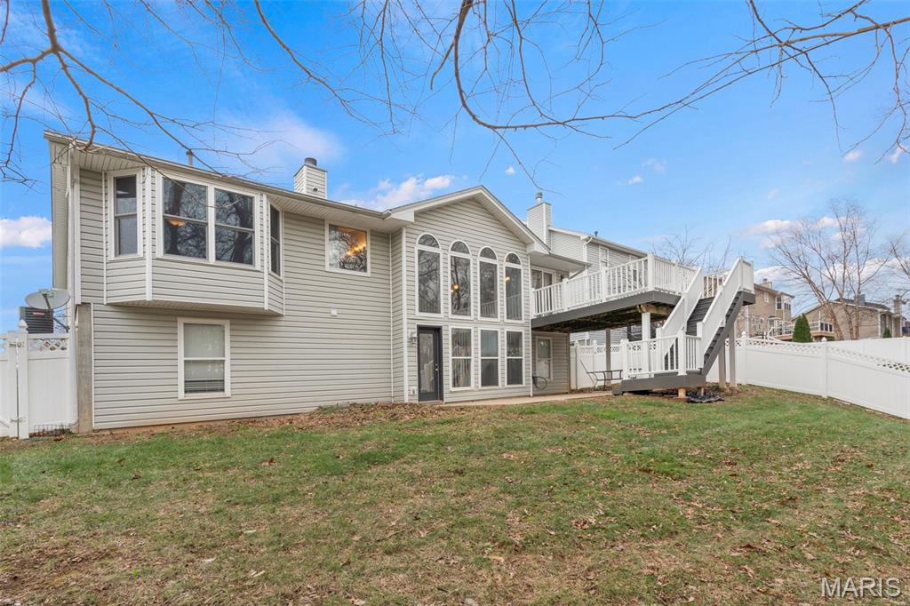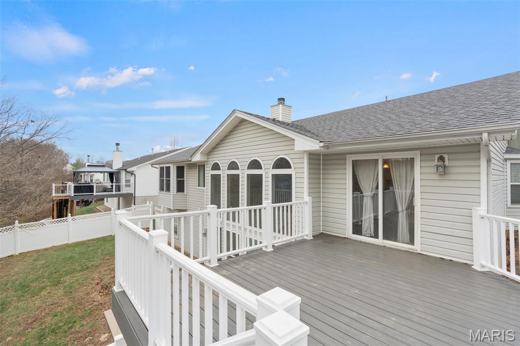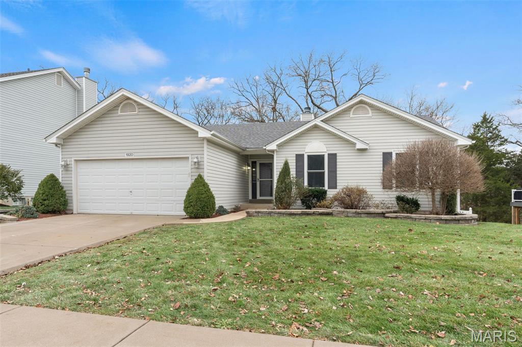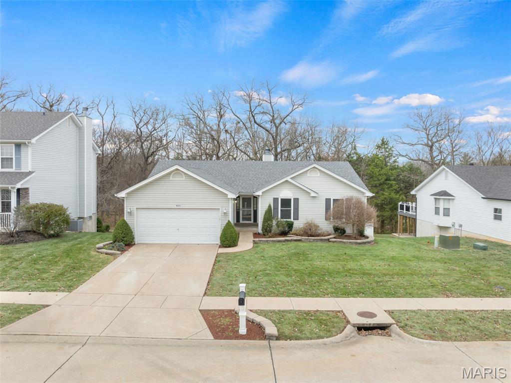 Take a look!! An exceptional designed Atrium Ranch, which backs to woods! With an elegant entry, the open-concept great room is designed for living and entertaining, with soaring vaulted ceilings, a cozy fireplace that anchors the heart of the home, and arched windows that flood the space with natural light while welcoming an expansive view along the back of the room! The Kitchen is centered on a Breakfast Room with bay window and a separate Dining Room with sliding doors opening to an expansive deck with composite flooring! The Primary Bedroom has a walk-in closet and ensuite bath, with a double vanity, soaking tub, and separate shower. Two additional bedrooms, a full bath, and Laundry Room, complete the Main Floor. The Lower Level, with approximately 1100sf of extra finished space, is designed to be a complete living space! There is a Family Room, Bedroom, full bathroom, and Kitchen, with stainless appliances, and granite counter top with a breakfast bar. A dedicated breakfast area, a bonus office space/sleeping room, and ample storage space area are included in the Lower Level, which has a walkout to the extended patio. Updates include new roof in Mar 2024, new carpet in main floor bedrooms, freshly painted bedrooms and the great room/kitchen area recently painted, and a newer HVAC. Schools nearby and easy access to highways 61, 70, and 40/64.