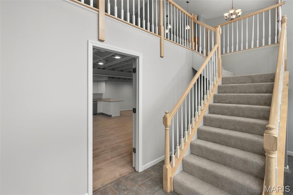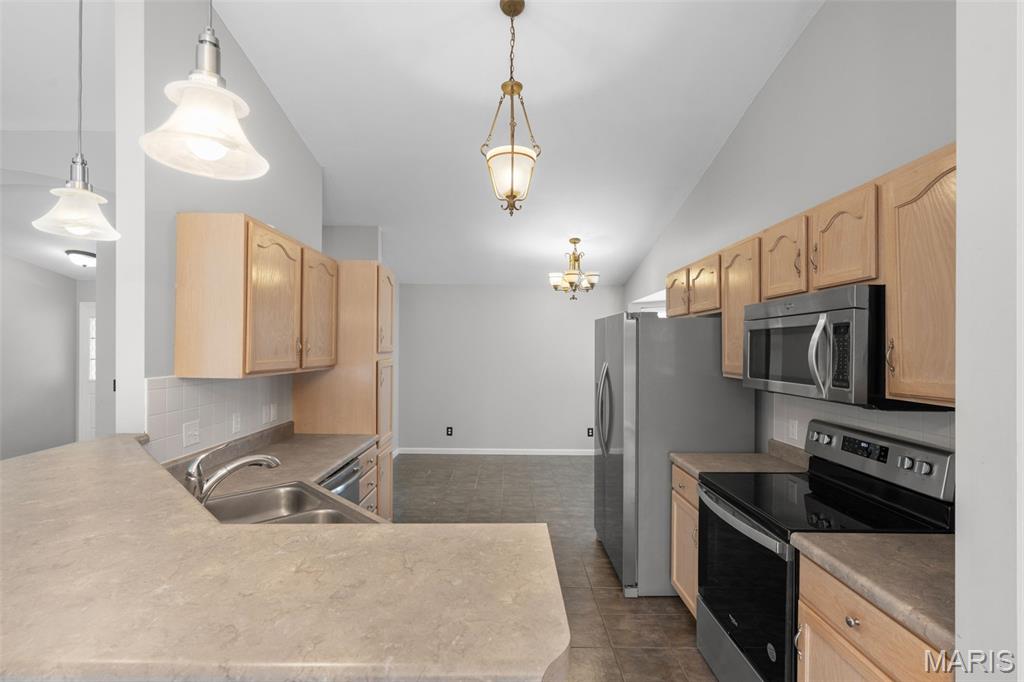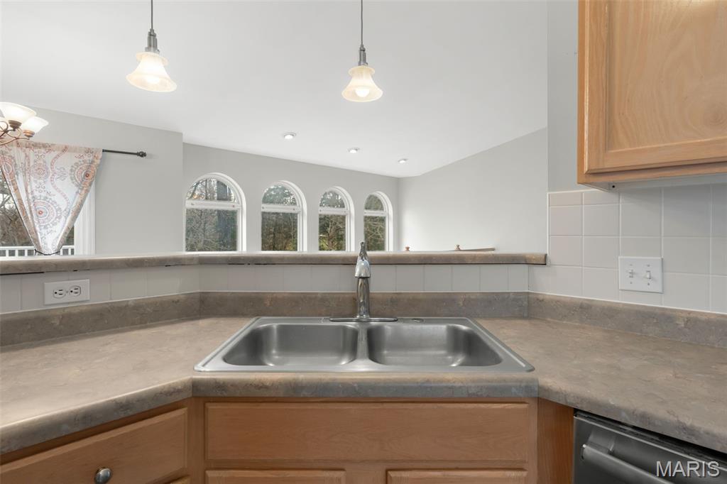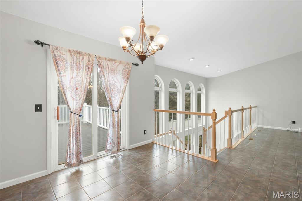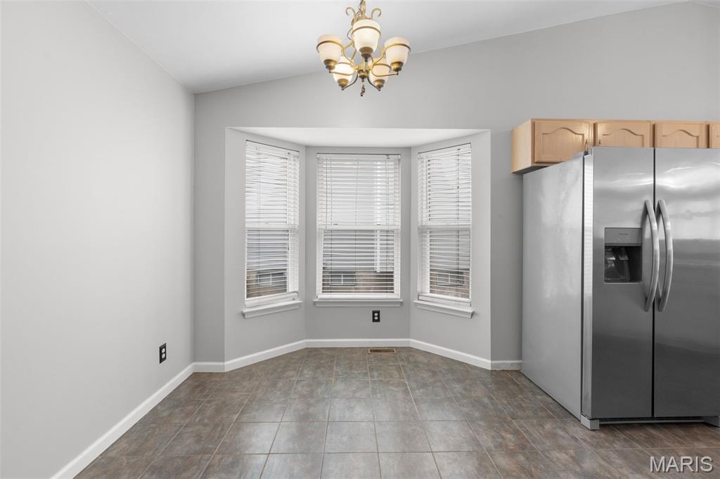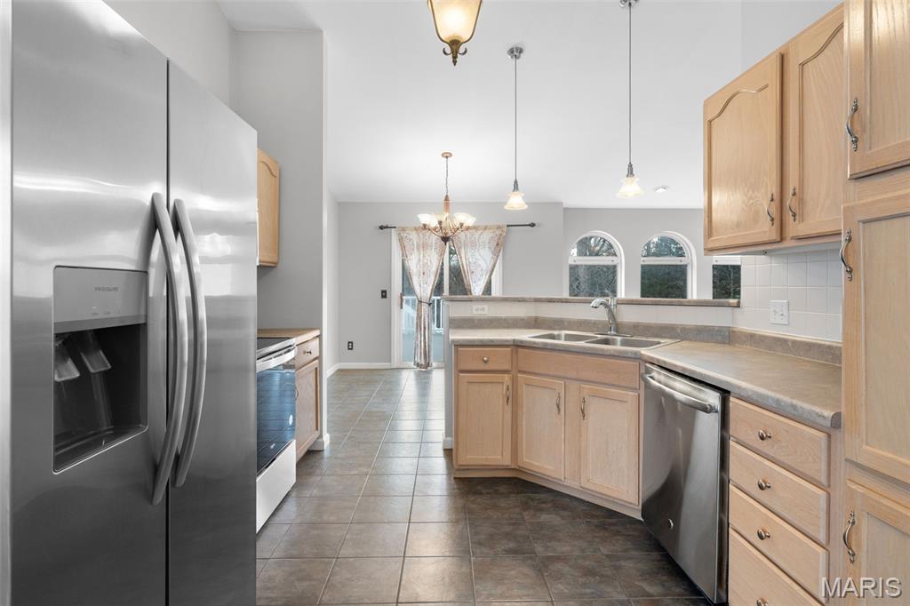 Take a look!! An exceptional designed Atrium Ranch, which backs to woods! With an elegant entry, the open-concept great room is designed for living and entertaining, with soaring vaulted ceilings, a cozy fireplace that anchors the heart of the home, and arched windows that flood the space with natural light while welcoming an expansive view along the back of the room! The Kitchen is centered on a Breakfast Room with bay window and a separate Dining Room with sliding doors opening to an expansive deck with composite flooring! The Primary Bedroom has a walk-in closet and ensuite bath, with a double vanity, soaking tub, and separate shower. Two additional bedrooms, a full bath, and Laundry Room, complete the Main Floor. The Lower Level, with approximately 1100sf of extra finished space, is designed to be a complete living space! There is a Family Room, Bedroom, full bathroom, and Kitchen, with stainless appliances, and granite counter top with a breakfast bar. A dedicated breakfast area, a bonus office space/sleeping room, and ample storage space area are included in the Lower Level, which has a walkout to the extended patio. Updates include new roof in Mar 2024, new carpet in main floor bedrooms, freshly painted bedrooms and the great room/kitchen area recently painted, and a newer HVAC. Schools nearby and easy access to highways 61, 70, and 40/64.
