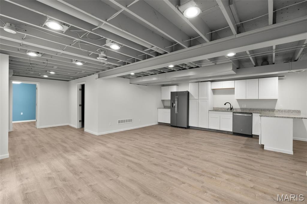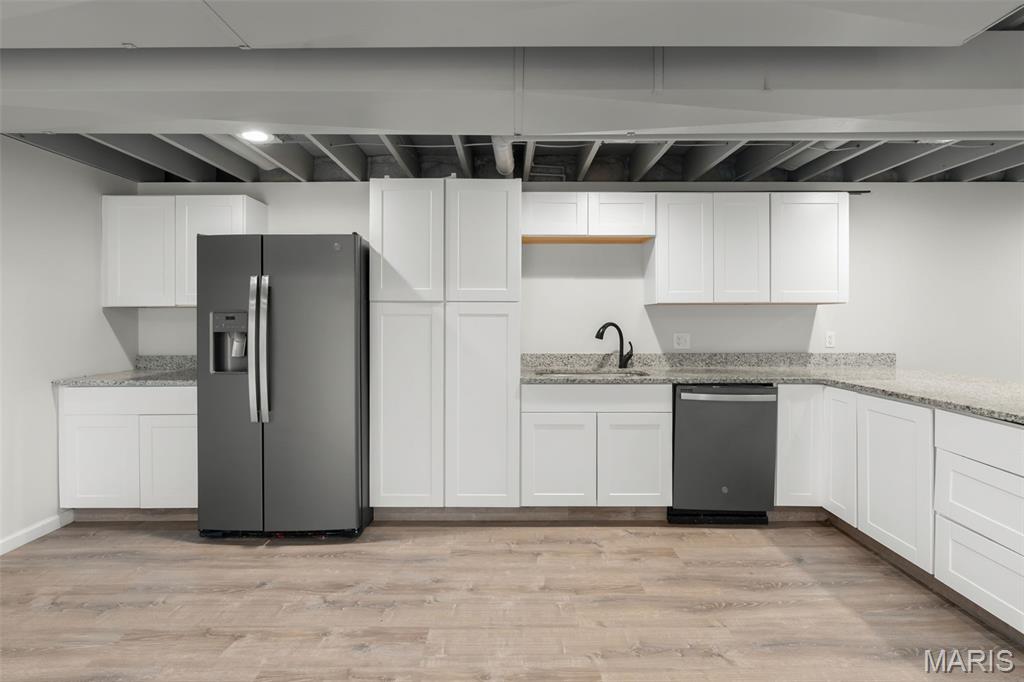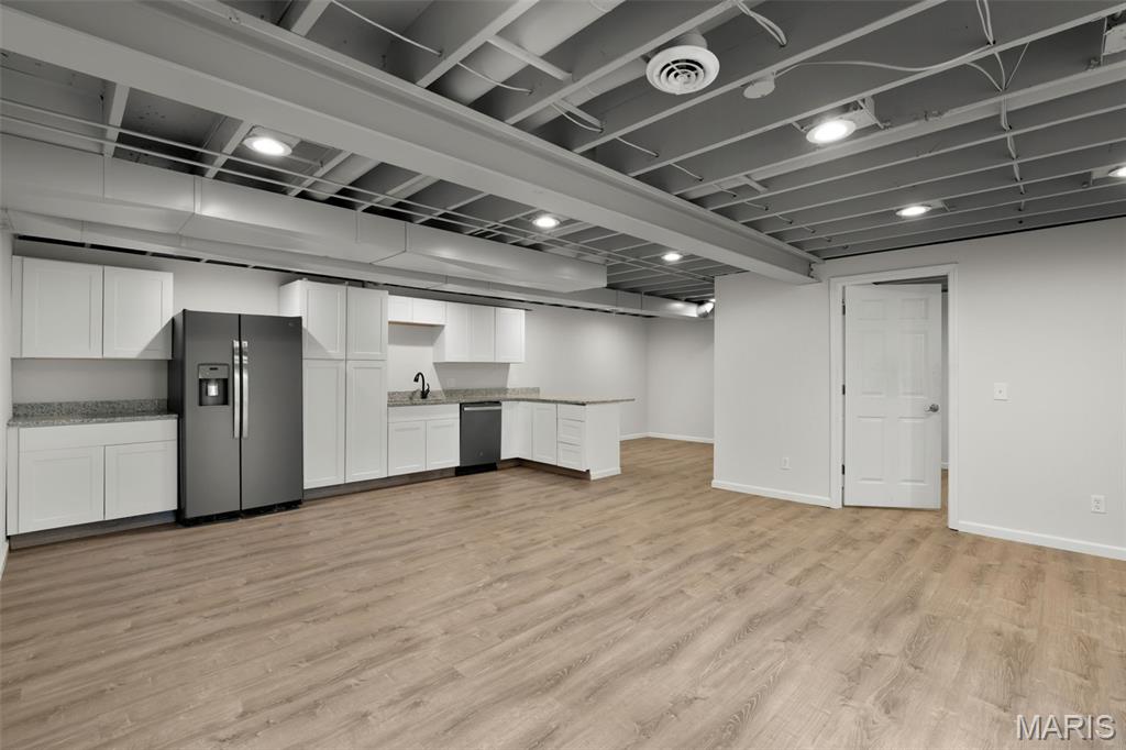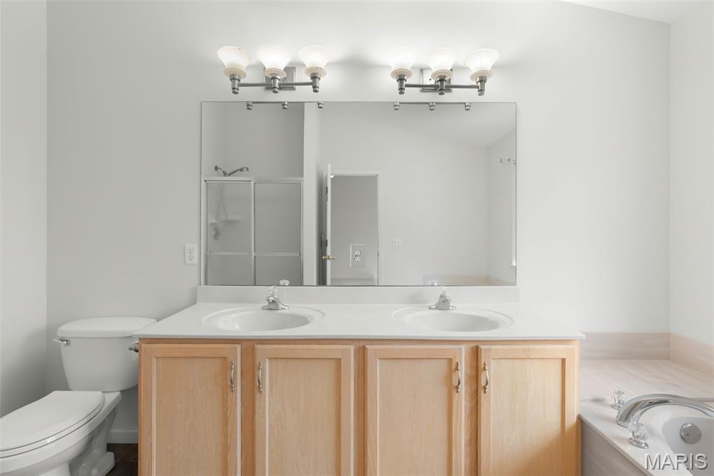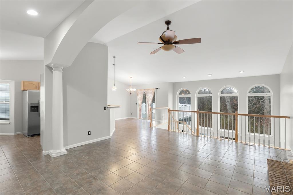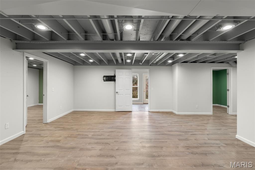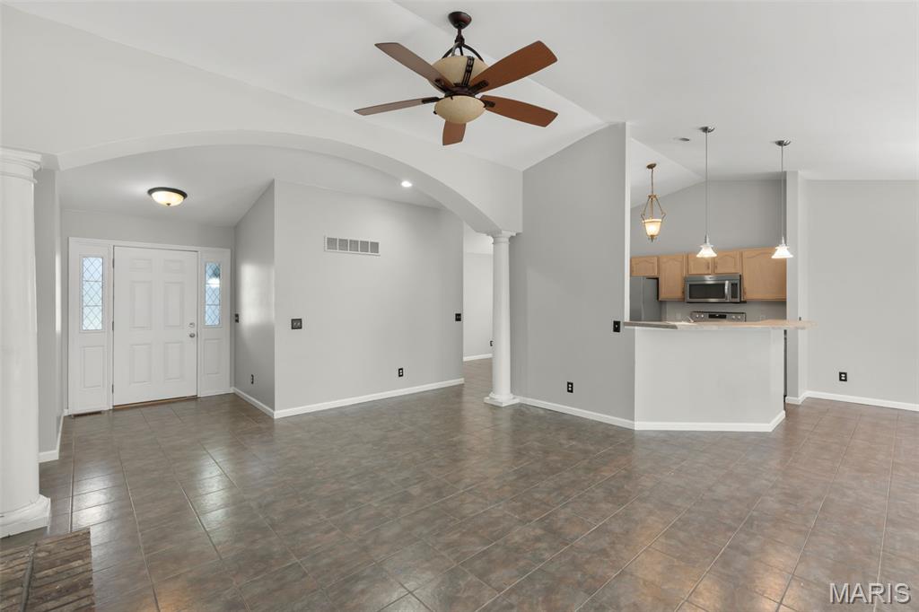 Take a look!! An exceptional designed Atrium Ranch, which backs to woods! With an elegant entry, the open-concept great room is designed for living and entertaining, with soaring vaulted ceilings, a cozy fireplace that anchors the heart of the home, and arched windows that flood the space with natural light while welcoming an expansive view along the back of the room! The Kitchen is centered on a Breakfast Room with bay window and a separate Dining Room with sliding doors opening to an expansive deck with composite flooring! The Primary Bedroom has a walk-in closet and ensuite bath, with a double vanity, soaking tub, and separate shower. Two additional bedrooms, a full bath, and Laundry Room, complete the Main Floor. The Lower Level, with approximately 1100sf of extra finished space, is designed to be a complete living space! There is a Family Room, Bedroom, full bathroom, and Kitchen, with stainless appliances, and granite counter top with a breakfast bar. A dedicated breakfast area, a bonus office space/sleeping room, and ample storage space area are included in the Lower Level, which has a walkout to the extended patio. Updates include new roof in Mar 2024, new carpet in main floor bedrooms, freshly painted bedrooms and the great room/kitchen area recently painted, and a newer HVAC. Schools nearby and easy access to highways 61, 70, and 40/64.