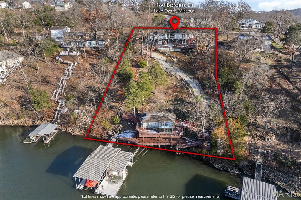 Don’t miss this incredible lakefront opportunity featuring a 5BD/4BA main home plus a 1BD/1BA guest house perched over the water on MM 17 in Lake Ozark! Offering big water views, a prime location by land and water, and nightly rental approval, this property is ideal for full-time living, multigenerational use, or investment. The one-of-a-kind guest house offers a large lakeside sunroom, full kitchen, living room, spacious bedroom, full bath, and extensive wraparound decking. Enjoy a newer 2-well concrete dock (12x36 + PWC slip) with a swim platform and storage/bar room with electric. The main home features two full kitchens (including a newly remodeled main kitchen), two living areas, two primary suites, two dining spaces, and a 2-car garage. Additional highlights include two wood-burning fireplaces, indoor/outdoor speakers, abundant decking (recently repaired and resealed), vaulted ceilings, newer roof and stucco on the guest house, flat driveway, main level living, and approx. 30’ of water depth. A new cart path to the dock adds easy access. Truly exceptional lakefront living—turn-key and ready to enjoy!