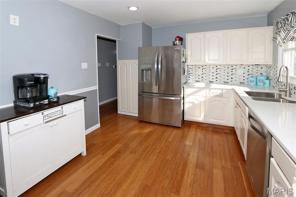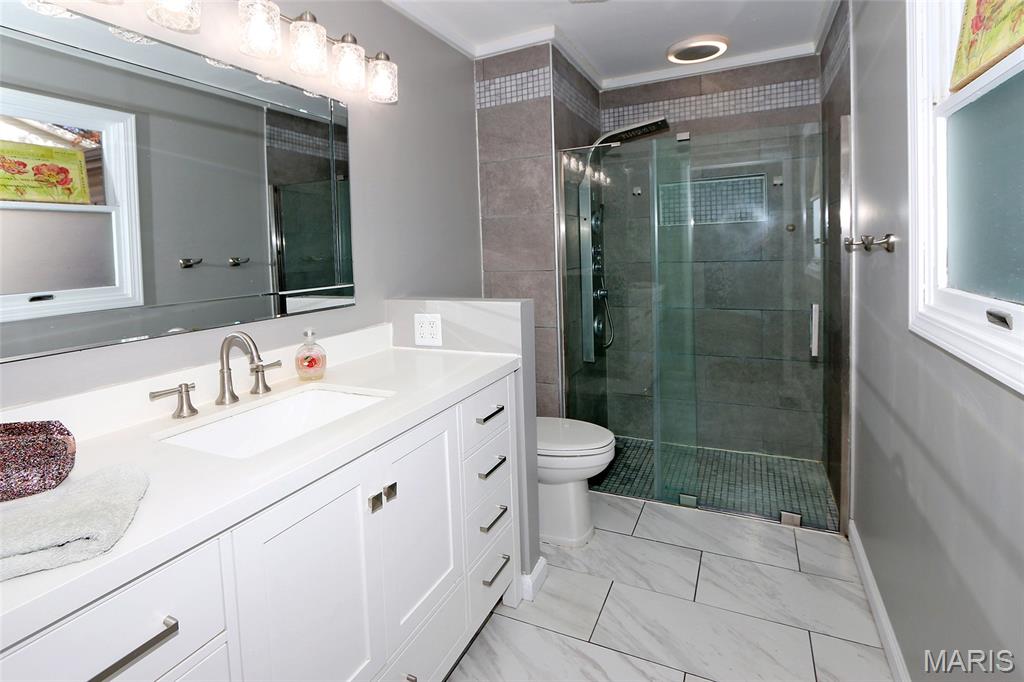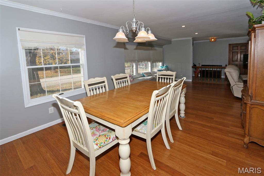 2900+ SQ. FT. RANCH! 4+BEDROOMS! FINISHED BASEMENT! Enter to foyer & main living/dining area including spacious great room with fireplace, oversize bay window w/charming windowseat, laminate wood flooring, crown moulding & chair rail. Eat-in kitchen is adjacent with white cabinets, white quartz counters, stainless steel refrigerator & dishwasher/white electric range & microwave. Wood laminate flooring continues down the hall & into 2 of the 4 bedrooms. Primary bedroom w/walk-in closet & stunning private full bath--walk-in shower, newer white adult height vanity, & rectangular white/grey tile flooring. Full hall bath & 3 additional bedrooms, including 1 with a walk-in closet. Lower level is finished and includes a very large rec area (40x13), exercise area (19x11), & sleeping area or office (15x13). Two large unfinished areas including a utility/storage area with sink & shelving and an additional storage/workshop area with a wall of pegboard for all your tools! Rear entry 2-car garage w/shelving & opener.