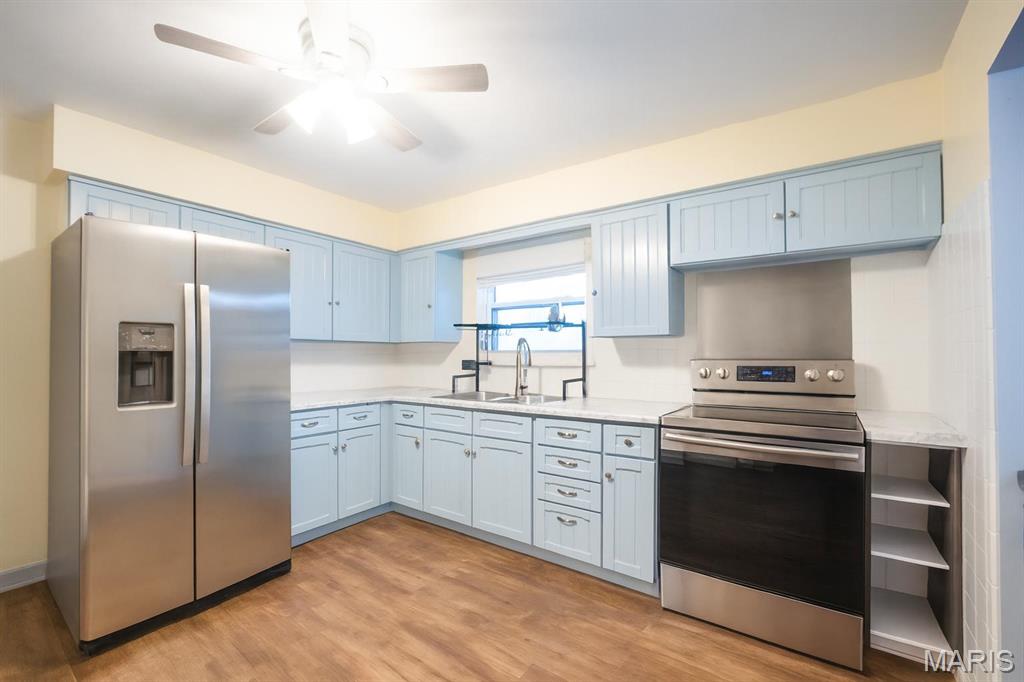 Welcome to your new sanctuary! This 3-bedroom, 1-bathroom house is a perfect blend of comfort and charm, designed to meet all your family’s needs. With a welcoming layout and features including built in floating shelves surrounding the living room fire place, this home is sure to captivate your heart. As you step inside, you’ll be greeted by an inviting living space adorned with beautiful hardwood floors that flow seamlessly through the living room, dining area, and bedrooms. The ample natural light fills every corner, creating a warm and inviting atmosphere perfect for family gatherings or cozy evenings in. The kitchen, featuring luxury vinyl plank flooring that combines durability with style. Whether you’re a culinary enthusiast or a casual cook, you’ll appreciate the modern appliances that are included with the property. The adjoining rec room provides an ideal space for entertainment—imagine game nights, movie marathons, or a fun play area for the kids! The three well-appointed bedrooms offer tranquility and privacy, ensuring everyone has their own personal retreat. The bathroom—complete with stylish ceramic tile—has been thoughtfully designed for both function and form. Step outside onto your back patio, perfect for summer barbecues or morning coffee while soaking in the peaceful views of the large fenced-in backyard. This outdoor haven backs to beautiful woods, offering a private escape where you can enjoy nature and create lifelong memories with family and friends. Parking is a breeze with the attached two-car garage, providing ample space for your vehicles and additional storage. Location is everything, and this property doesn’t disappoint. Ideally situated close to shopping, restaurants, highways, & Scott Air Force Base, you’ll enjoy the convenience of urban amenities while retreating to your peaceful home. This house is more than just a dwelling; it’s a place where cherished memories will be made. Don’t miss the opportunity to make this charming oasis your own. Schedule a tour today and envision the lifestyle that awaits you in this serene haven! Newer roof (2021), newer gas water heater (2023) **Your dream home is just a showing away!**
