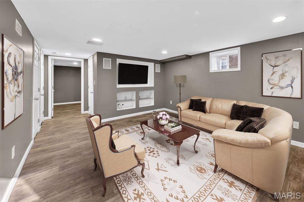 Welcome home to this picture-perfect 2 bedroom, 2 bathroom ranch in the heart of Brentwood—overflowing with curb appeal and all the charm of a storybook gingerbread cottage. Inside, you’ll find beautifully maintained hardwood floors, a cozy gas fireplace in the living room, and a remodeled kitchen featuring stainless steel appliances, granite countertops, and easy flow into the dining room. The main level offers two comfortable bedrooms and an updated full bathroom, while the finished lower level expands your living space with a generous family/rec room, a bonus room perfect for a home office, a second full bathroom, and a convenient laundry room. The walkout basement adds functionality and ease. Step outside to a level, fully fenced backyard with mature trees—ideal for relaxing, entertaining, or pets. Enjoy a wood deck, paver patio, and additional storage shed. Other highlights include a 1-car attached garage, a driveway that can easily fit 3+ cars, and an unbeatable central location. Just minutes from Brentwood shopping and dining, Hwy 64/40 & 170, and walking distance to Brentwood schools. This darling home blends charm, updates, and convenience—everything you’ve been looking for in Brentwood living!