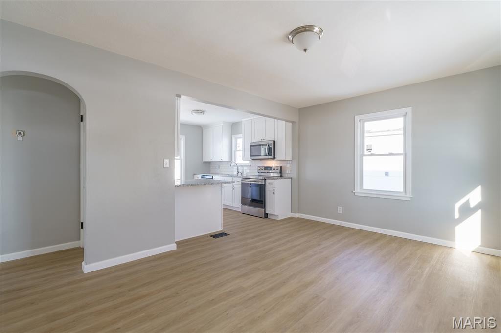 Home Sweet Home!!! Beautifully remolded 2 bed & 1 full bath ranch, this home is very appealing with all of its updated & modern design. Major remodeling new (Cabinets, counter tops, knobs, fixtures, lighting, and all new flooring). Beautiful kitchen/ with granite counter tops and ceramic back splash and soft close doors & drawers along with a nice breakfast bar at the end of counters. Open floor concept with living room bringing in tons of lighting with two new windows. Down the hall you have a full updated bathroom (new cabinets, lighting, porcelain tile in shower and polished porcelain tile floor). Primary bedroom is bright with fresh new paint colors & window & carpet. Home comes with a lot of new interior doors and exterior doors. Second bedroom is fresh with paint and new carpet new closet doors and interior doors also. With just a few steps off from kitchen you will be at back door leading downstairs where it opens up to a large family room /Bonus room /man cave. Family room also has back door/entry for its separate entry. Rest peacefully knowing there is brand new electric service inside and outside. Garage has brand new garage door /side entry to driveway. Backyard is fully fenced with a 6 ft white Vinyl fencing with private locks from inside your yard. Installed By Chesley fencing you will have Ultimate Seclusion Full Privacy Vinyl Fences that your family deserves . Home has passed all Granite City occupancy