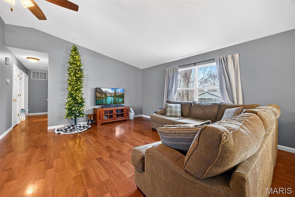 Welcome home to this beautifully refreshed, freshly painted 3-bedroom, 2-bath ranch in the heart of Saint Peters! Step inside to an open floorplan with vaulted ceilings, laminate flooring, and a bright eat-in kitchen perfect for everyday living. Three bedrooms and two full baths offer flexible space for guests, a home office, or hobbies. The full unfinished basement provides excellent storage or future finishing potential with a bathroom rough-in. Outside, enjoy a landscaped yard, front porch, storage shed, and a 2-car attached garage. Located in the highly rated Francis Howell School District and close to parks, shopping, and major conveniences, this home is truly move-in ready.