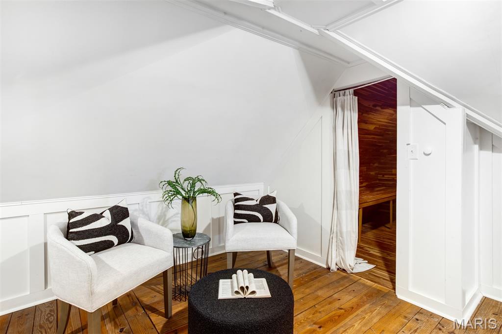Adorable St. Louis Hills bungalow with glowing, newly refinished hardwood floors, newer windows and solid six panel doors throughout. Living room features wood burning fireplace and is wide open to dining room. Kitchen feature stainless steel appliances, center island, pantry and plenty of cabinets and counter space. Sunroom located just off the kitchen with loads of newer windows, perfect for relaxing, reading or morning coffee and could also be used as a breakfast room. Upstairs is finished with recessed lighting, lovely wall treatment and features third bedroom space, office and sitting room. Nicely finished and recently painted lower level with LVP flooring, family room and bonus room perfect for an exercise room or game room. Lower level also has updated, nice sized full bathroom. Back yard is fully fenced-in with 6 foot vinyl and features a gazebo, patio and full 2 car garage. Just a short walk to Francis park...Move right in and enjoy wonderful restaurants, coffee, shopping, grocery and so much more all at your fingertips. Make an appointment and take a look today!