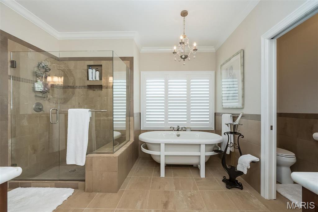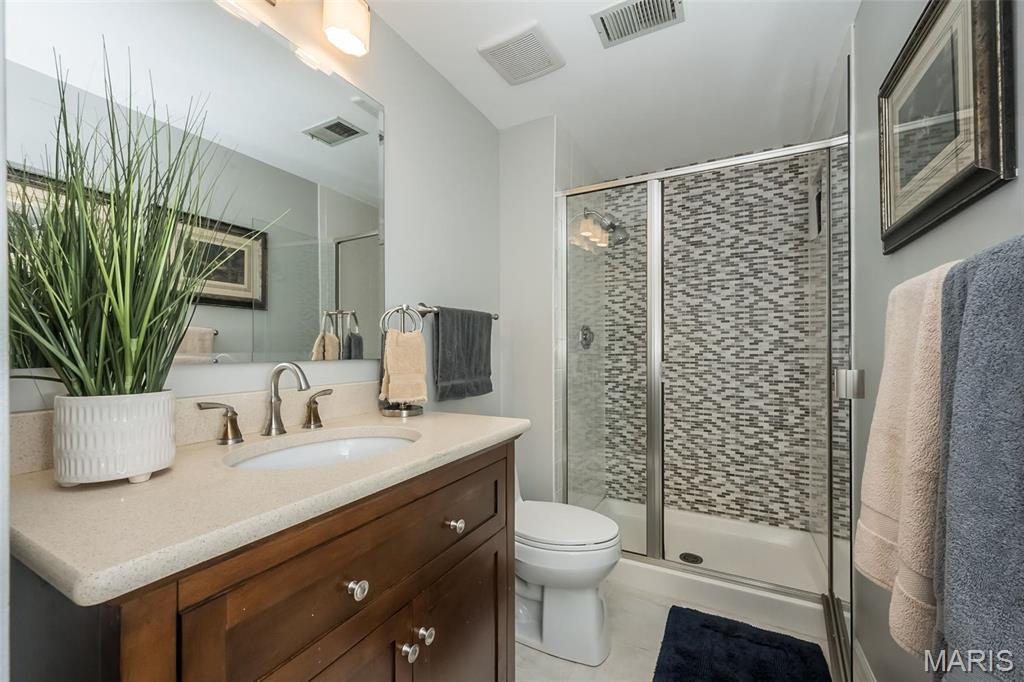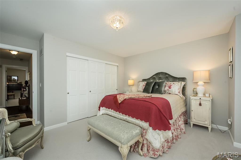 This beautifully designed 1.5-sty villa features well-proportioned rooms with soaring ceilings, oak hardwoods, detailed trim work & plantation shutters. Impressive 2-sty foyer highlighted by dramatic flared staircase leads to formal dining room with wide bay window & vaulted great room with floor-to-ceiling fieldstone fireplace, skylights & atrium door to private deck. Culinary enthusiasts will love the designer kitchen with granite countertops, commercial grade appliances & 11’ center island with ample storage. Spacious primary bedroom suite with luxury bath with freestanding tub offers an appealing retreat. The 2nd floor extends the living quarters with 2 additional bedrooms, bonus loft room & full bath. Lower Level includes recreation room with wet bar & family room with brick fireplace plus workout room, 4th bedroom & full bath. Premium cul-de-sac lot with deck, covered patio & 2-car garage. Complex amenities include clubhouse, pool, tennis court, and two lakes. Location: End Unit, Ground Level
