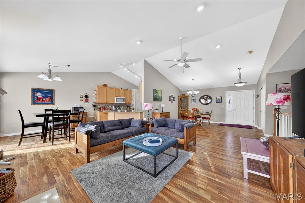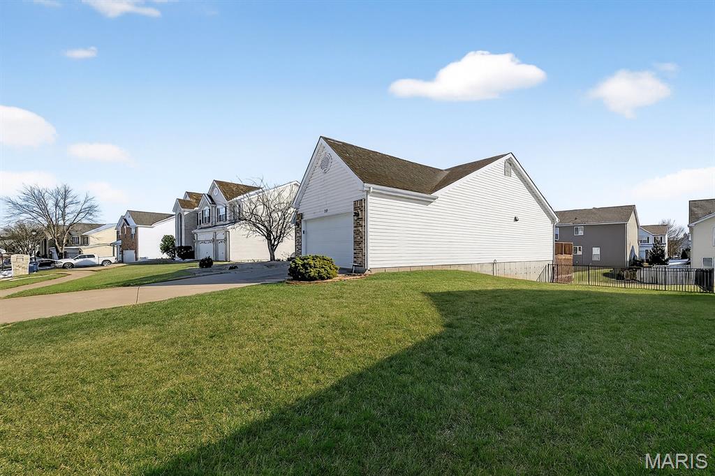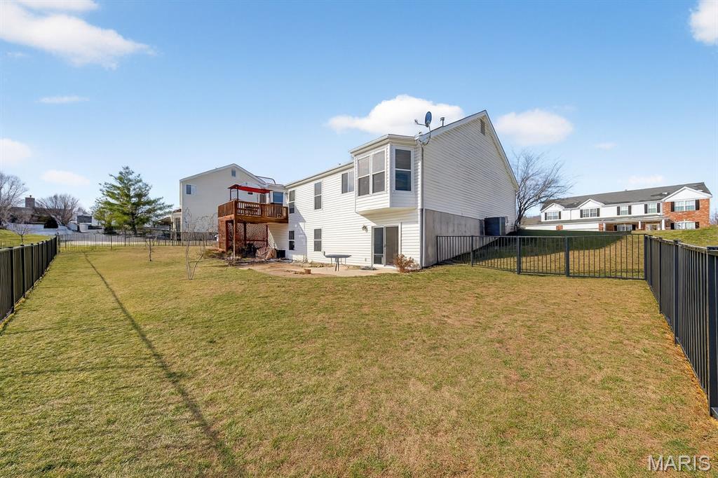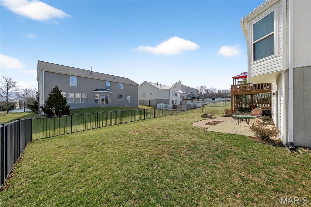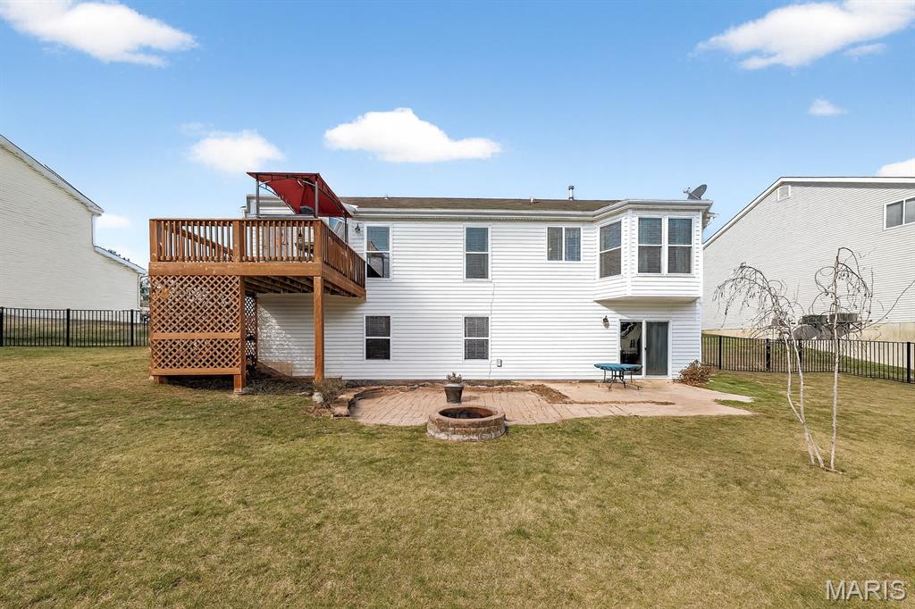 Elegant and impeccably maintained 4-bedroom, 3-full bath residence offering refined comfort and exceptional living space. Every bedroom features a walk-in closet for abundant storage. The vaulted great room is filled with natural light and highlighted by a beautiful fireplace, while newer main-level windows enhance both efficiency and style. The kitchen is adorned with newer granite countertops, 42" cabinetry, and a bay window in the breakfast room that opens to a deck. Warm wood flooring flows seamlessly through the dining area, family room, breakfast room, and hallway. The private primary retreat features its own bay window and a bath with separate soaking tub, shower and double bowl vanity. The partial builder finished lower-level boasts a 9-foot pour, family room, private bedroom with walk-in closet, and a generous sized full bath—ideal for guests, in-laws, or extended living. Furnace and air conditioner were both updated in 2024 for added peace of mind. Outdoor living truly shines with black aluminum wrought-iron style fencing, deck, an extended stamped concrete patio, and a brick firepit—perfect for relaxing or entertaining in style. This home offers space and thoughtful updates throughout—an absolute must-see!
