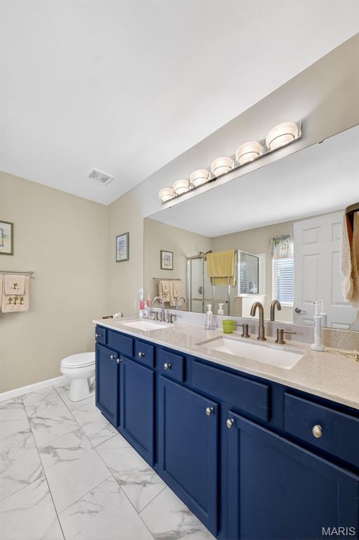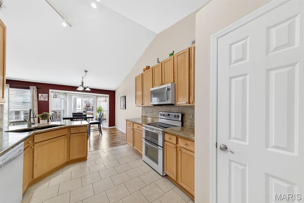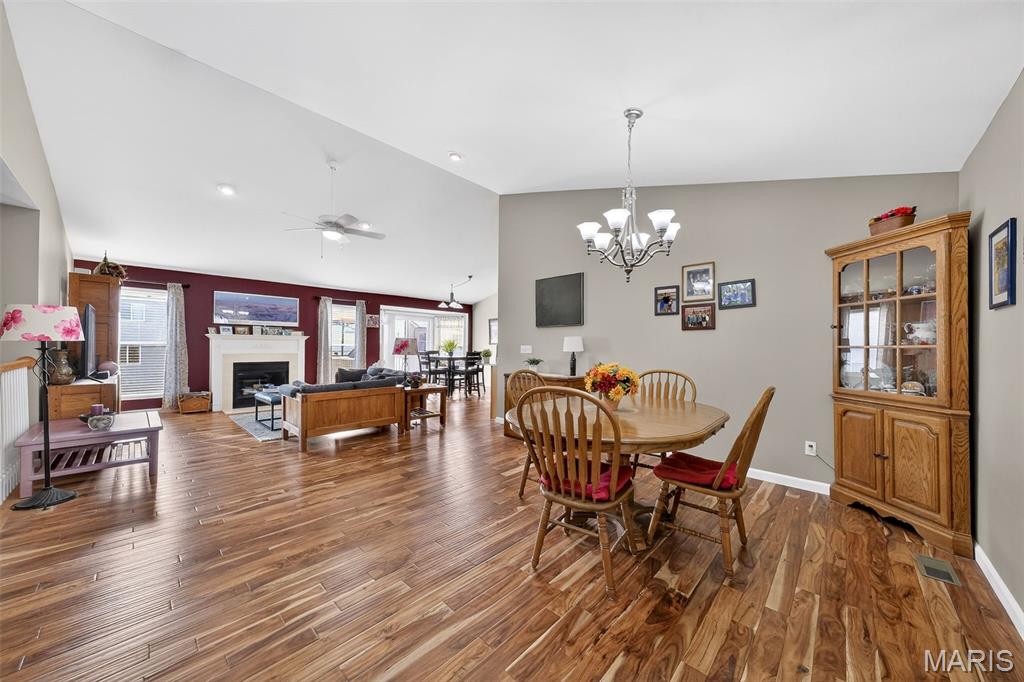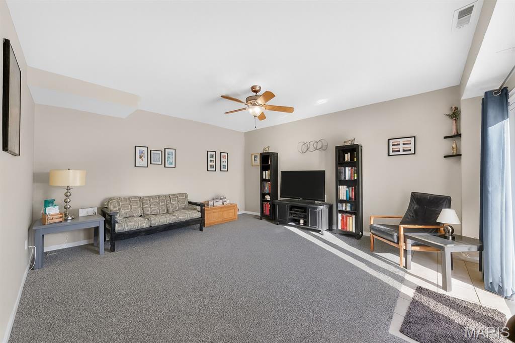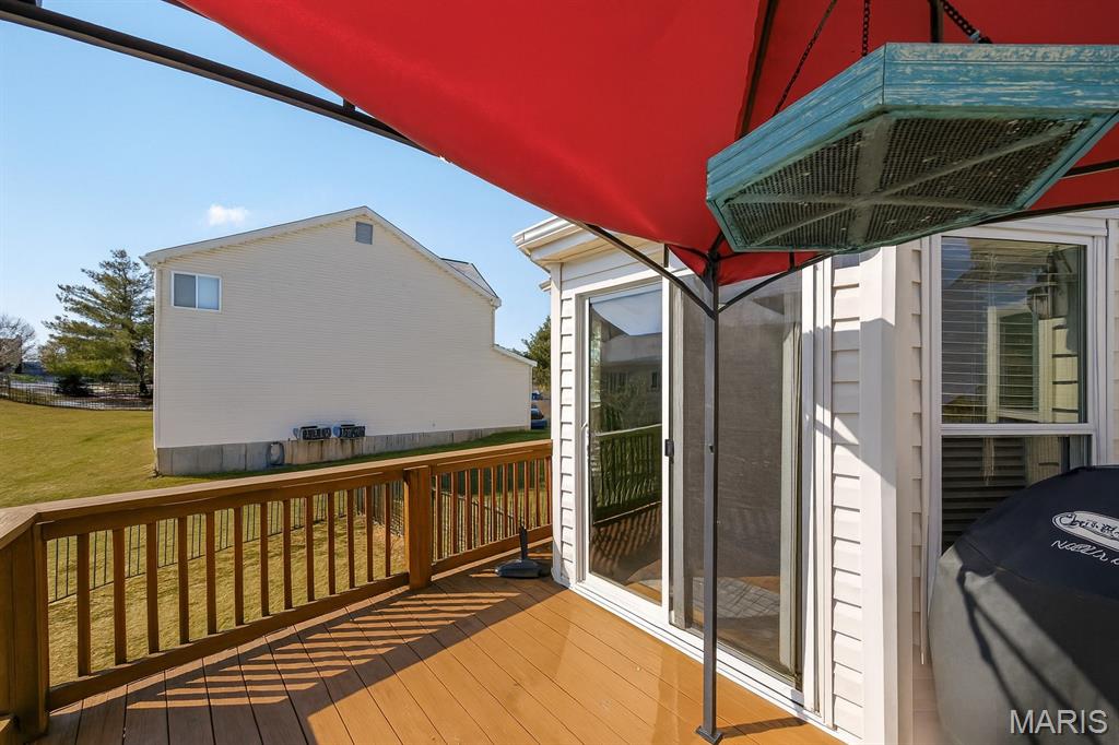 Elegant and impeccably maintained 4-bedroom, 3-full bath residence offering refined comfort and exceptional living space. Every bedroom features a walk-in closet for abundant storage. The vaulted great room is filled with natural light and highlighted by a beautiful fireplace, while newer main-level windows enhance both efficiency and style. The kitchen is adorned with newer granite countertops, 42" cabinetry, and a bay window in the breakfast room that opens to a deck. Warm wood flooring flows seamlessly through the dining area, family room, breakfast room, and hallway. The private primary retreat features its own bay window and a bath with separate soaking tub, shower and double bowl vanity. The partial builder finished lower-level boasts a 9-foot pour, family room, private bedroom with walk-in closet, and a generous sized full bath—ideal for guests, in-laws, or extended living. Furnace and air conditioner were both updated in 2024 for added peace of mind. Outdoor living truly shines with black aluminum wrought-iron style fencing, deck, an extended stamped concrete patio, and a brick firepit—perfect for relaxing or entertaining in style. This home offers space and thoughtful updates throughout—an absolute must-see!