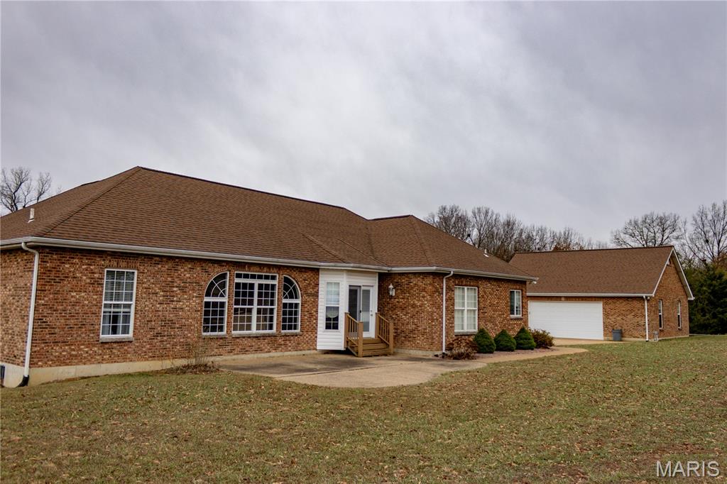 OPEN HOUSE: Wednesday 12/17 & Saturday 12/20... Welcome to this spacious all-brick ranch home situated on 3 flat, open acres just minutes from I-70. Located in a quiet Foristell neighborhood, this 3-bedroom, 2.5-bath home offers over 2,100 square feet of living space with a functional and well-designed layout. The kitchen is closed concept, while the main living areas remain open and inviting. Two secondary bedrooms feature a Jack-and-Jill bathroom, and main floor laundry adds everyday convenience. The property includes a large multi-car detached garage, an oversized driveway, and a rear patio perfect for enjoying the open land. An unfinished basement provides ample storage or future finishing potential. Inside, the home features a blend of classic and modern touches, including oak cabinetry, stone tile flooring, and brand-new carpet and windows throughout. A rare combination of space, privacy, and convenience