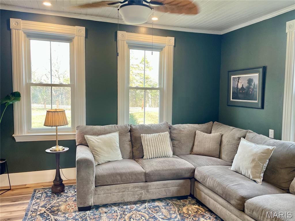 VERY NICE PRICE IMPROVEMENT! MOTIVATED SELLERS ARE READY TO SELL.! Welcome to this incredible, completely remodeled 1907 home, situated on 8 beautiful acres. The sellers have left almost nothing untouched with the renovation of this beautiful home. All the modern conveniences with the charm that only an old home can give. This 3 bed/2 bath home features custom woodwork throughout, beamed ceiling in the family room, beadboard ceilings throughout, original staircase, original cut stone steps to the waterproofed, dry basement/laundry area, wood burning fireplace insert, all new floors, all new lighting, new roof/gutters/soffits/fascia/siding, new HVAC,/heat pump/duct work, all new appliances/cabinets/counters/fixtures, and so much more. Step outside and enjoy the greatly improved 8 acres with several improved outbuilding, a new driveway, new landscaping with incredible original stones, sourced from a prior building on the property. This home and property are located in the very peaceful countryside, just outside of New Haven, Mo. Schedule your showing today.