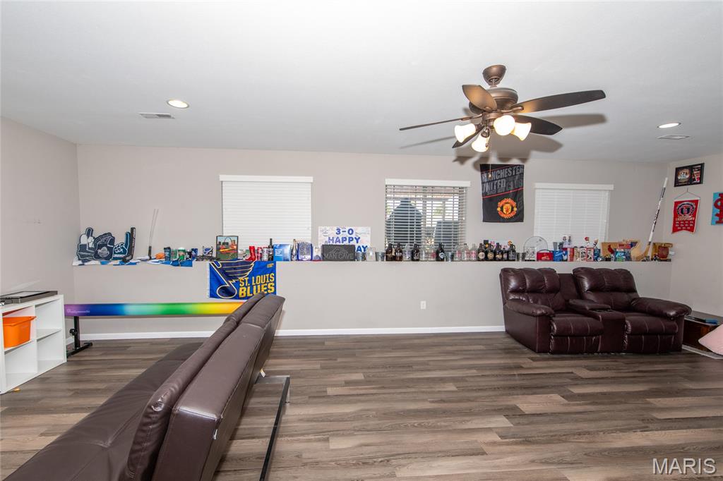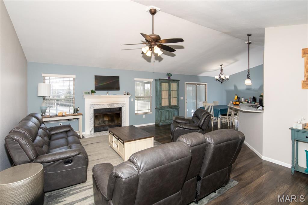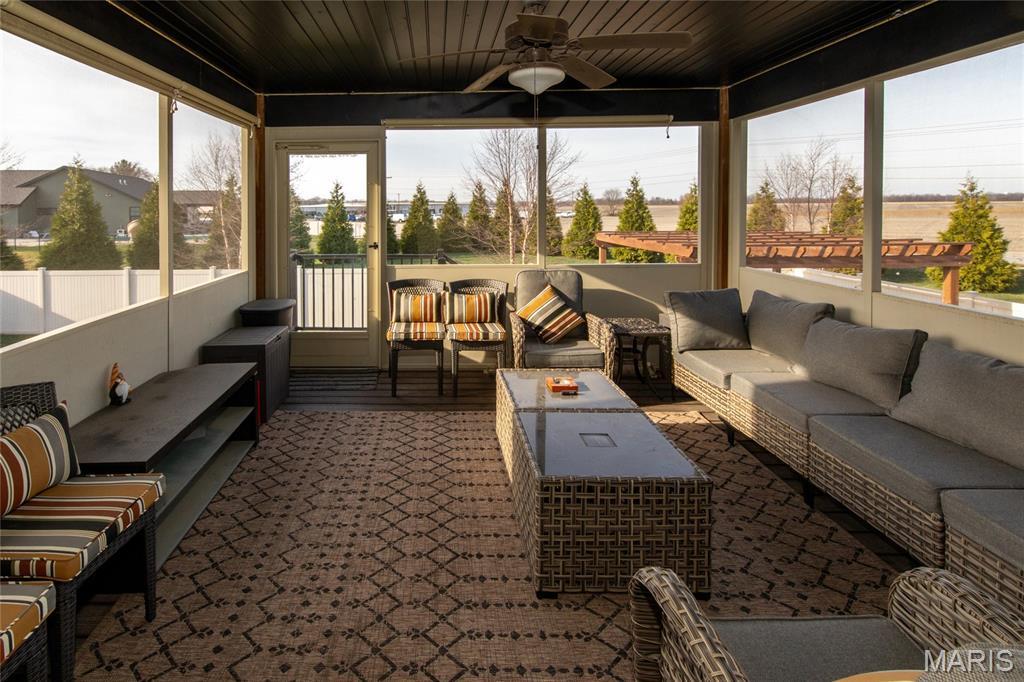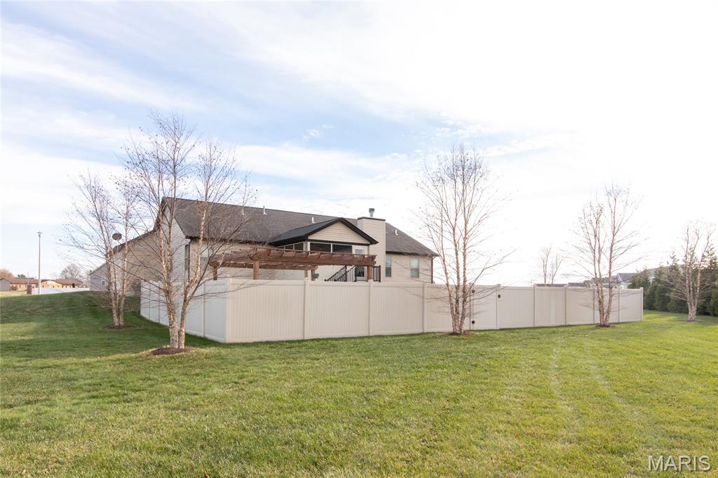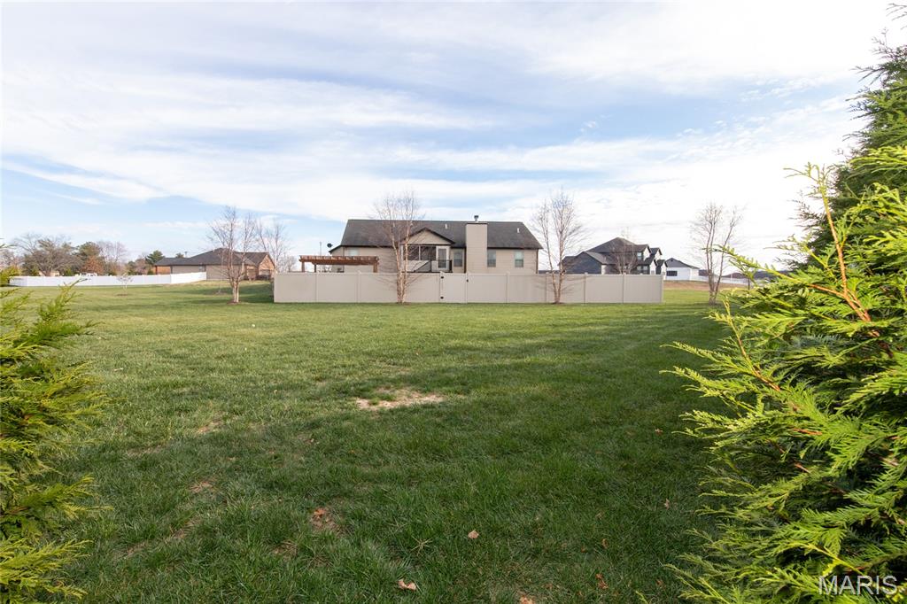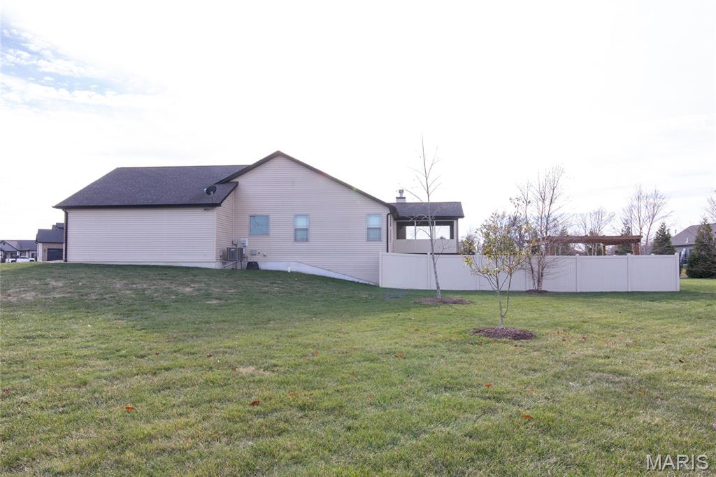 Welcome to this rare and spacious one-story home offering 6 bedrooms, 3 full baths, and an impressive 4,200 square feet of living space—all set on a beautifully landscaped 1-acre lot in the highly desirable Mascoutah School District. Built just nine years ago and meticulously maintained by its original owner, this property blends generous room sizes, thoughtful upgrades, and exceptional outdoor living spaces. Step inside to find a split bedroom layout designed for both everyday comfort and easy entertaining. The heart of the home features a large, inviting living area anchored by a stunning fireplace. The kitchen is equally remarkable, offering abundant cabinet space, a true walk-in pantry, and plenty of room for cooking, gathering, and hosting. The open flow between the kitchen, dining, and living areas ensures everyone stays connected. All six bedrooms are unusually spacious—much larger than the typical bedroom sizes found in most homes—offering incredible flexibility whether you need guest rooms, home offices, hobby rooms, or multi-generational living arrangements. With three full bathrooms, convenience is never in short supply. A major highlight of this property is the full dry basement finished with a wet bar, family room, 3 bedrooms, and a full bath. Outdoor living shines just as brightly here. Start with the screened in porch off the dining area and then extend into the expansive backyard that is thoughtfully landscaped and includes a pergola-covered patio perfect for relaxing in the shade or hosting friends and family. A built-in firepit creates a cozy place to gather year-round, and the 1-acre lot offers room to roam, play, garden, or simply enjoy the privacy and space that are increasingly hard to find. Homes of this size, quality, and layout—especially with six bedrooms and single-story living—are exceptionally uncommon. Add in the top-tier Mascoutah School District, and this property becomes a standout opportunity. Spacious, well-cared-for, and designed for both comfort and versatility, this home has everything you’ve been looking for—and more.