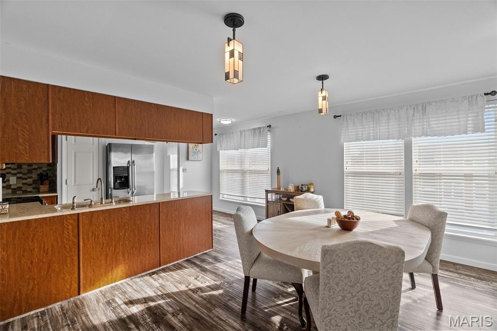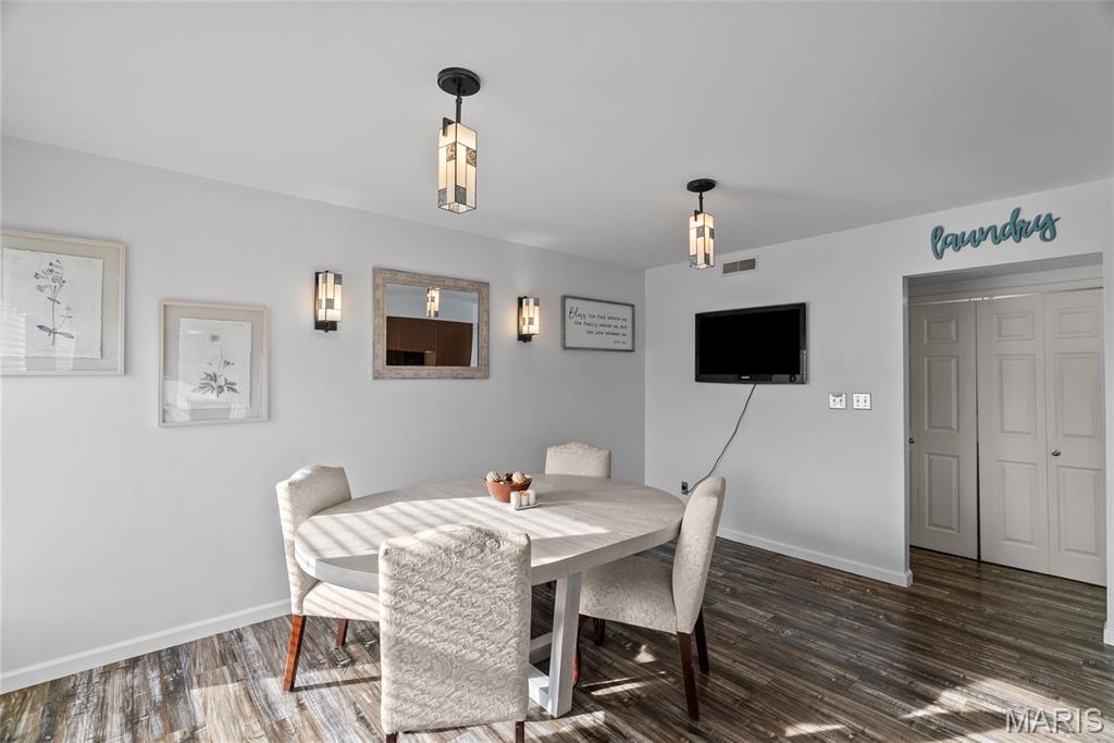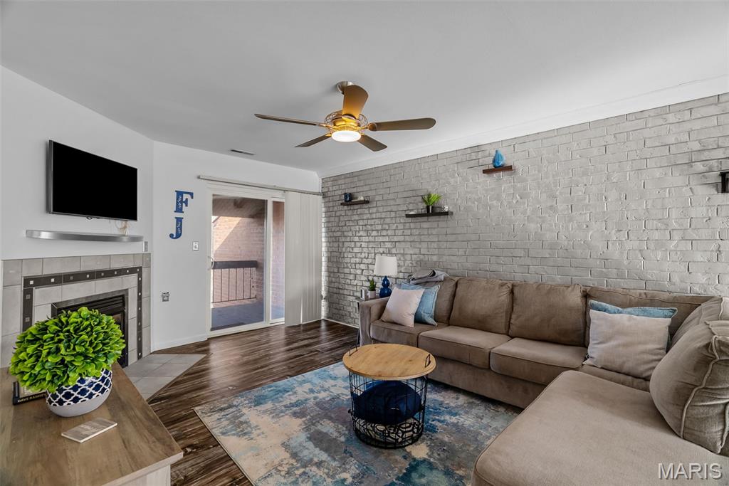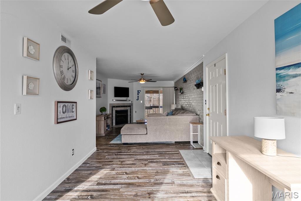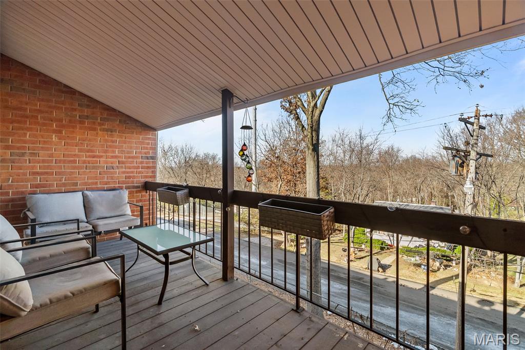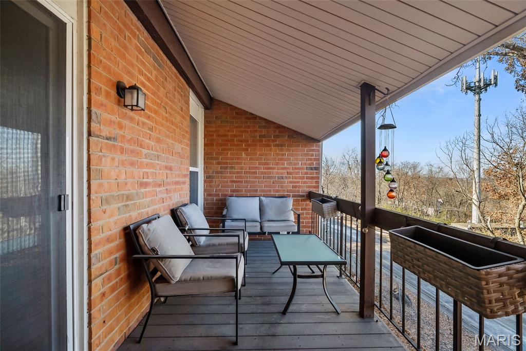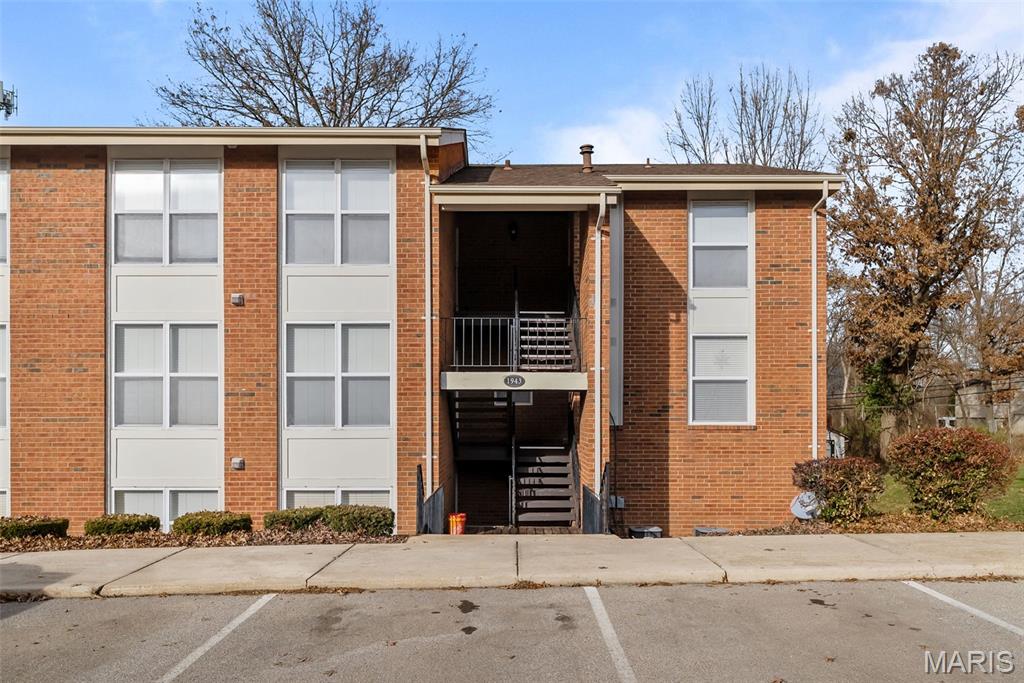 Welcome to this beautifully updated top-level unit in Kirkwood's Greenbriar Condominiums! You'll love the bright living room with a charming exposed brick wall, cozy corner gas fireplace with tile surround, and sliding glass doors leading to the covered deck. The light-filled, open kitchen and dining room is perfect for hosting gatherings! Thoughtfully designed updates include granite counters, stainless steel appliances, tile flooring and backsplash. The dining room is accented by stained-glass lighting and wall sconces. The primary bedroom has a walk-in closet and convenient in-unit laundry hook-ups, and an en suite bath. Both the primary and secondary bathrooms have been updated with granite-top vanities, stylish lighting, and feature tile-surround tubs. A second bedroom completes the space. Enjoy community amenities: the pool overlooking the pond and fountain, clubhouse/exercise facilities, tennis/basketball court, and walking trails, as well as the peace of mind knowing that landscaping, snow removal, water, sewer, trash, and an assigned basement storage unit are covered in the condo fees. You'll be just moments from highways, schools, parks, and all of the shopping and restaurants that Kirkwood has to offer! Don't miss out!