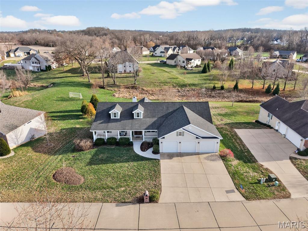 Step into a truly CUSTOM home that delivers the space, quality, and craftsmanship a large family deserves. Located in the highly sought after Eastland Oaks neighborhood with a family friendly atmosphere + great community feel + access to a paved nature trail, this property offers exceptional value with close to 5,000 sqft of finished living space. With 6 bedrooms + 5 bathrooms + a 3 car garage with individual doors, this home provides unmatched room to grow, gather, and live comfortably. Why wait months to build when you can own a fully finished custom home today at a great value? The main level features a dining room + living room + an impressive sitting room with oversized windows and a vaulted hardwood ceiling. Main level laundry adds daily convenience. The second floor loft provides additional flex space ideal for a playroom, office, or secondary living area. The finished walkout basement is built for family living and entertaining with a wet bar + pool table area + living room setup + game table space. Three fireplaces + built in cabinetry + floating shelves with integrated lighting add warmth and character throughout the home. Exterior features include a large covered front porch with rope swing + new concrete walkway + wood deck + back patio + a spacious backyard perfect for gatherings and outdoor play. Interior upgrades include new engineered hardwood floors and vinyl plank flooring on the first floor + 6” baseboards + cased windows with windowsills. Mechanical features include a new water softener + 2 water heaters + 2 central air HVAC units + a mini split on the second floor + a 500 gallon underground propane tank. The custom kitchen shines with high end cabinetry + crown molding + light rail + soft close doors and drawers + steel under mount slides + dovetail drawers + under cabinet lighting. Finishes include quartz countertops + marble backsplash + a coffee bar with patterned tile and lighted floating shelves + vaulted ceilings with exposed trusses and shiplap detail. Opportunities to purchase a custom home with this level of space + craftsmanship + value in Eastland Oaks are rare. Move in and enjoy a true custom home designed for family living at its finest.