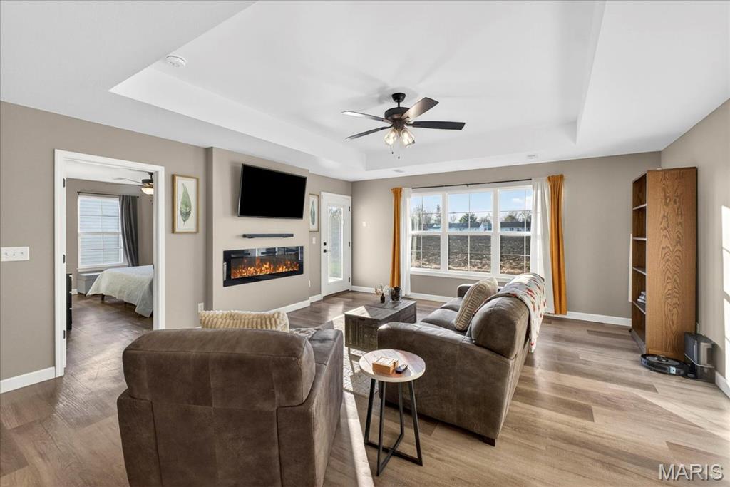 This villa-style home offers convenient single-level living with a functional, well-organized layout in Highland, Illinois. Unit A includes two bedrooms and two full bathrooms, with a primary bedroom featuring an attached bath and comfortable separation from the secondary bedroom. The main living area is anchored by a built-in electric fireplace, adding a clean focal point to the space while maintaining a neutral, modern feel. Living, dining, and kitchen areas connect easily for everyday use and flexibility. The home has been meticulously maintained, reflecting consistent care throughout. 70 Marker Drive Unit A presents a practical option for buyers seeking a villa-style property in Highland.