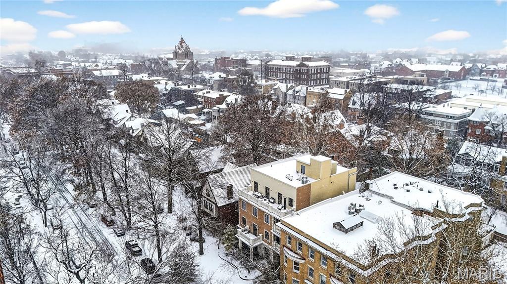 Built in 2008, this fabulous 4 unit building WITH ELEVATOR marries Old World charm with modern features and construction on a quiet, tree-lined cul-de-sac within easy walking distance of shops, restaurants, Forest Park, the Cortex, Barnes-Jewish hospital, and the breathtaking New Cathedral. Sophisticated and stylish, this urban gem offers an open floor plan, one-level living, two balconies, high ceilings, and incredible natural light. This beautiful home boasts granite countertops, espresso wood cabinets, wine fridge, kitchen island with seating for 4, gas fireplace, an office nook, crown moldings, 10-ft ceilings, in-unit laundry room with full-size washer & dryer, and two parking spaces in the secure basement garage.