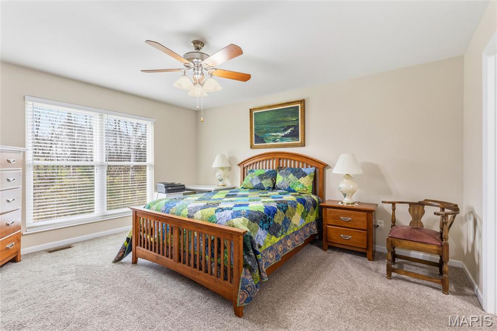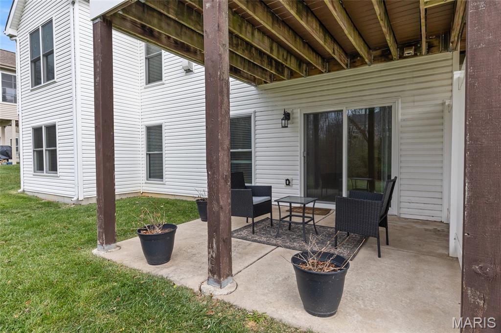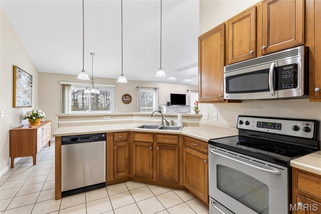 Incredible 3 Bedroom 3 Bath Villa in Dardenne Prairie backing to woods in the sought after Providence Neighborhood! Entering this home you will be impressed with the vaulted ceilings and open floor plan.This rare floor plan offers a bedroom as you enter, then a office/sewing room and dining area. The dining room opens up to an expansive great room with gas fireplace. The kitchen is expansive the upgraded Cabinets, breakfast bar, and ample counter space. Your kitchen flows to your breakfast room that leads to your recently updated composite deck. Home offers new renewal by Anderson windows throughout for ample efficiency and comfort. The primary Suite offers a large walk in closet, double adult height sinks, and sep tub/shower. Walkout Lower level is a true extension of your home with 9ft ceilings, rec room, 3rd Bedroom and 3rd full bath! Ample storage. Main floor laundry! Lawn,Landscaping, and snow removal priced by HOA. Community has a private Gazebo, picnic area and walking trails! This Villa is just seconds from 364 and 64!