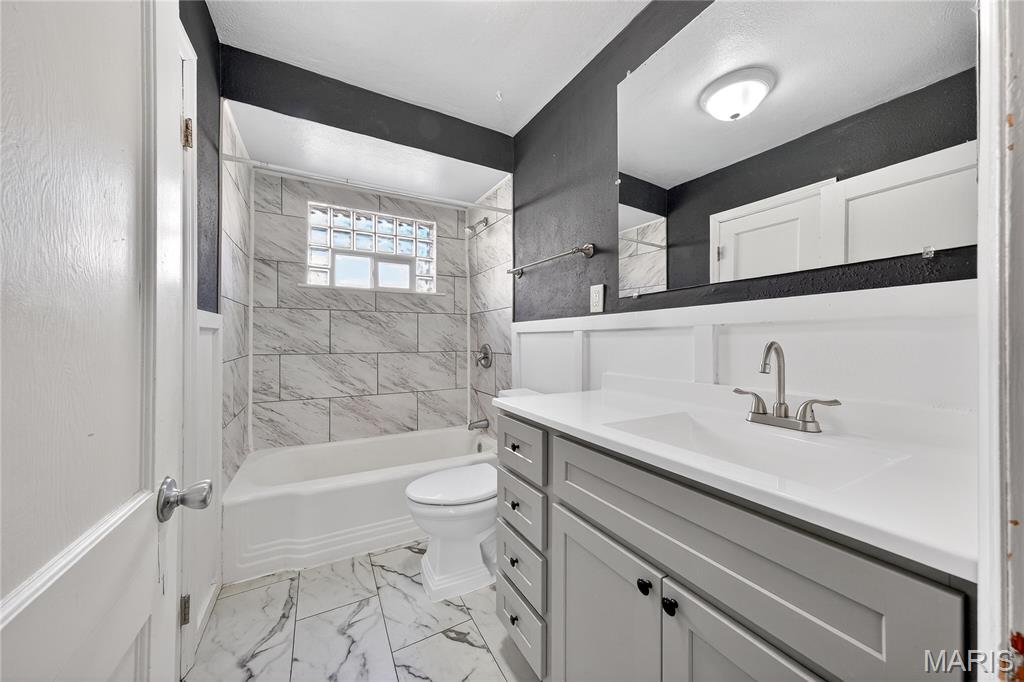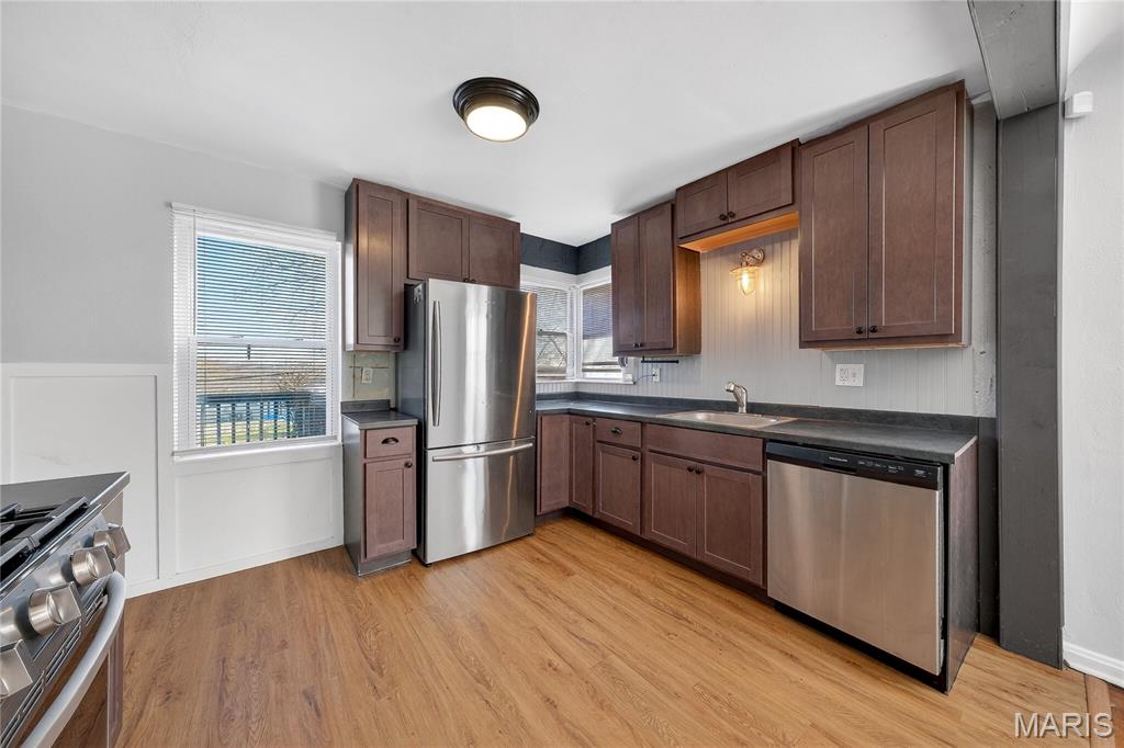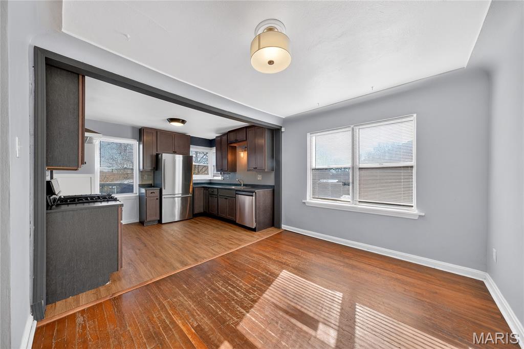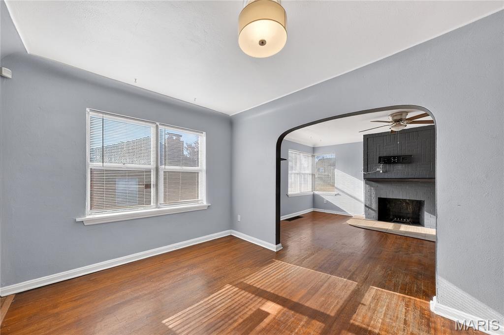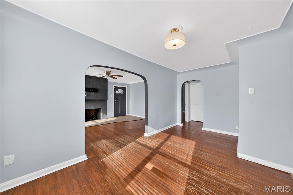 Welcome to this beautiful home featuring original historic brickwork that’s been given a fresh, modern whitewashed update! A standout look that sets the tone for what you’ll find inside. Step into the tiled foyer and you’re immediately connected to the main living space, where hardwood flooring runs throughout the living room, dining room, and both bedrooms. The brick fireplace becomes the focal point of the living room, giving the space warmth and character the moment you walk in. An arched opening leads you into the dining room, offering an easy, open flow between the main spaces. The kitchen sits just beyond the dining area and includes newly installed LVP flooring, a modern backsplash, and newer cabinetry for a clean, updated feel. A short hallway off the dining room leads to two spacious bedrooms and a modern bathroom with updated finishes. The partially finished basement gives you even more usable living space — perfect for a second living area, entertainment setup, office, or play space. Outside, the flat, open backyard gives you plenty of room to create whatever you’re imagining, and the newly redone deck is ideal for relaxing or hosting outdoors. 316 Coppinger Drive is move in ready and waiting for its next chapter, could it be yours?