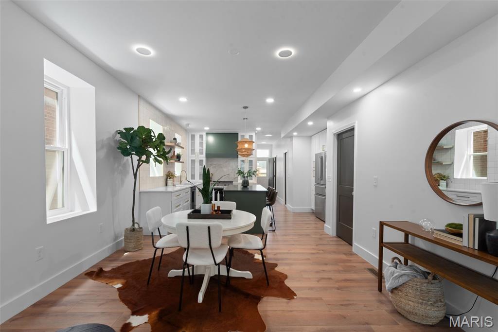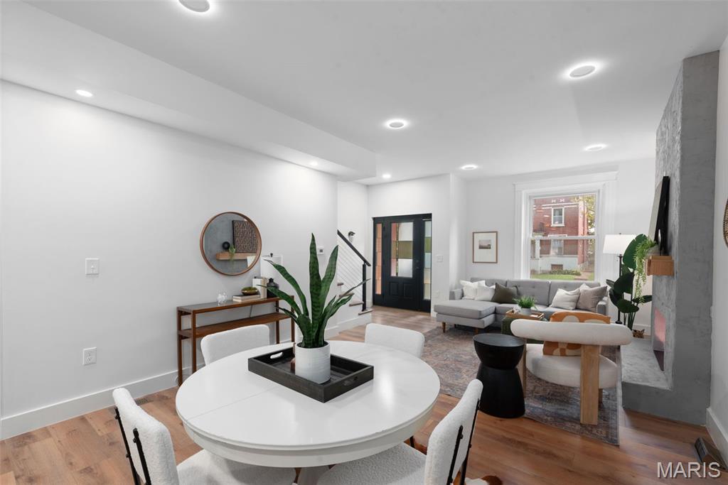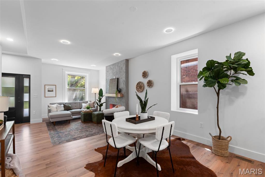 Open house Sun. 12/14 from 1-3pm! This is no ordinary rehab—it’s a showcase of quality, style, and thoughtful detail. Immediately, you’ll notice the perfect blend of historic character and a fresh, modern entry. Inside, you’ll instantly feel the love poured into this Dutchtown beauty: an open floor plan anchored by a sleek fireplace with color-changing features, a formal dining area, and a chef’s kitchen with a massive island. The quartz countertops, striking backsplash, and two-tone cabinetry make this space truly stand out. Tucked behind the kitchen is a versatile bonus room ideal for an office or guest space, plus main-floor laundry and a moody powder room. Up the modern staircase, discover a luxe full bath and three bedrooms, each designed with custom touches—painted doors, designer lighting, and timeless flooring. The primary suite is a retreat in itself, featuring a custom walk-in closet and a spa-like bathroom with a gorgeous shower and soaking tub. Outdoor living is just as impressive with a two-level deck, a fully fenced yard, and a brand-new garage-port. To top it off, you’ll be surrounded by great neighbors —all just minutes from everything South City has to offer.
