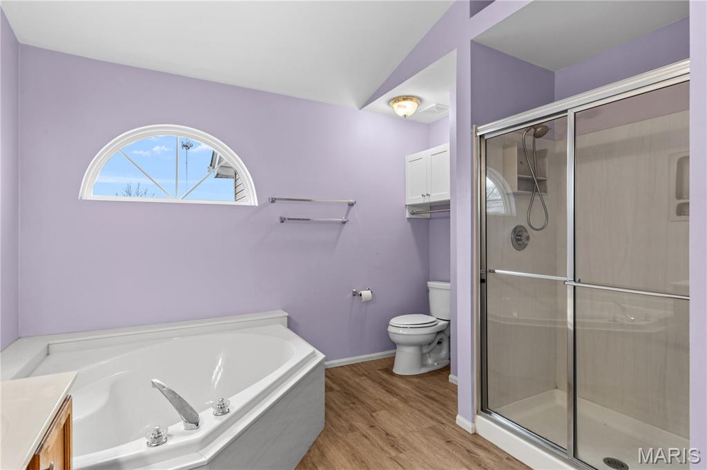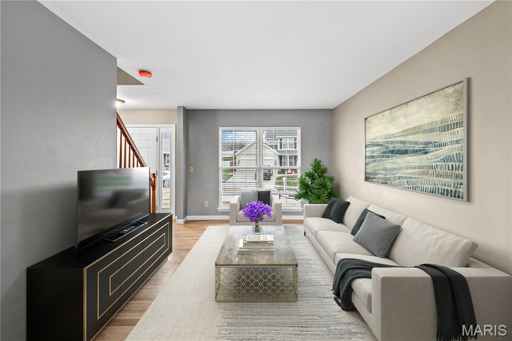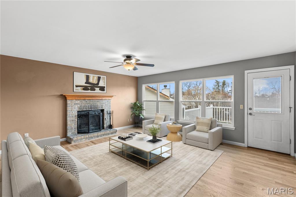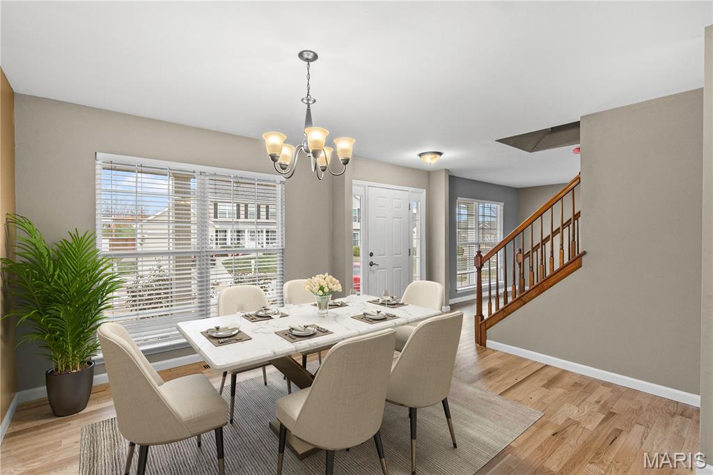 Stunning upgraded 2-story with FINISHED WALKOUT lower level in popular Carlton Manor subdivision with 3 acres wooded common ground. Classic curb appeal with COVERED FRONT PORCH, hail-rated NEW ROOF, vinyl siding, NEW gutters, mostly NEW windows, 2-car attached garage with coach lights plus oversized TRIPLE DRIVEWAY. Entry foyer opens to front FORMAL DINING and living rooms. GLEAMING HARDWOOD floors span main level. Open family room with COZY FIREPLACE (brick hearth), wall of windows, connected to kitchen. Generous wood cabinets, SOLID SURFACE counters, tile backsplash, STAINLESS APPLIANCES, wine fridge, CENTER ISLAND BAR and storage pantry. Step out to freshly-stained deck with updated railing, overlooking backyard. Practical main-level laundry and powder rooms. Upstairs VAULTED MASTER SUITE with dual vanity, corner soaking tub, separate shower and WALK-IN CLOSET. Secondary bedrooms share hall bath with tub/shower combo. Downstairs rec room with sliding door walkout to patio, 2 flexible bonus rooms, full bath with tub/shower combo, plus storage. Partially fenced backyard with space to entertain, garden and play. Convenient location with errands within 1.5 mile. AWARD-WINNING SCHOOL DISTRICT.