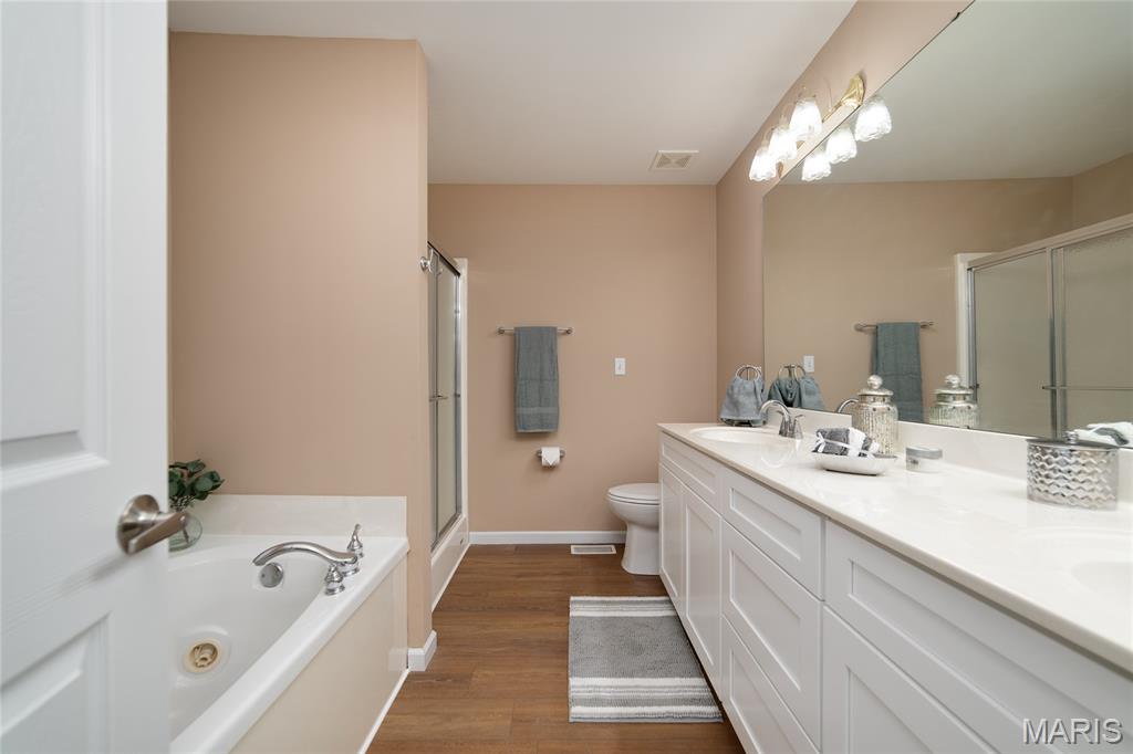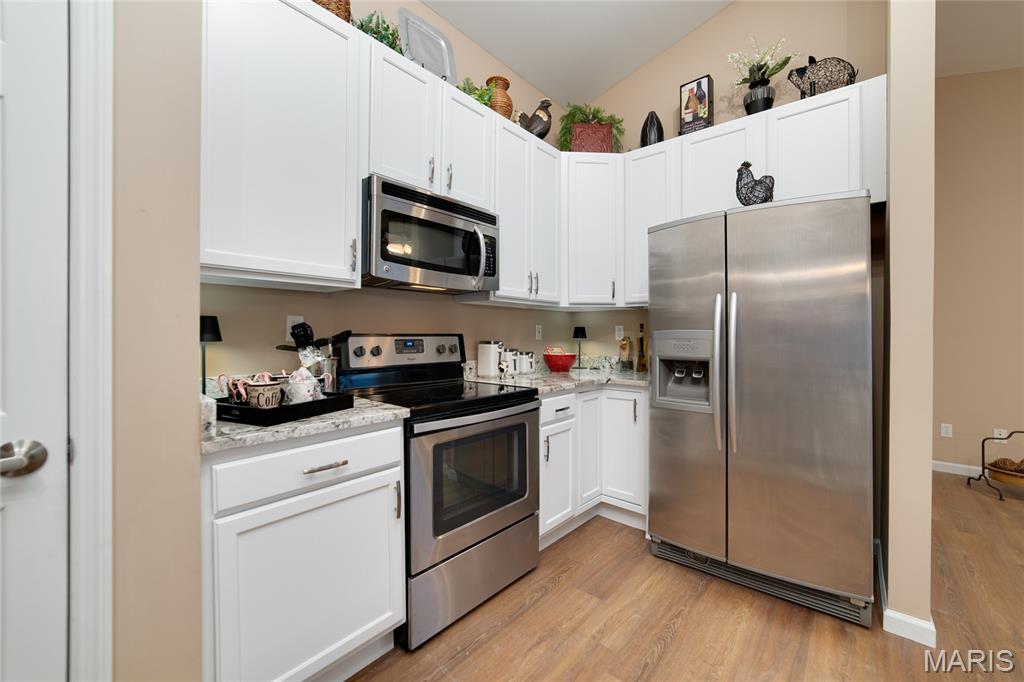 HURRY B4 THE SIGN SAYS SOLD! This home has been improved top to bottom. New ROOF on 8/25 Archt shingles. Exterior power wash, windows professionally cleaned in/out. Entire interior has Fresh Paint - all ceilings/walls/closets. New Luxury Vinyl plank floors throughout. New Master White adult height cabinets. NEW faucets/fixtures. Whirlpool tub. Sep Shower w seat. Flex spray nozzle for easy cleaning. Newer c/fan in Mater and huge W/in Closet. All NEW 2" blinds throughout. New nickel C /fans in great room and Hearth rm.vaulted ceilings in kitchen, 42 " white cabinets w slow close drs. SS Fridge will stay! New granite countertops installed with new SS undermount sink & faucet. New lighting above and in Breakfast room with bay window. AND cozy HEARTH room with brick gas log fireplace and white mantle. The entire back of the GR rm brkfst and hearth rm are all windows. Slider exits to the large o/s covered patio area. Landscaping includes a rose garden along the house. Mature trees! BIG SPACIOUS YARD - White vinyl Fully Fenced w gate. MAIN FLR LNDRY RM W extra shelving. All new hardware on doors and locks. 2 car garage w opener. Brick decorative brick on front with covered porch. DONT MISS OUT!