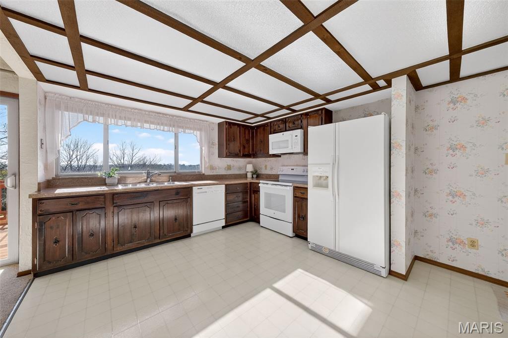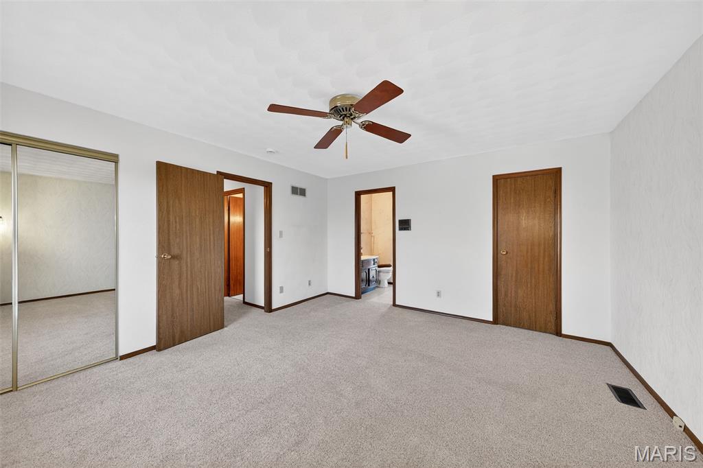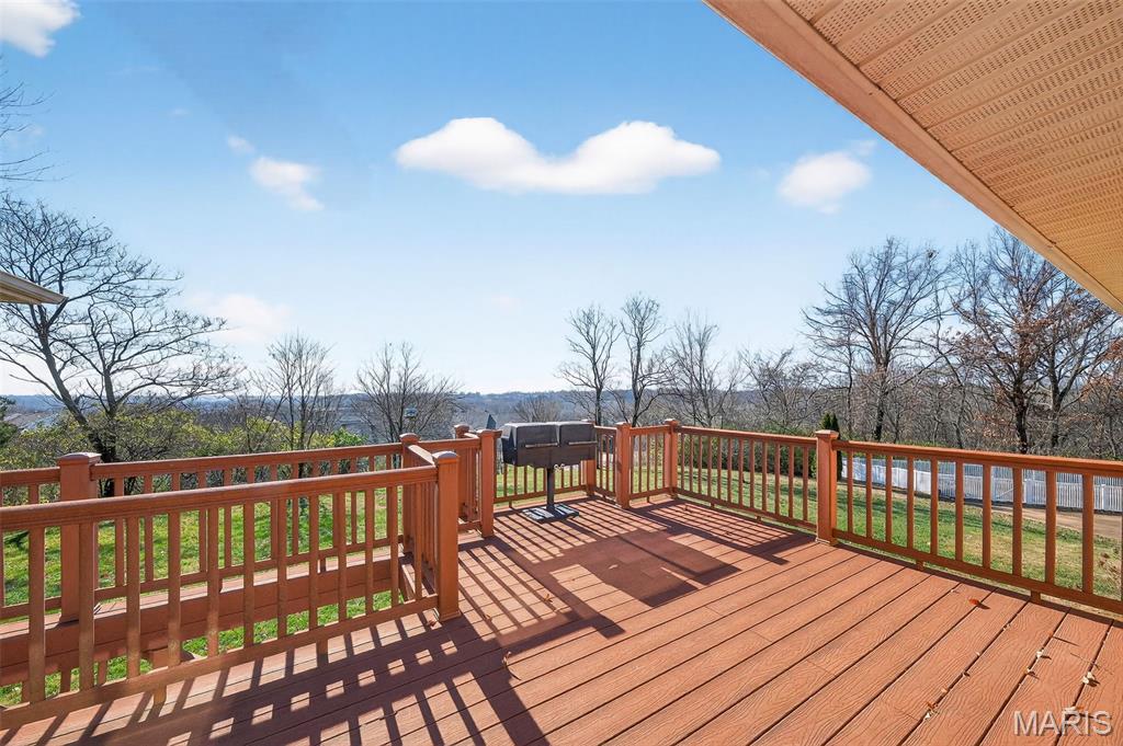 This all brick Oakville beauty immediately impresses the moment you step through the front door. Offering 3 main level bedrooms, 2.5 baths, and TWO separate oversized garages, the home is both comfortable and uniquely functional. Natural light fills the foyer and sets an inviting tone as the open floor plan unfolds, showcasing how lovingly maintained this property has been. To the right, the dining room connects directly to the kitchen. Just off the kitchen is direct access to the first oversized 27x 24 garage. From the kitchen and living room, sliding glass door leads to a spacious composite deck overlooking a level backyard, creating a seamless indoor to outdoor living experience. In the living room, the fireplace provides a warm, inviting focal point that brings the entire open floor plan together. The bedroom wing includes two comfortable secondary bedrooms and a full bathroom with a tub and shower combination. At the end of the hallway, the spacious primary suite provides impressive storage whe ith two closets, including one that is nearly 6x5, and is completed by a private full bathroom. The walkout lower level offers a great footprint with tremendous potential to finish out for additional square footage. Currently used as a recreation area with a pool table, the space includes a half bath, sliding doors to the patio and backyard, and direct access to the SECOND oversized garage. Both garages measure approximately 27x24, offering exceptional width and depth that are ideal for hobbyists, storage, or a dream workshop setup. The home is offered AS-IS, and the seller will provide a passed St. Louis County occupancy inspection. Additional features include Anderson windows, a sprinkler system in the front and back, roof from 2018, HVAC from 2021, water heater from 2020, and a brand new electric panel installed in December 2025. The location is exceptional with close proximity to both private and public schools, convenient shopping, and very easy highway access. Either book your private showing today or plan to visit the Open House on Sunday 12/14 from Noon-2pm.