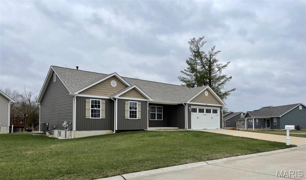 ***OPEN SUNDAY 1:00-3:00 *** 3 YEARS NEW RANCH HOME * 3 BEDROOMS & 2 FULL BATHS * COVERED FRONT PORCH FOR SITTING & RELAXING * ENTER TO A HUGE OPEN FLOORPLAN WITH WOODBURNING FIREPLACE IN THE GREAT ROOM * MASSIVE DINING AREA * KITCHEN INCLUDES ALL APPLIANCES AND THE "SAMSUNG FAMILYHUB SMART REFRIGERATOR" * BREAKFAST ROOM WITH SLIDING DOORS THAT EXIT TO BACKYARD PATIO * PRIMARY BEDROOM WITH LUXURY BATH, WALK-IN CLOSET AND BAY WINDOW " * MAIN FLOOR LAUNDRY/MUD ROOM OFF THE KITCHEN * LUXURY VINYL PLANK FLOORING & DESIGNER LIGHTING THROUGHOUT * NEED A 4TH BEDROOM...LOWER LEVEL (UNFINISHED) IS READY WITH ROUGH-IN BATH AND EGRESS WINDOW * LEVEL BACKYARD WITH PAVER PATIO * ADDITIONAL HUGE SIDE YARD USED FOR ADDITIONAL RECREATION * NEW ROOF, BOARD-AND- BATTEN ACCENTS * OVERSIZED 2 CAR GARAGE & EXTENDED DRIVEWAY * STONEWATER SUBDIVISION COMMUNITY WITH EVENTS & STOCKED FISHING POND *