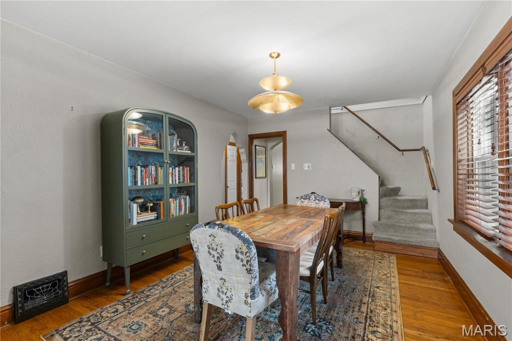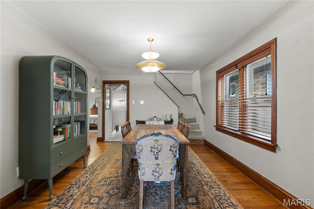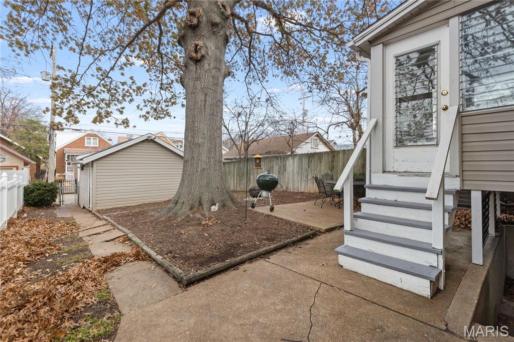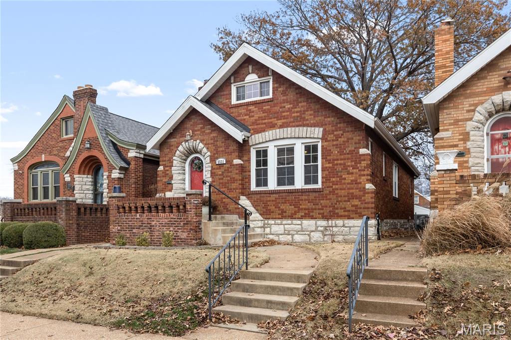 This charming brick home, featuring a welcoming front porch, is move-in ready. The entryway, with rich woodwork and graceful arched detailing, reflects the home’s era and quality. The generously sized living room, with large windows, is bright and inviting, setting the tone for comfortable everyday living. The spacious dining room flows seamlessly from the living area, creating an ideal layout for effortless entertaining. The spacious kitchen showcases abundant cabinetry and counterspace, a stylish backsplash, and stainless appliances, including a five-burner gas stove. A newer retro-style refrigerator/freezer adds both charm and practicality, making this a functional and well-appointed space for any home chef. Direct access to the back porch makes outdoor activities & hobbies so easy. The main floor includes a primary bedroom, a second bedroom, and a stylishly updated full bathroom. Upstairs, a well-sized third bedroom and a versatile bonus room provide space for a family room, home office, studio, or creative retreat. A spacious step-in closet offers ample storage, and a second full bathroom completes the upper level. The backyard is perfect for outdoor leisure and relaxation, while a detached one-car garage adds convenience and functionality. Located within walking distance of restaurants, cafes, and shops, and with easy access to Francis Park, this home combines comfortable living with an excellent location.